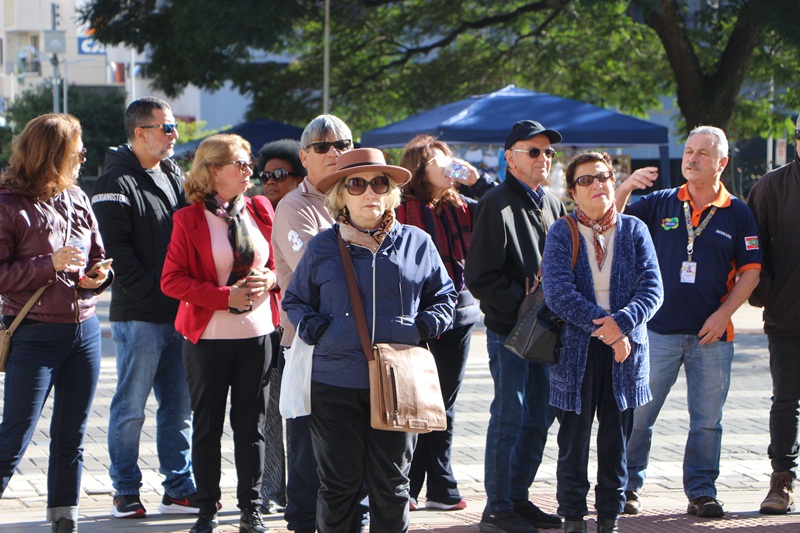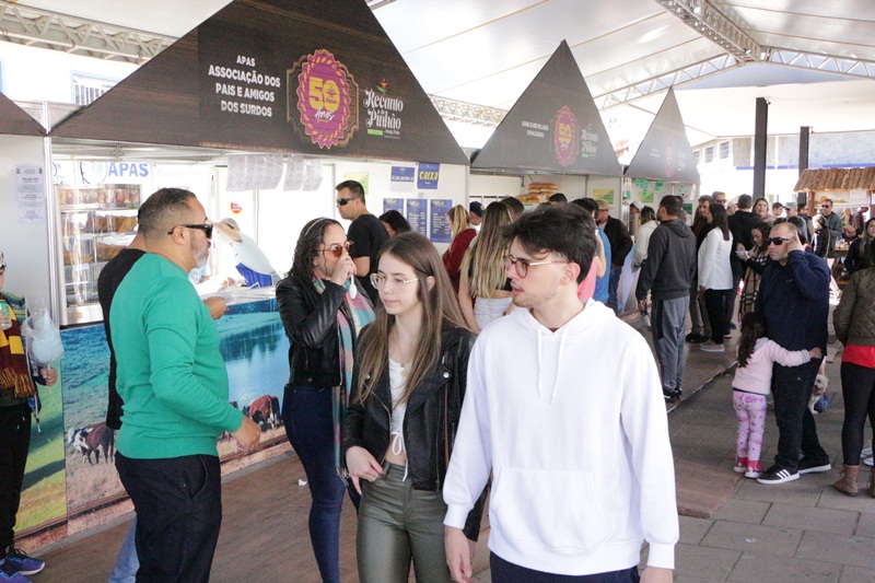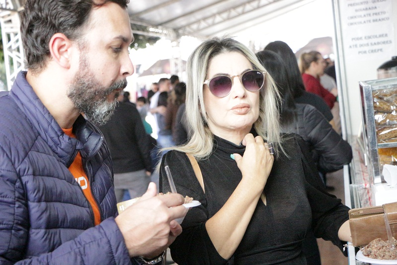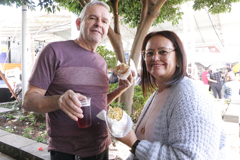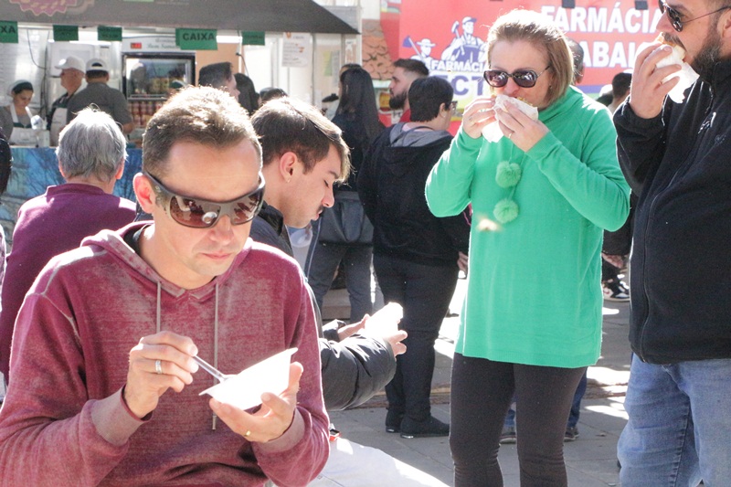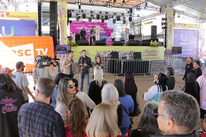 O terceiro dia de programação artística e cultural do Recanto do Pinhão Aracy Paim 2023 foi repleto de lageanos de berço e de sentimento, moradores, visitantes, turistas e simpatizantes, com intensa movimentação em lojas, lanchonetes, cafeterias e restaurantes da parte central. Casais, famílias e crianças transitando pelas calçadas vestidos com peças que os deixam aquecidos e charmosos para as temperaturas deste sábado (3 de junho), oscilantes entre 8ºC e 22ºC, e um Sol em céu azul.