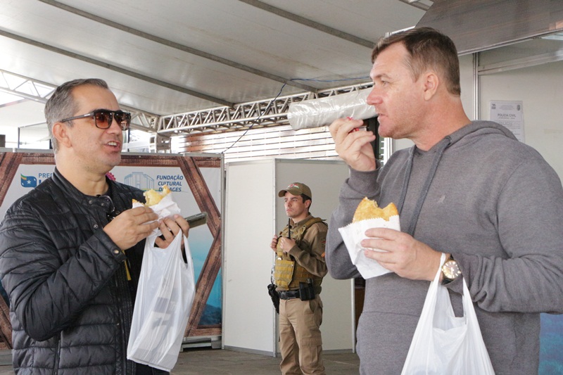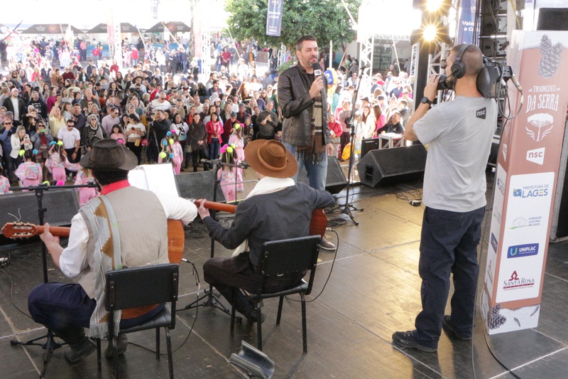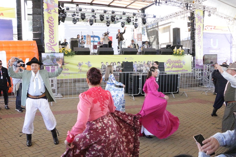 O período vespertino do Recanto do Pinhão Aracy Paim reservou oportunizar à plateia conhecer melhor os talentos do Grupo Arte Cultura Querência Militar, representação do Colégio Policial Militar Feliciano Nunes Pires (CPMFNP), e dançar ao som do Grupo Embalo Fandangueiro, transformando o tablado coberto em um verdadeiro baile campeiro. Do meio da tarde para a noite, Edson Augusto; Grupo Baitaço; os artistas já reconhecidos de longe e queridos pela cidade, Anjos de Plantão, e Grupo Modaço, selando o sábado do primeiro fim de semana do Recanto do Pinhão 2023. “Um dia ensolarado, bonito, receptivo. Cidade cheia, turistas admirados com Lages. Sejam todos bem-vindos a apreciar a Serra Catarinense”, convida o prefeito em exercício de Lages, Juliano Polese, na manhã deste sábado no Recanto do Pinhão.