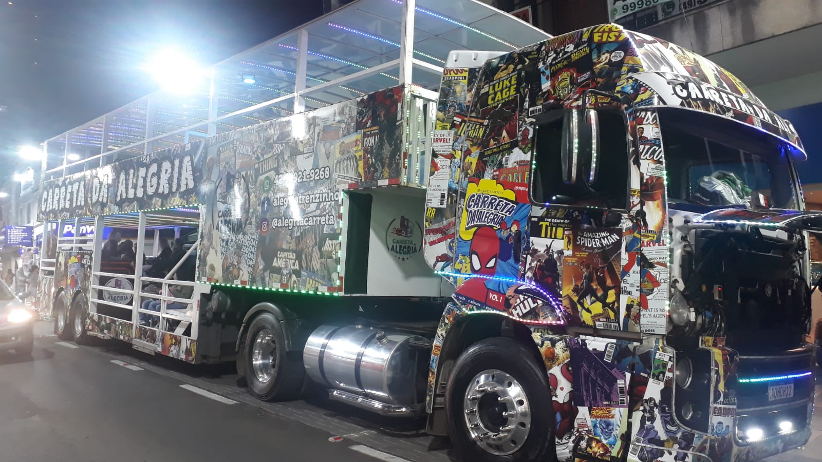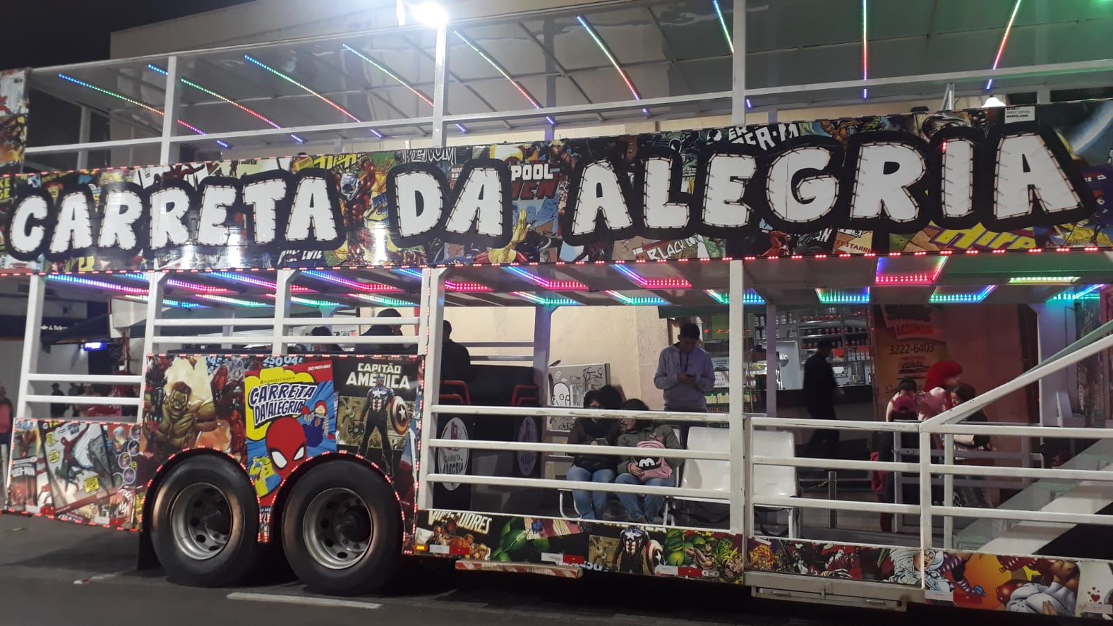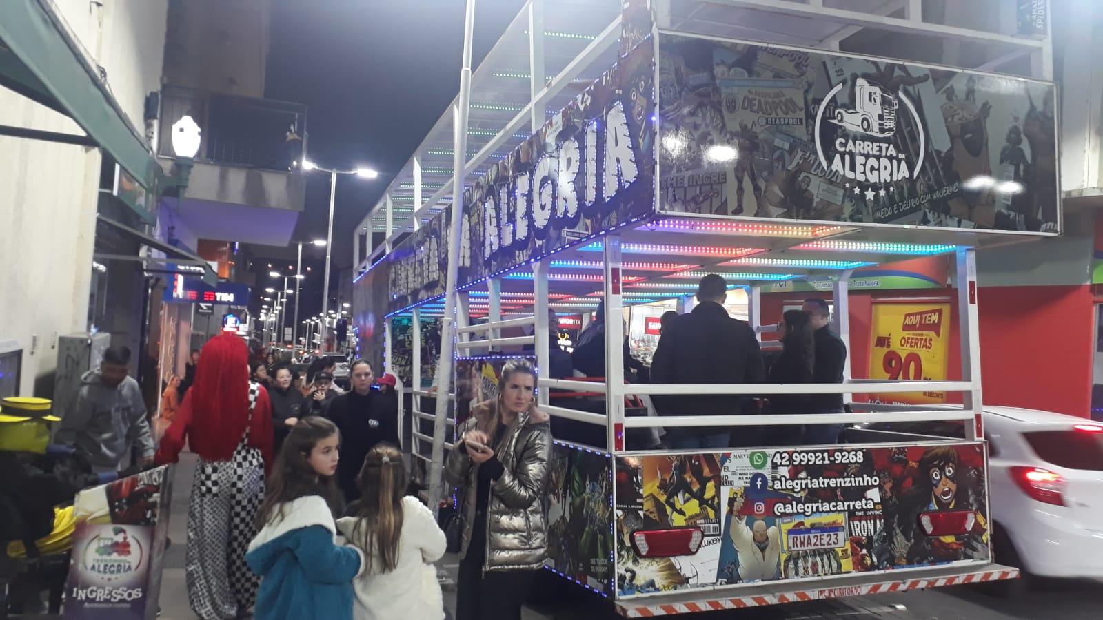 O casal mascote de gralhas azuis hospeda o público para fotografias e um totem (painel vazado para foto) com troca de faces para registro transforma meninos e meninas nas aves mais populares da Festa Nacional do Pinhão. Pelas ruas do Centro, a Carreta da Alegria diverte as pessoas, com passeios rápidos e as danças inconfundíveis de personagens que arrancam gargalhadas de crianças e adultos - Fofão, Homem-Aranha, Máskara e Super Mario Bros. No céu de outono, voos panorâmicos de helicóptero revelam as belezas de Lages vistas de cima.