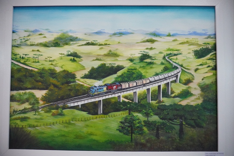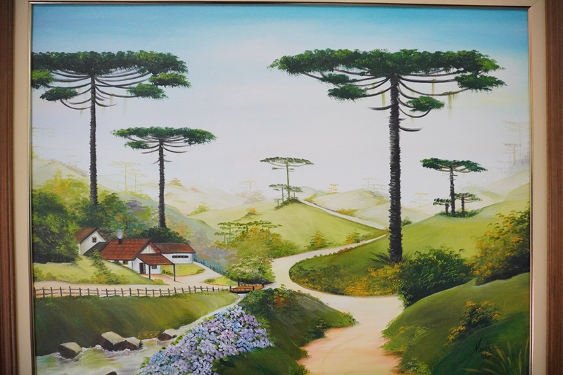 Nesta exposição individual, 17 obras pintadas em acrílico sobre tela, constituídas por elementos característicos e peculiares, como pinheiros de araucária, florestas de Araucaria angustifolia, outras vegetações regionais de clima frio, pinhas, geada, gralha azul, leão baio, riacho, taipas, porteiras, estradas de terra, casas de madeira, galpões, ferroduto da Coxilha Rica, Serra do Rio do Rastro e até um homem apanhando pinhões com uma taquara ao alto de uma árvore, e um painel de pintura mural de três metros de comprimento por 1,80 metros de altura, com paisagem serrana, este servindo como cenário para fotografias aos visitantes. Pelo ambiente já passaram mais de 500 pessoas desde o início da 33ª Festa Nacional do Pinhão.
