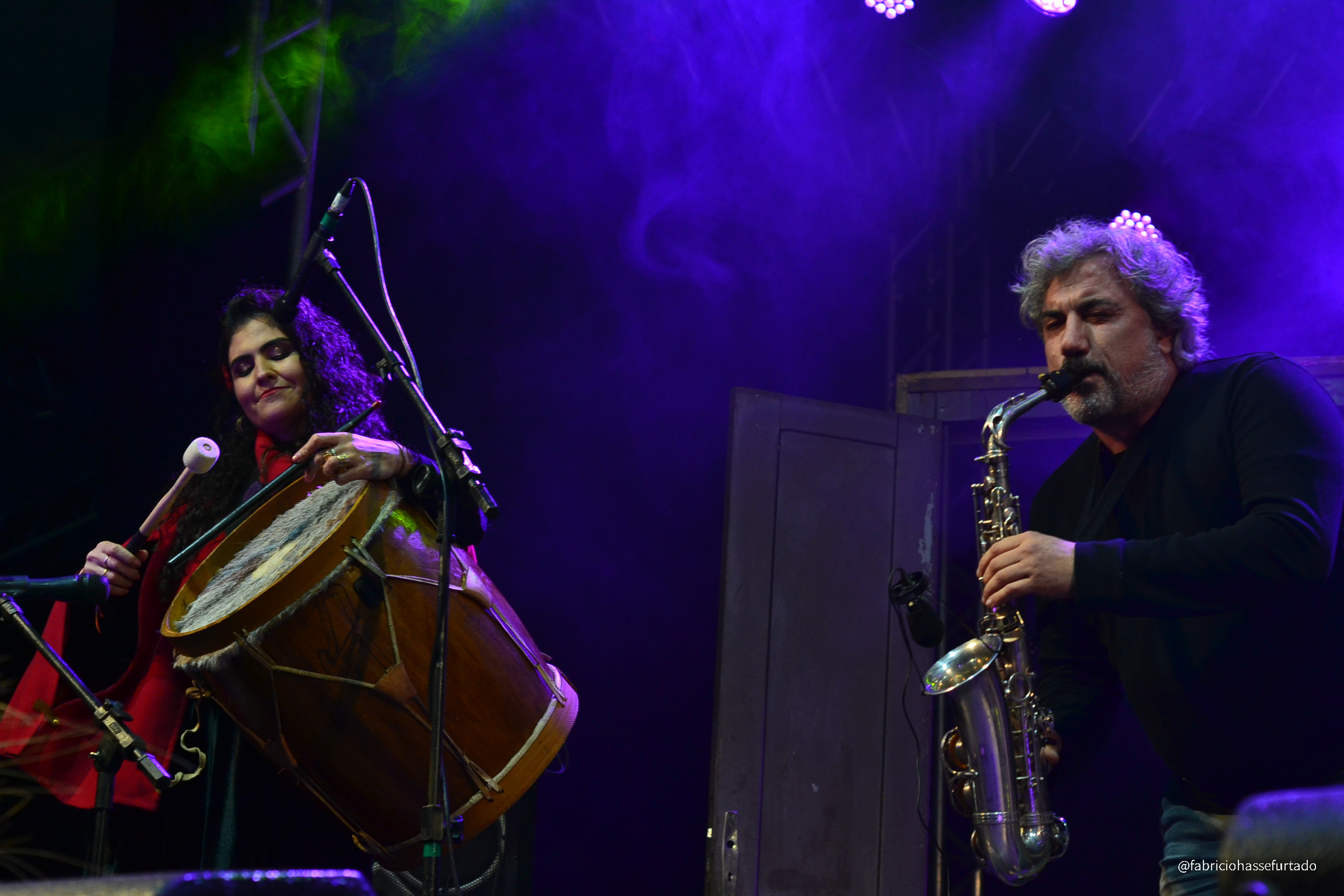Charlise Bandeira tocou o Bombo Leguero ao lado de Pirisca Grecco (foto de Fabrício Furtado)