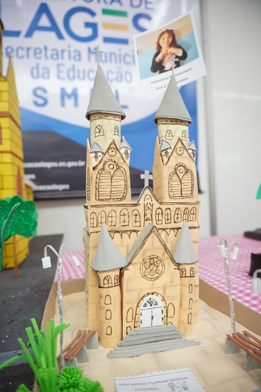 Turmas das pré-escolas do Centro de Educação Infantil (CEIM) Marco Floriani Bordin, em Lages, produziram maquetes que retratam os principais pontos turísticos da cidade. Uma parte das obras de arte está exposta no Parque de Exposições Conta Dinheiro, onde está acontecendo a Festa do Pinhão.