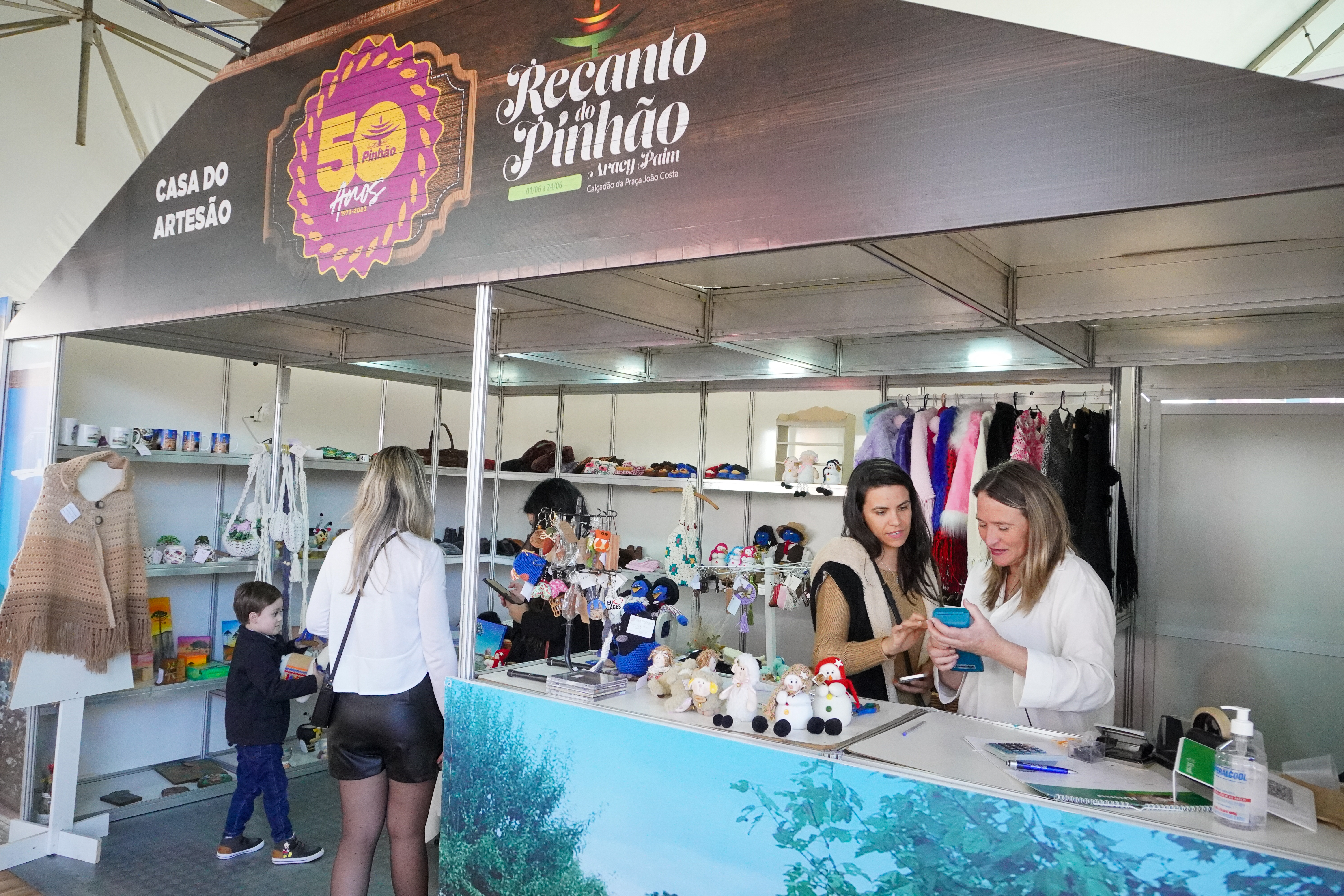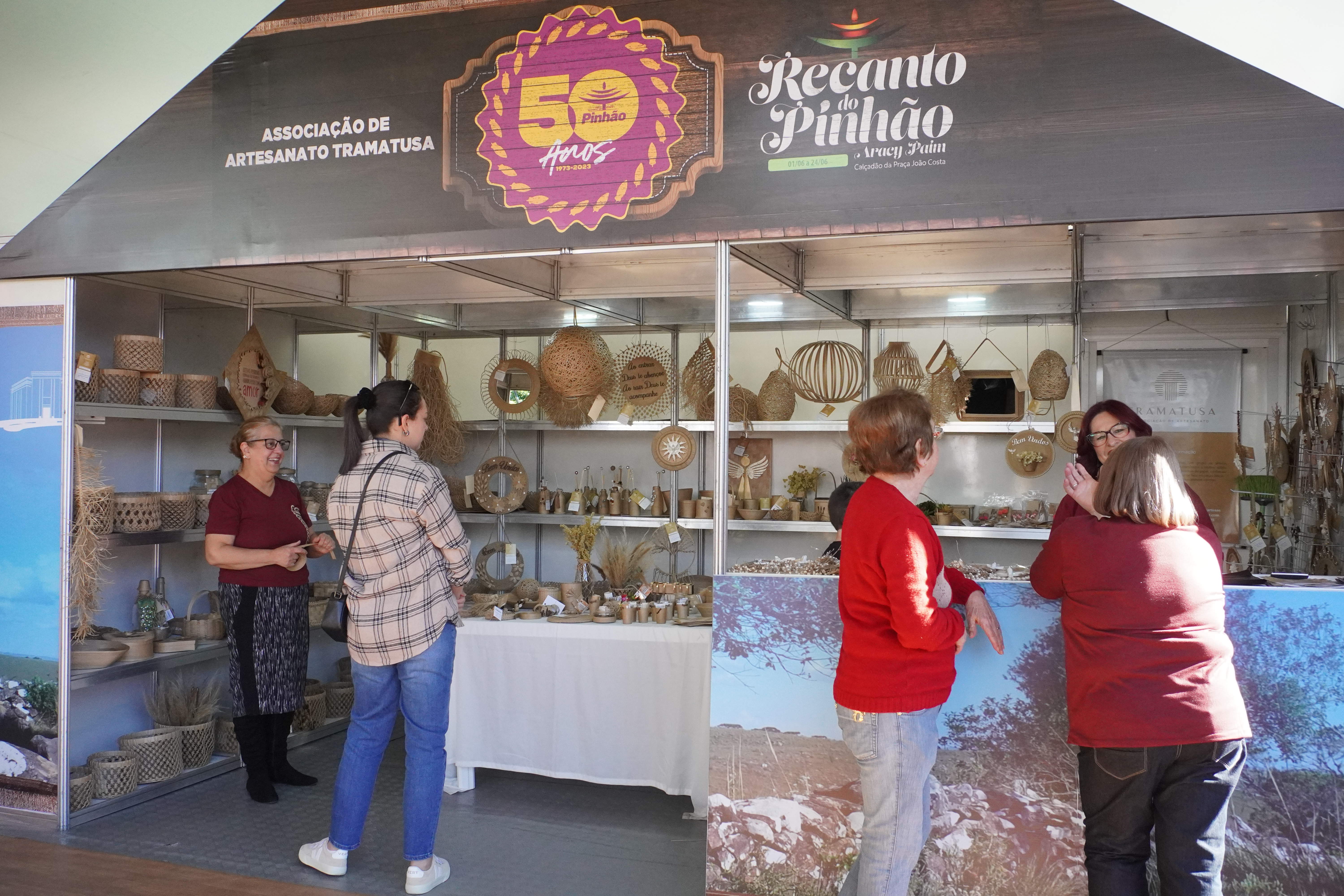 Durante os 24 dias de festividades do Recanto do Pinhão, destacam-se os boxes de artesanato, dois deles instalados na lateral da tenda do palco de apresentações artístico-culturais. Ali estão presentes a Casa do Artesão e a Tramatusa. Tem ainda a loja de Artesanato Nossa Terra, estabelecida na Praça João Costa, anexo ao Recanto do Pinhão. Um espaço dedicado para escritores lageanos também é proporcionado para a Associação Lageana de Escritores (ALE).