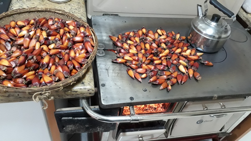 Cabeça revela ainda uma dica para a conservação do produto por pelo menos mais três meses após a retirada da pinha: espalhar o pinhão sobre uma superfície, misturado com sal grosso. “No sítio era muito usado um canto da cozinha de chão para esse tipo de armazenamento”, lembra.