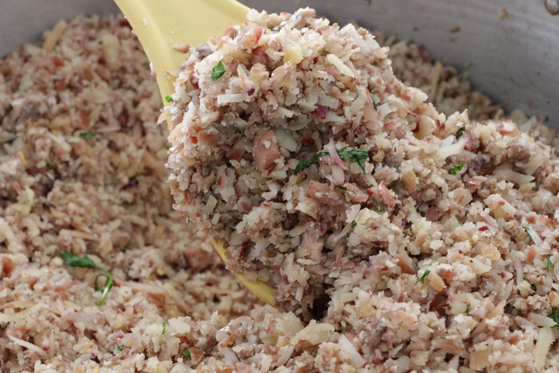 Nos seus diferentes modos de preparo – sapecado na grimpa, assado na chapa do fogão, cozido em água e sal – é alimento apreciado e festejado. Serve de ingrediente principal em variados pratos típicos como a paçoca e o entrevero.