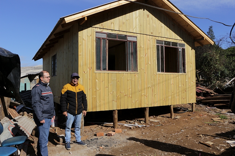 Duas casas de madeira novas foram entregues na tarde desta segunda-feira (19) nos bairros Bom Jesus e Santa Mônica, pelo prefeito em exercício de Lages, Juliano Polese, acompanhado pelo executivo de Habitação, da Coordenação Habitacional, ligada ao Gabinete do Prefeito Municipal, Anilton Freitas. Os endereços das pessoas contempladas são as ruas Padre Diogo Feijó, bairro Bom Jesus, e Vasco da Gama, Guarujá.