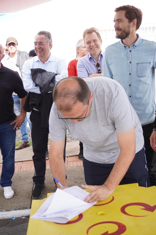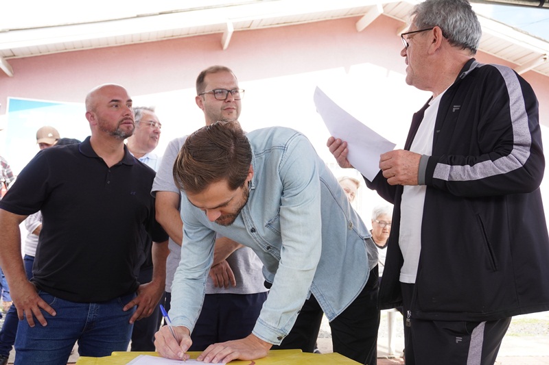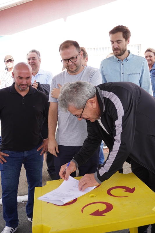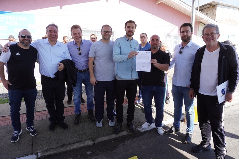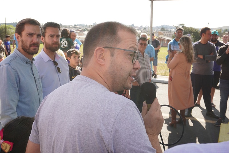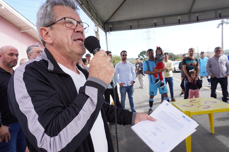O prefeito em exercício Juliano Polese, juntamente do superintendente da Fundação Municipal de Esportes (FME), Renato Nunes Alves de Oliveira Júnior (Renatinho) e do secretário de Obras, João Alberto Duarte, assinou a ordem de serviço para a revitalização do campo de futebol do bairro Guarujá e a construção de um vestiário. O ato foi realizado neste sábado (24), no próprio campo, junto à comunidade e esportistas que utilizam o espaço.