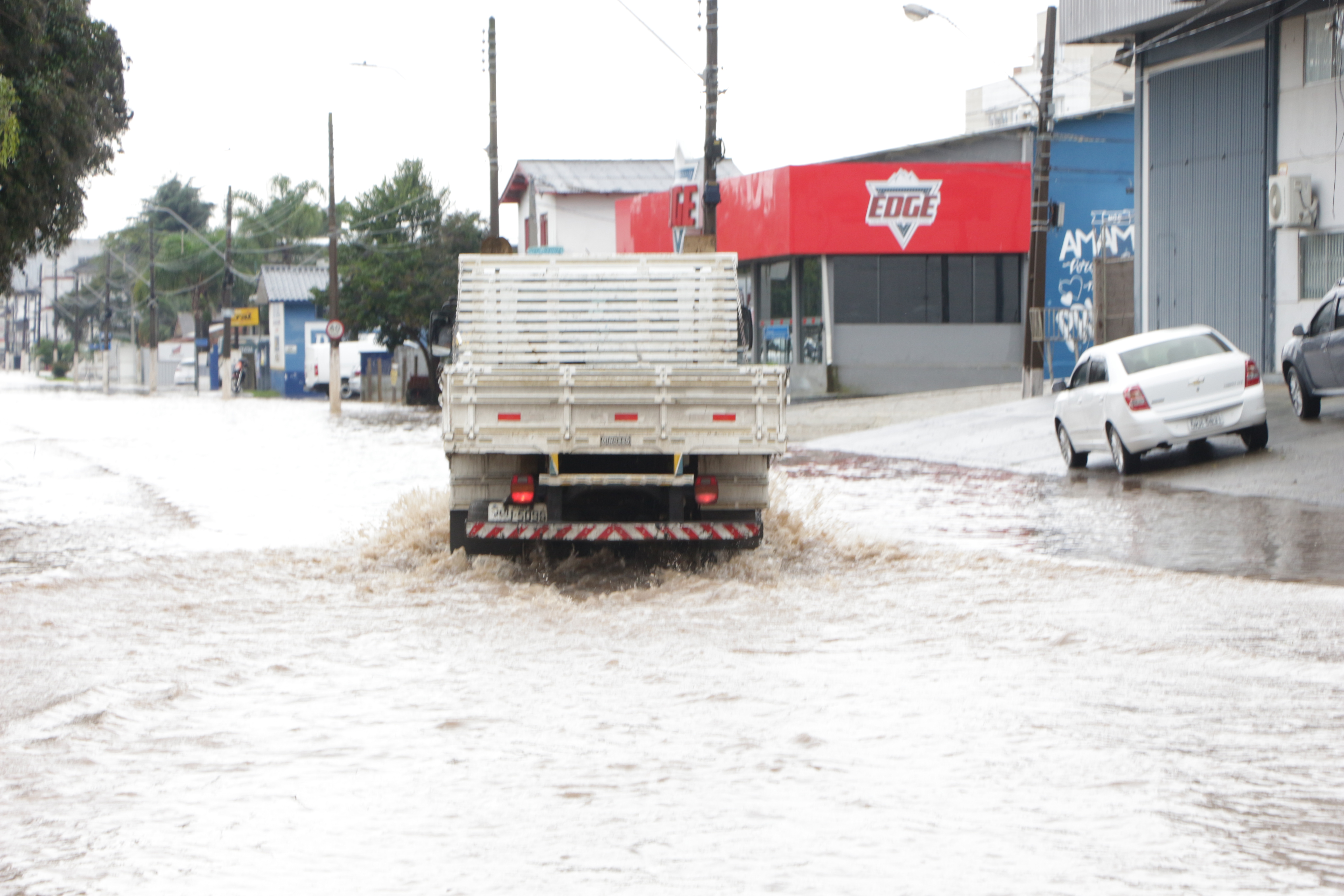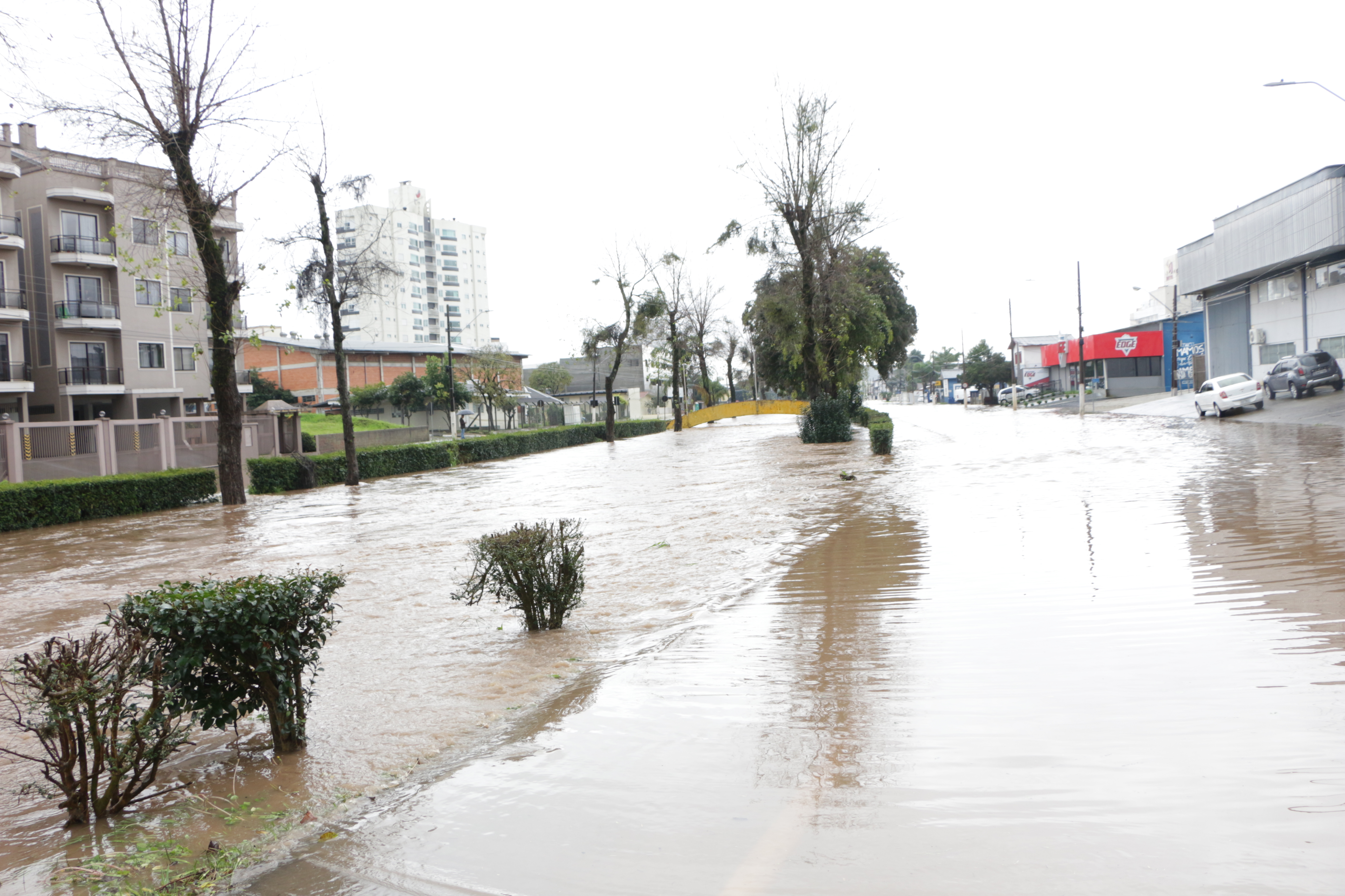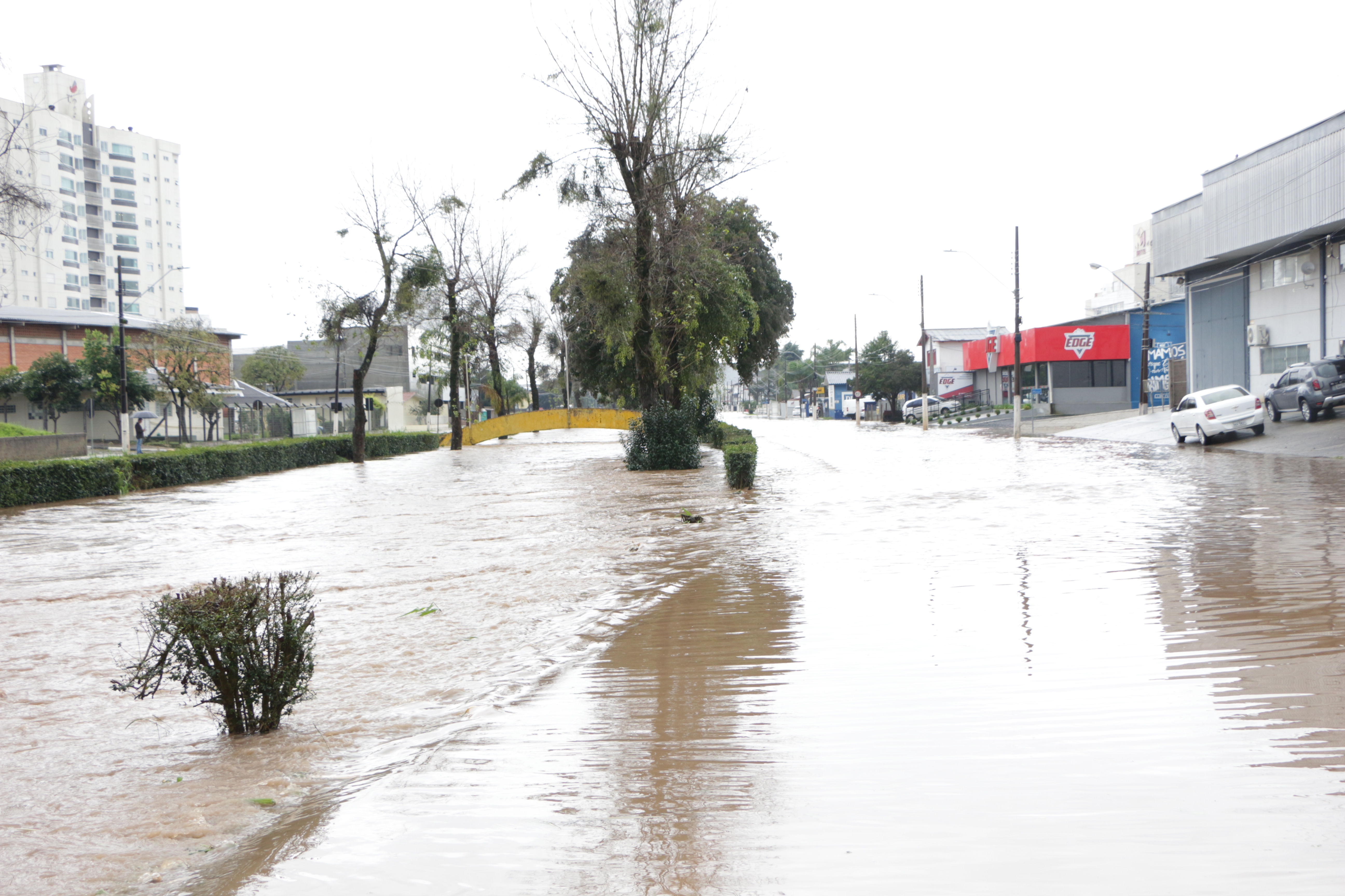 Defesa Civil de Lages, conforme informa o secretário executivo, João Eduardo Pacheco, ainda não registrou ocorrência de alagamentos em residências, mas as enxurradas já alagaram algumas ruas dos bairros Passo Fundo, Gethal e Sagrado Coração de Jesus.