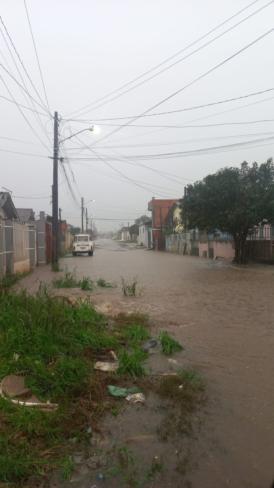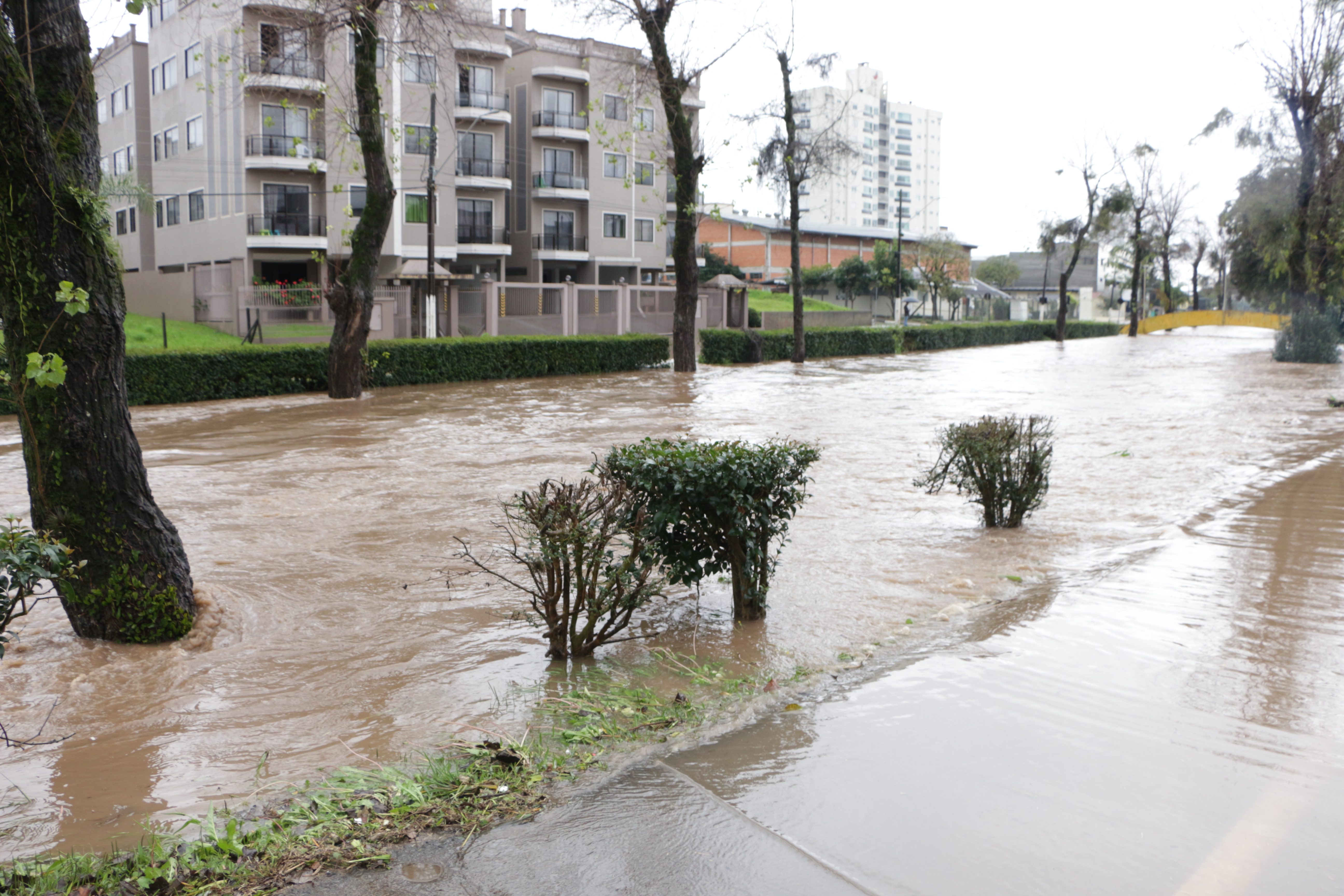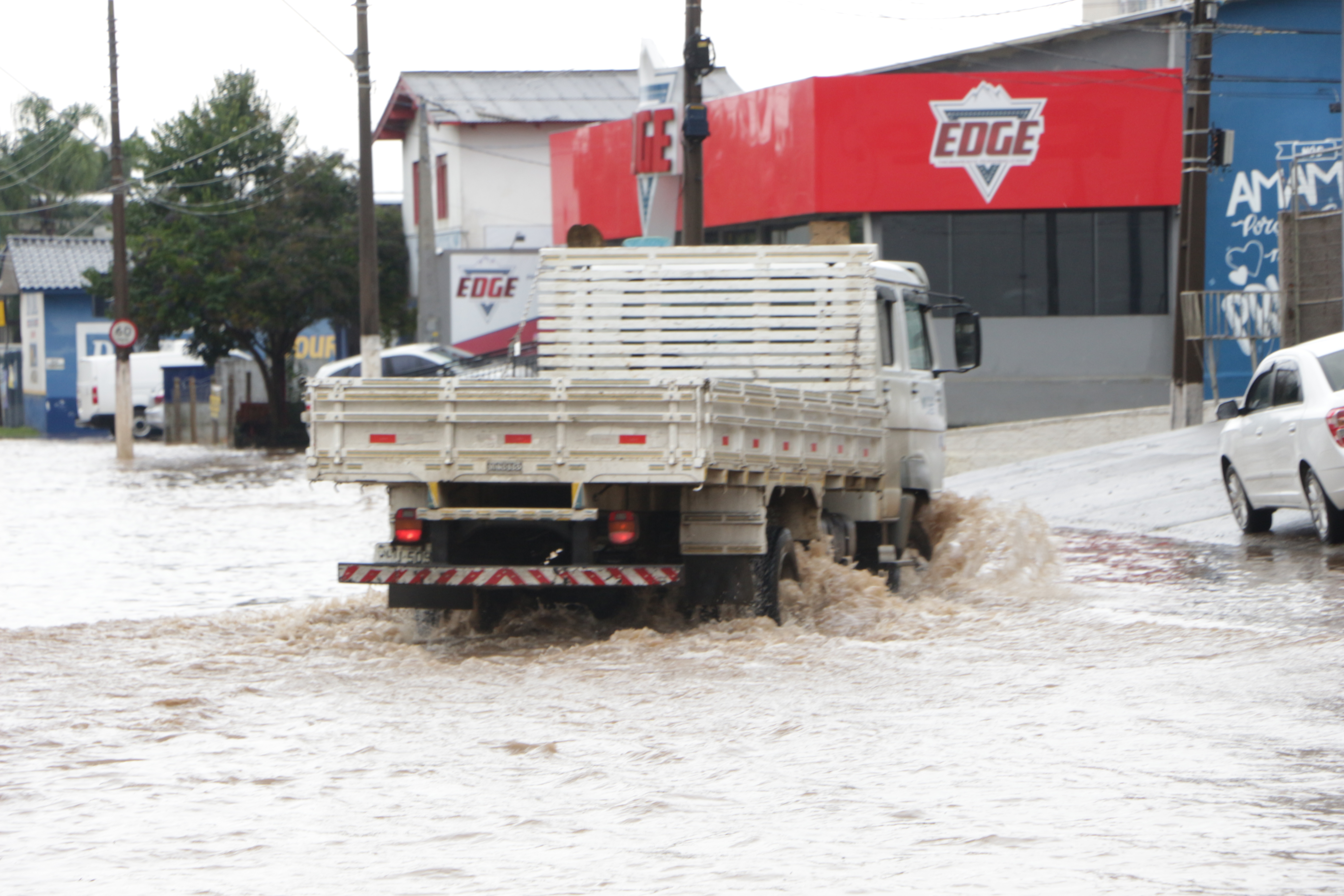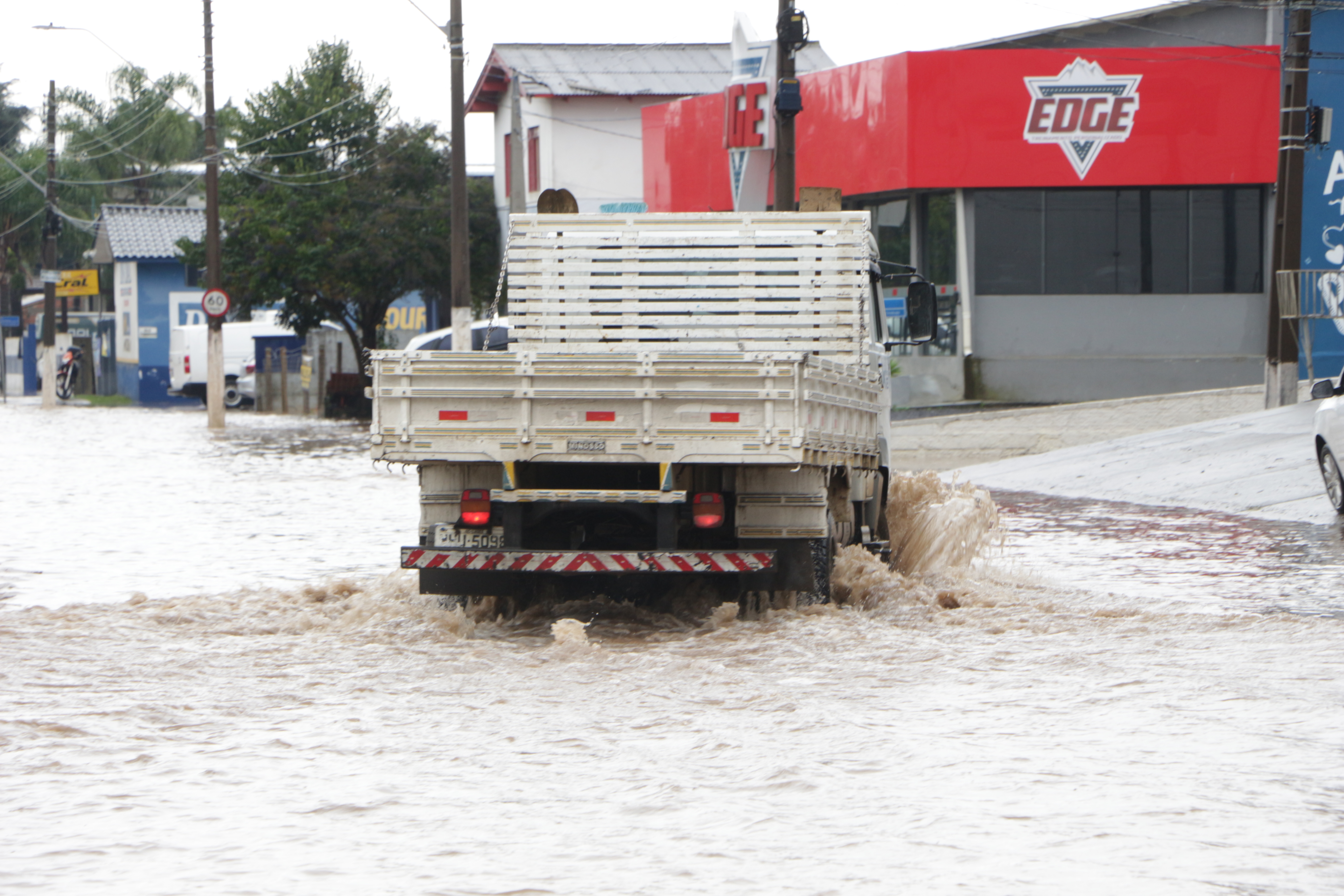 Defesa Civil de Lages, conforme informa o secretário executivo, João Eduardo Pacheco, ainda não registrou ocorrência de alagamentos em residências, mas as enxurradas já alagaram algumas ruas dos bairros Passo Fundo, Gethal e Sagrado Coração de Jesus.