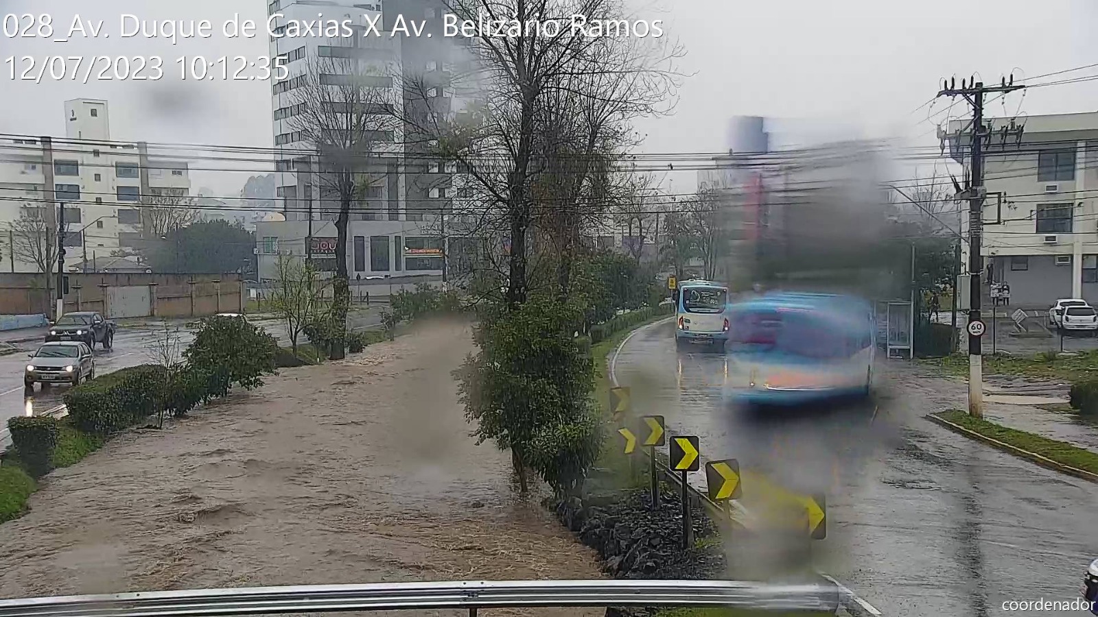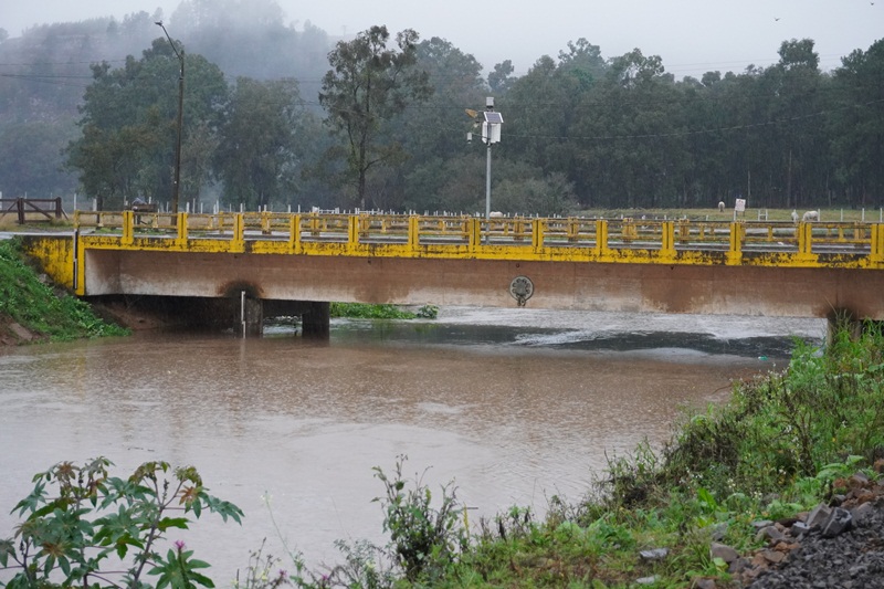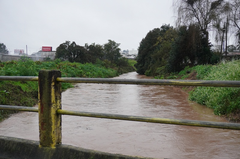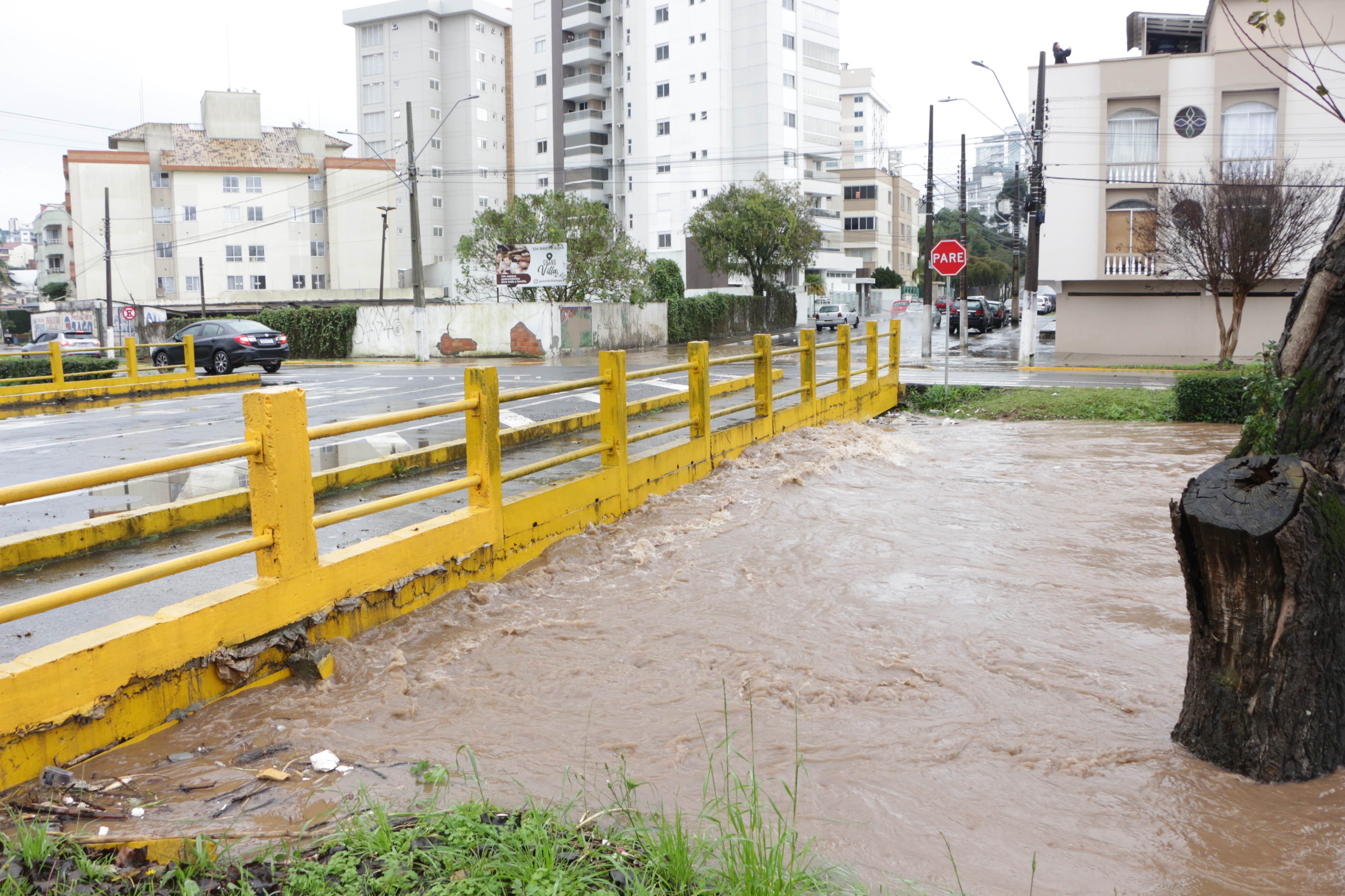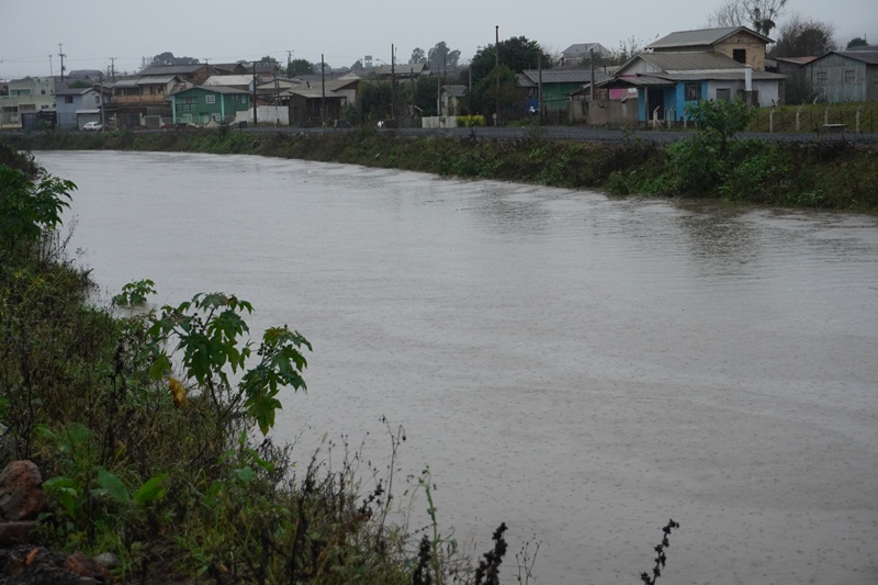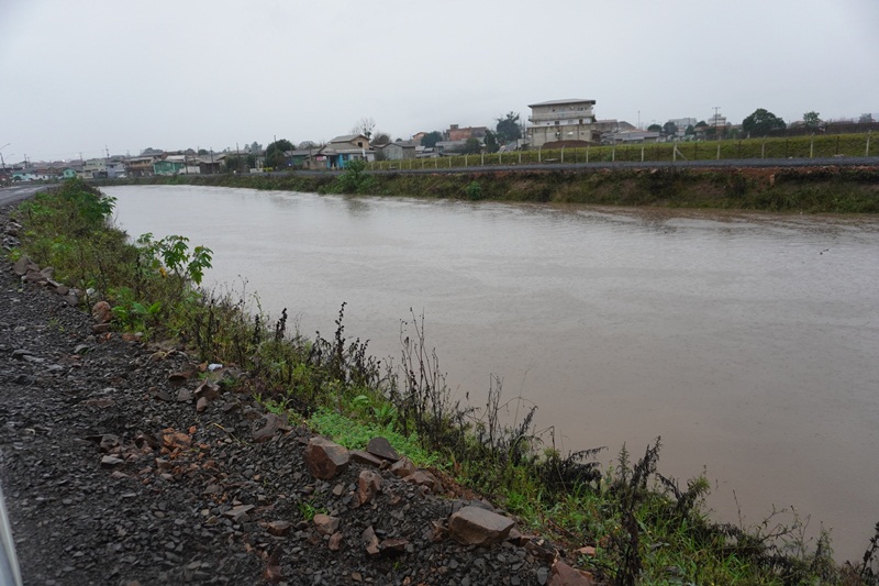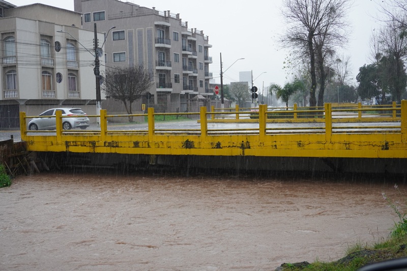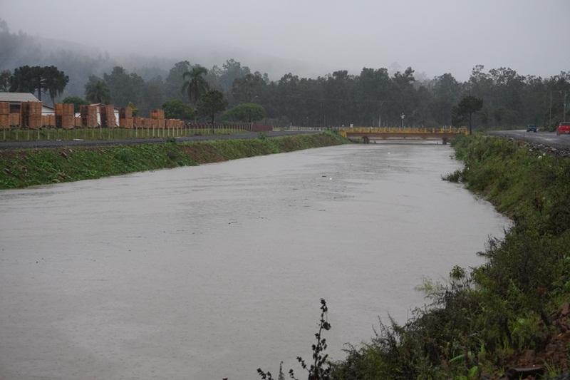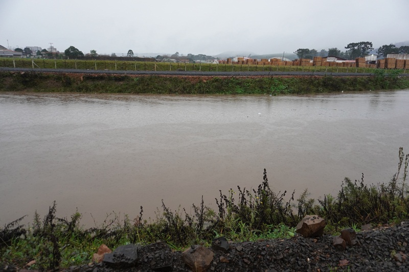 A previsão da Defesa Civil do Estado se confirmou, com volumes extraordinários de chuvas a partir de segunda-feira desta semana (10), provocando cheias nos rios que cortam o perímetro urbano de Lages. Com as chuvas praticamente ininterruptas nesta manhã de quarta-feira (12), em três pontos específicos dos rios Carahá e Passo Fundo, por exemplo, as águas saíram da caixa (calha) do rio, alagando as pistas da avenida Belizário Ramos. Em frente ao Fórum Nereu Ramos; próximo à ponte da Associação de Pais e Amigos dos Excepcionais (Apae), e no ponto da foz do rio Passo Fundo com o rio Carahá, no início da rua Humberto de Campos. Já na ponte de acesso ao bairro Caça e Tiro, onde a Defesa Civil instalou uma régua pluviométrica, as águas do rio Carahá atingiram a marca de 4,20 centímetros na manhã desta quarta-feira, ou seja, faltando 50 centímetros para a atingir a marca de 4,70 centímetros, quando o rio transborda sobre essa ponte.