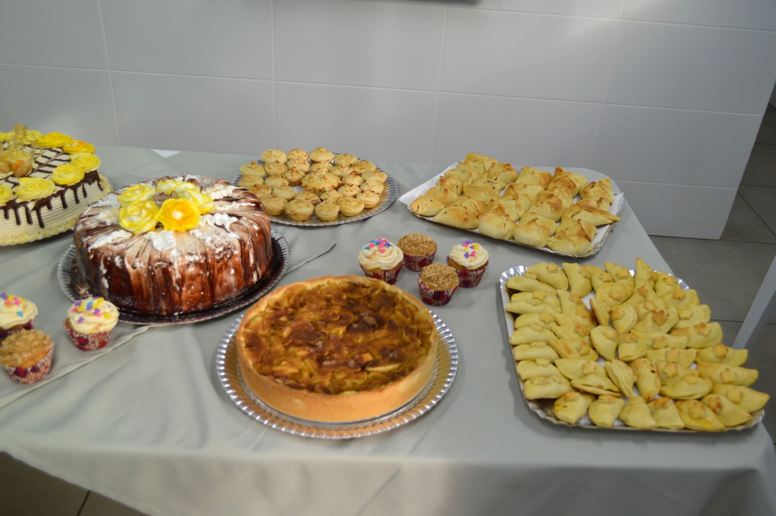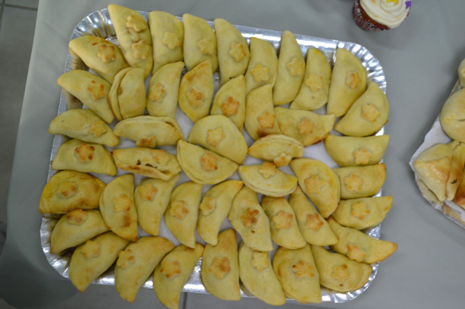 O caderno de receitas da oficina de Confeitaria era um espetáculo: Esfirra, empada, pastel assado, risóles, brigadeiro tradicional, docinho de coco (beijinho), cajuzinho, cupcake, pão de ló de laranja, massa flora, bolo de chocolate, torta de maçã, tortinha de morangos, recheio básico para massa flora, recheio de leite condensado e amendoim crocante, recheio de coco, recheio de abacaxi, calda para doce caramelizado, cobertura e recheio de nata, glacê básico, glacê de açúcar queimado, glacê real, gel de brilho e chantili (chantilly).