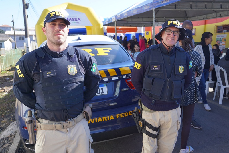 A Diretran fez a distribuição de material informativo sobre o trânsito. A Polícia Rodoviária Federal (PRF) esteve no local com uma viatura, com demonstrações do etilômetro e totem para fotografia.