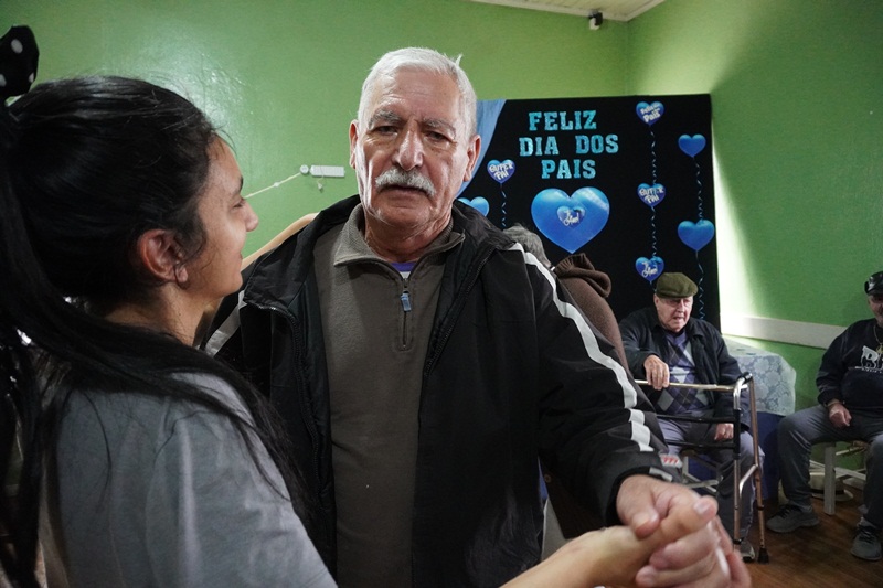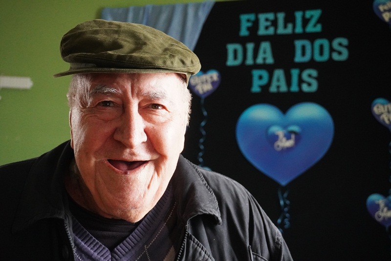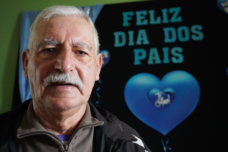 O nome dele é Adi Rosa, tem 75 anos e está acolhido no Lar Vicentino há dois anos. Pai de cinco filhos, ele está ansioso e contando os dias para a filha Maria Luiza buscá-lo para passear e passar o Dia dos Pais com ele.