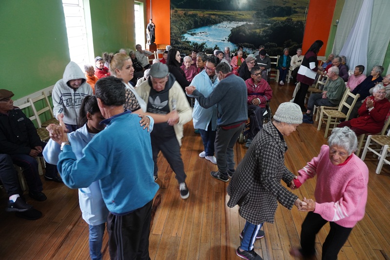 Embora o frio de inverno e o céu nublado estejam predominantes nos últimos dias em Lages, a tarde desta sexta-feira (11), foi de calor humano e aconchego para mais de 80 experientes papais e vovôs acolhidos no Lar Vicentino, uma das Instituições de Longa Permanência para Idosos (ILPI) do município de Lages, situado no Centro.