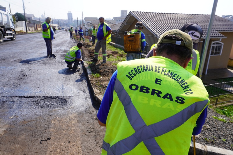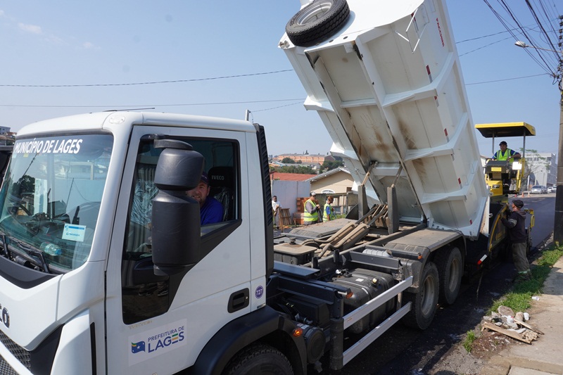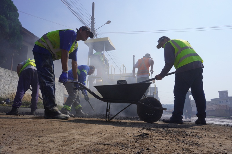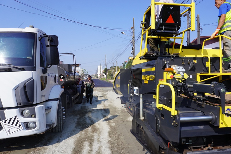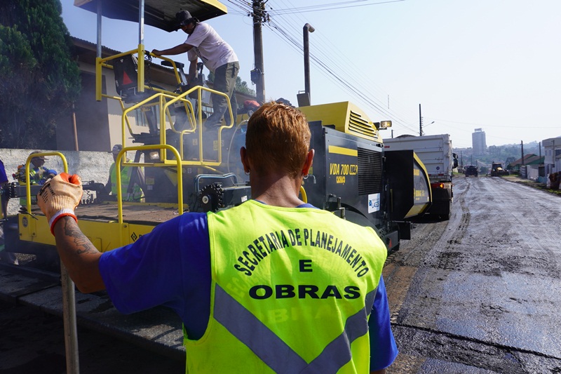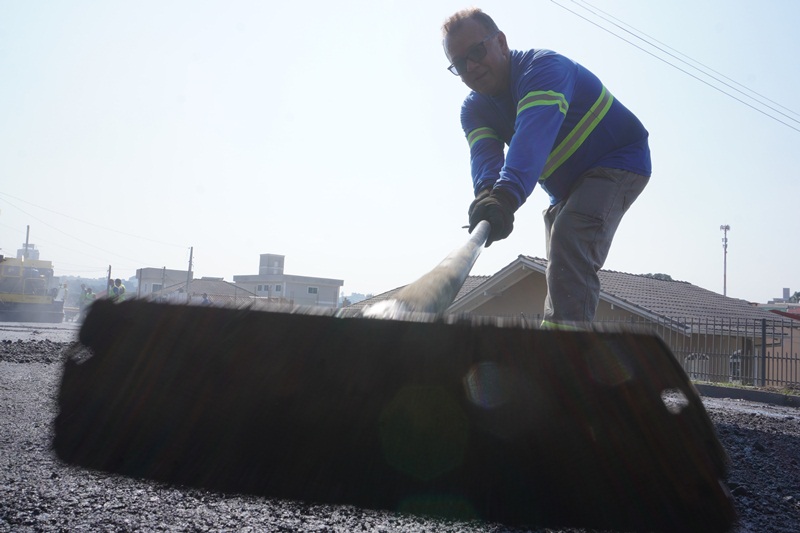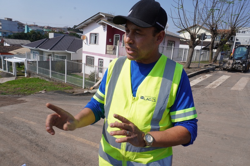 Novo trecho da rua Fortaleza com 120 metros de extensão por nove metros de largura está sendo pavimentado. O projeto é executado por equipe própria da secretaria municipal de Obras, da Prefeitura de Lages.