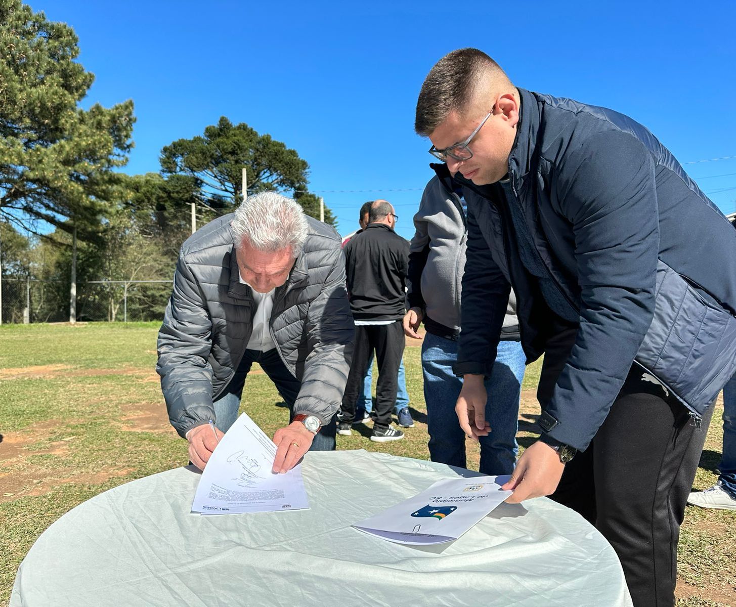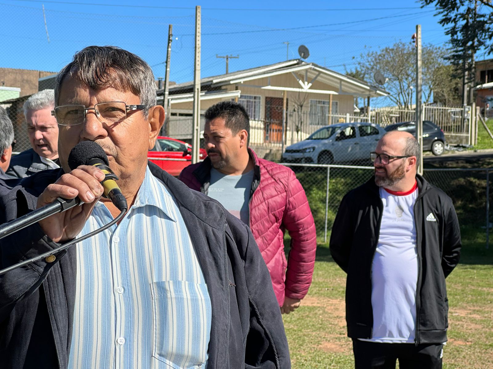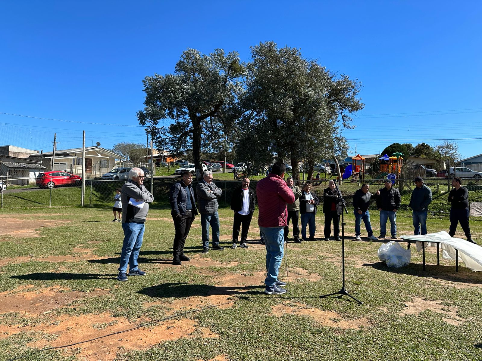 A população do bairro Vila Maria e suas adjacências irão ganhar uma nova opção de esporte, lazer e qualidade de vida nos próximos três meses: Uma quadra esportiva de grama sintética totalmente nova, situada na esquina entre as ruas Clito Zapelini Neto e Velucino José de Godoy. Na manhã deste sábado (26 de agosto), o prefeito Antonio Ceron assinou e entregou a ordem de serviço à empresa de engenharia vencedora do processo licitatório para execução dos trabalhos, a lageana Construtora Evoluta Ltda., em solenidade oficial realizada no próprio bairro a ser contemplado, prestigiada por autoridades da administração pública municipal, a exemplo do secretário do Planejamento e Mobilidade Urbana, Gabriel Córdova de Jesus, e secretários e executivos de pastas municipais variadas, e por outros membros da sociedade, como o representante da empresa Construtora Evoluta Ltda., Luiz Carlos Curtis; vereadores; lideranças comunitárias, e moradores, comerciantes e prestadores de serviços.
