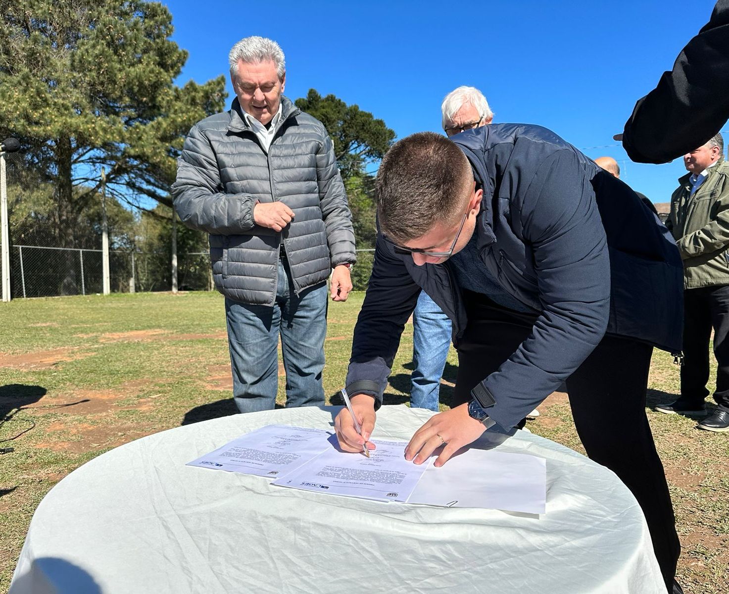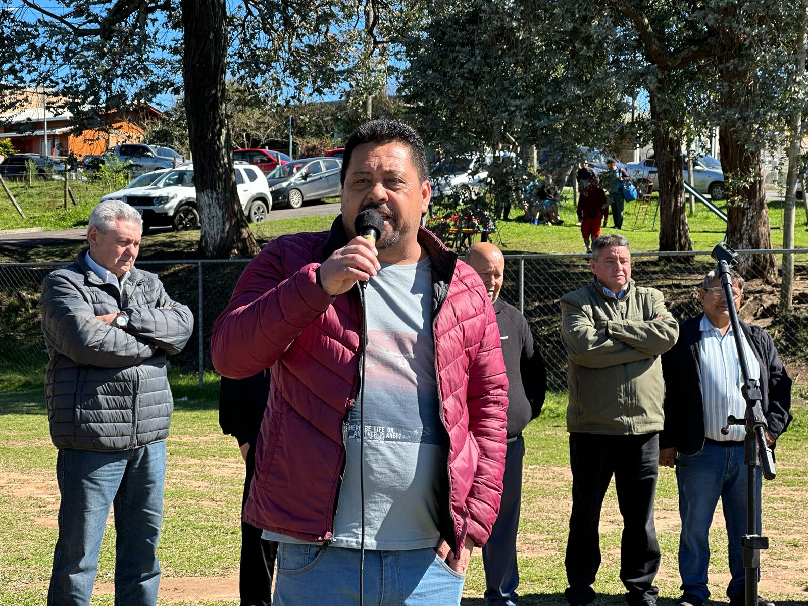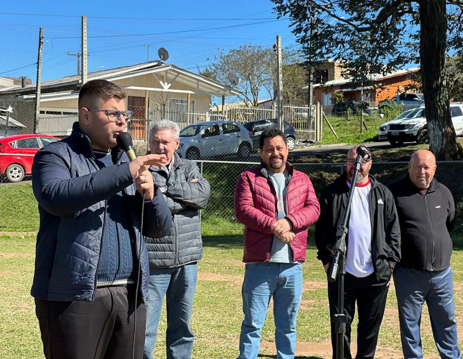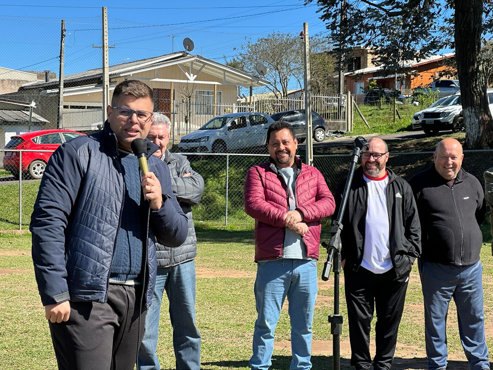 A população do bairro Vila Maria e suas adjacências irão ganhar uma nova opção de esporte, lazer e qualidade de vida nos próximos três meses: Uma quadra esportiva de grama sintética totalmente nova, situada na esquina entre as ruas Clito Zapelini Neto e Velucino José de Godoy. Na manhã deste sábado (26 de agosto), o prefeito Antonio Ceron assinou e entregou a ordem de serviço à empresa de engenharia vencedora do processo licitatório para execução dos trabalhos, a lageana Construtora Evoluta Ltda., em solenidade oficial realizada no próprio bairro a ser contemplado, prestigiada por autoridades da administração pública municipal, a exemplo do secretário do Planejamento e Mobilidade Urbana, Gabriel Córdova de Jesus, e secretários e executivos de pastas municipais variadas, e por outros membros da sociedade, como o representante da empresa Construtora Evoluta Ltda., Luiz Carlos Curtis; vereadores; lideranças comunitárias, e moradores, comerciantes e prestadores de serviços.