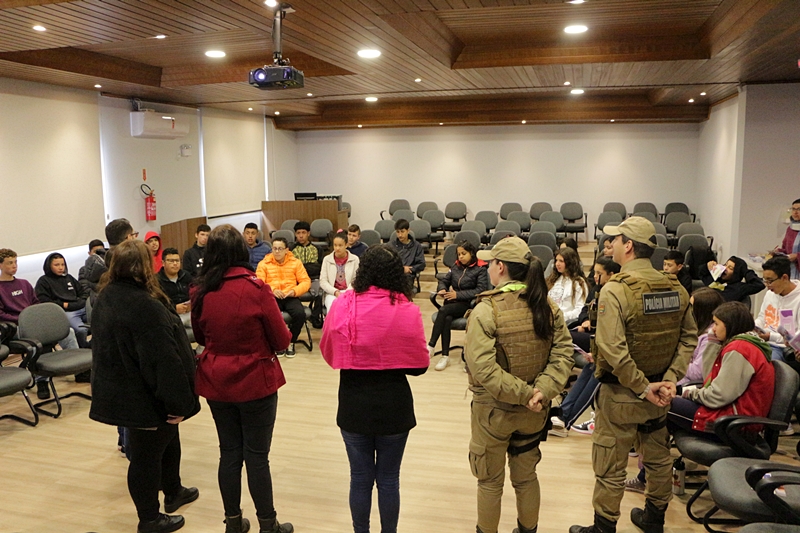Nesta terça-feira, grupo discente da Escola Municipal de Educação Básica (Emeb) Professor Osni de Medeiros Régis, do bairro Tributo e, na quarta, da Emeb Aline Giovana Schmitt, situada no bairro Guarujá. “Ao perceber ser a vivência uma das melhores formas de proporcionar reflexão e entendimento sobre temas complexos, a Secretaria de Políticas para a Mulher pretende propiciar aos participantes a possibilidade de uma breve vivência em relação aos caminhos de um relacionamento abusivo”, como justifica a proposta.