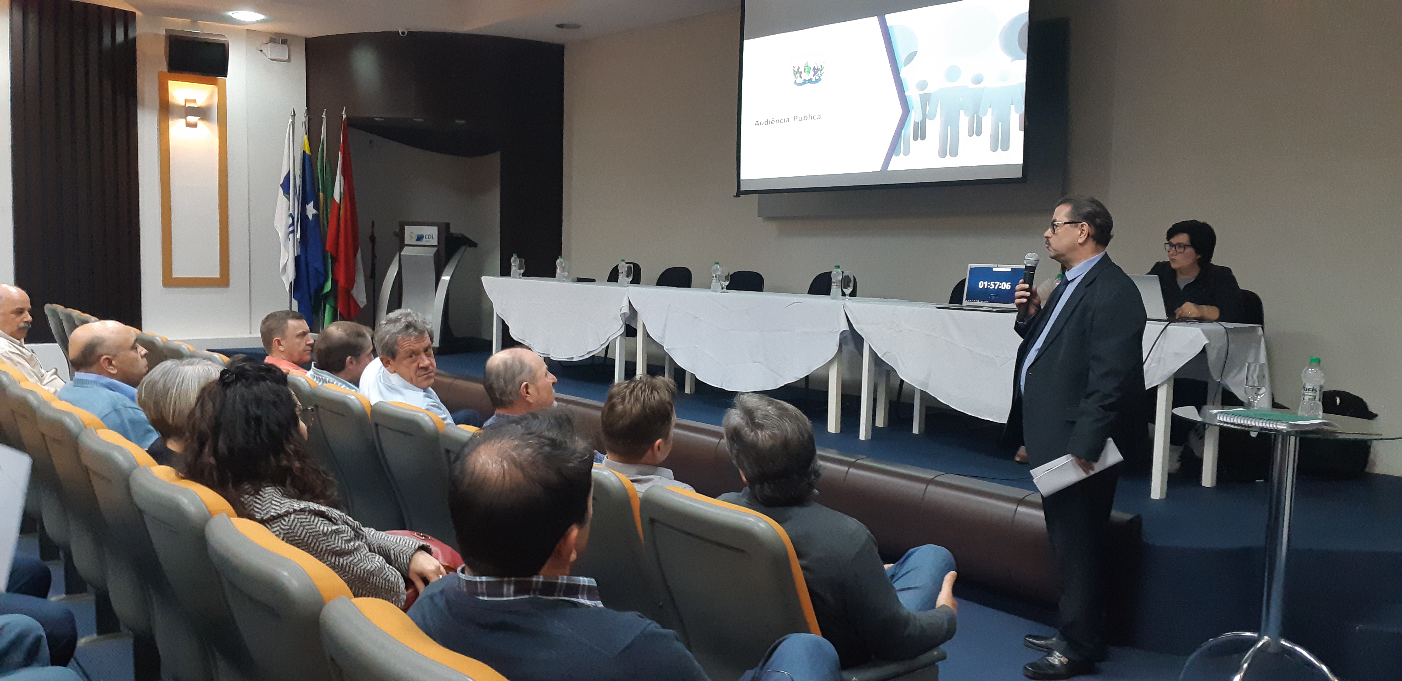A empresa responsável pelos estudos técnicos e elaboração do Edital de Licitação na modalidade de Concorrência Pública apresentou, na noite desta quinta-feira (26 de setembro), em Audiência Pública, realizada no auditório da Câmara dos Dirigentes Lojistas (CDL), a minuta do Edital de Licitação do serviço de Estacionamento Rotativo Pago, denominado Área Azul, em Lages. A reunião foi organizada pela Prefeitura e é uma exigência da legislação vigente para o andamento do processo licitatório para concessão onerosa comum à iniciativa privada para exploração deste serviço.