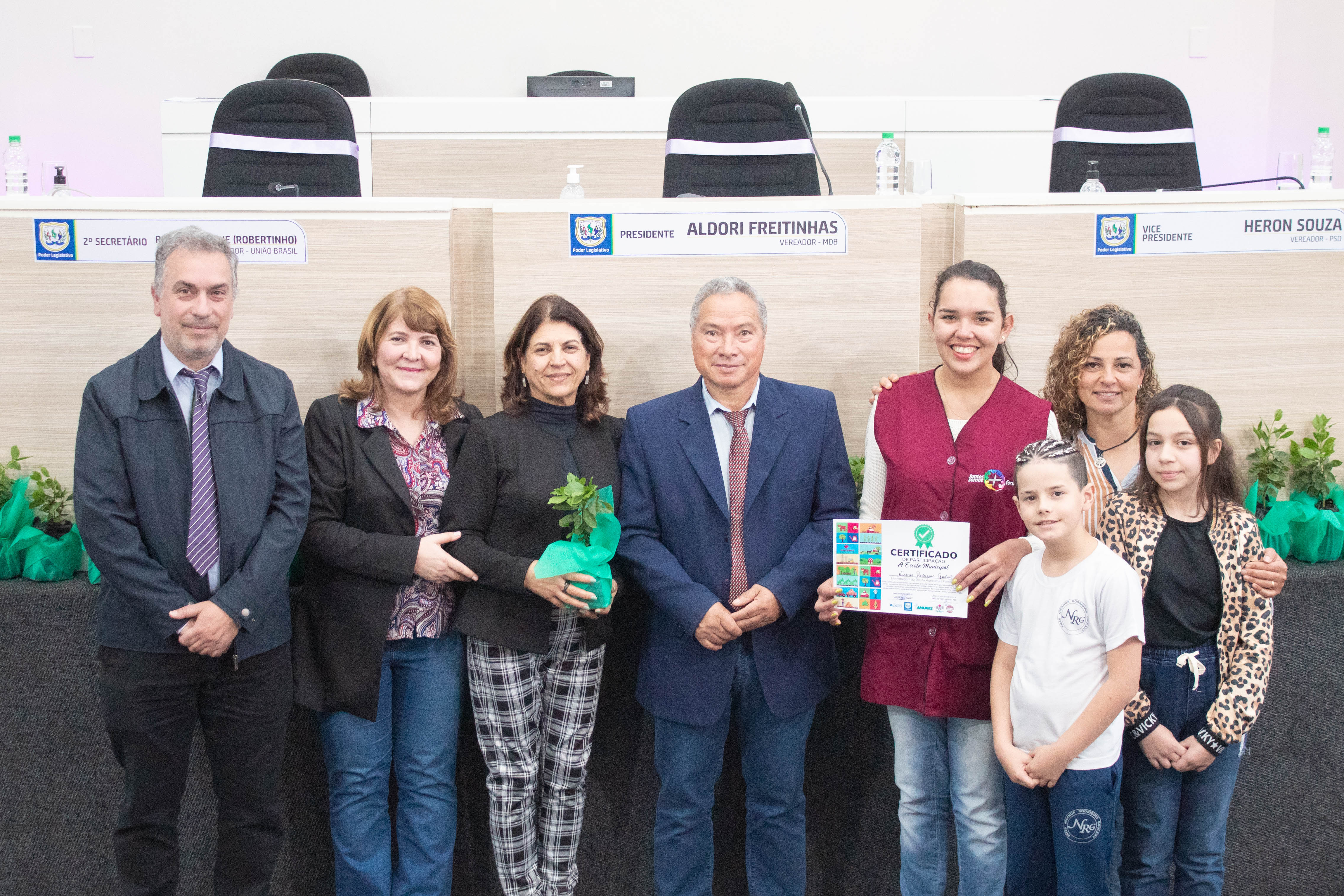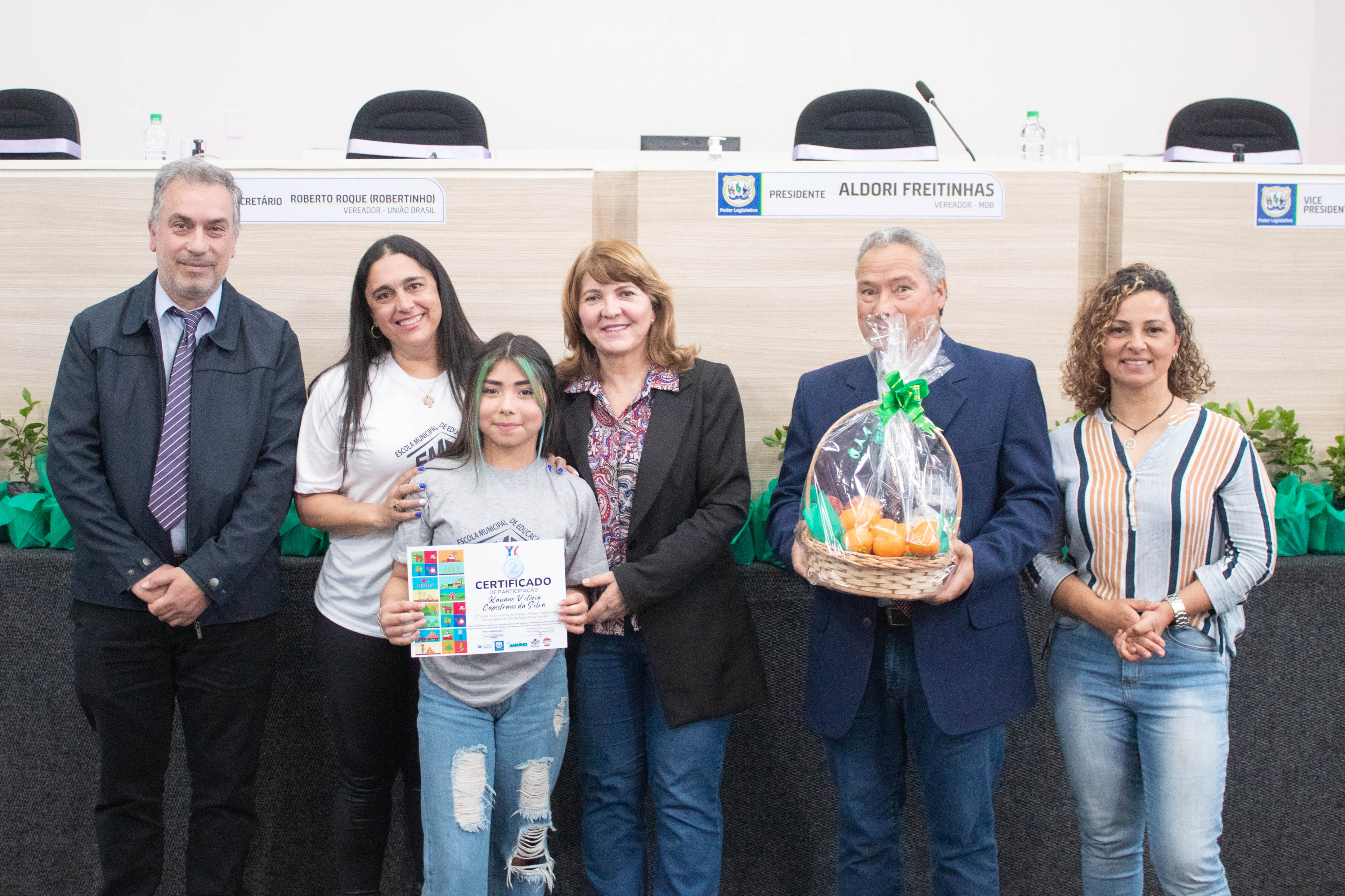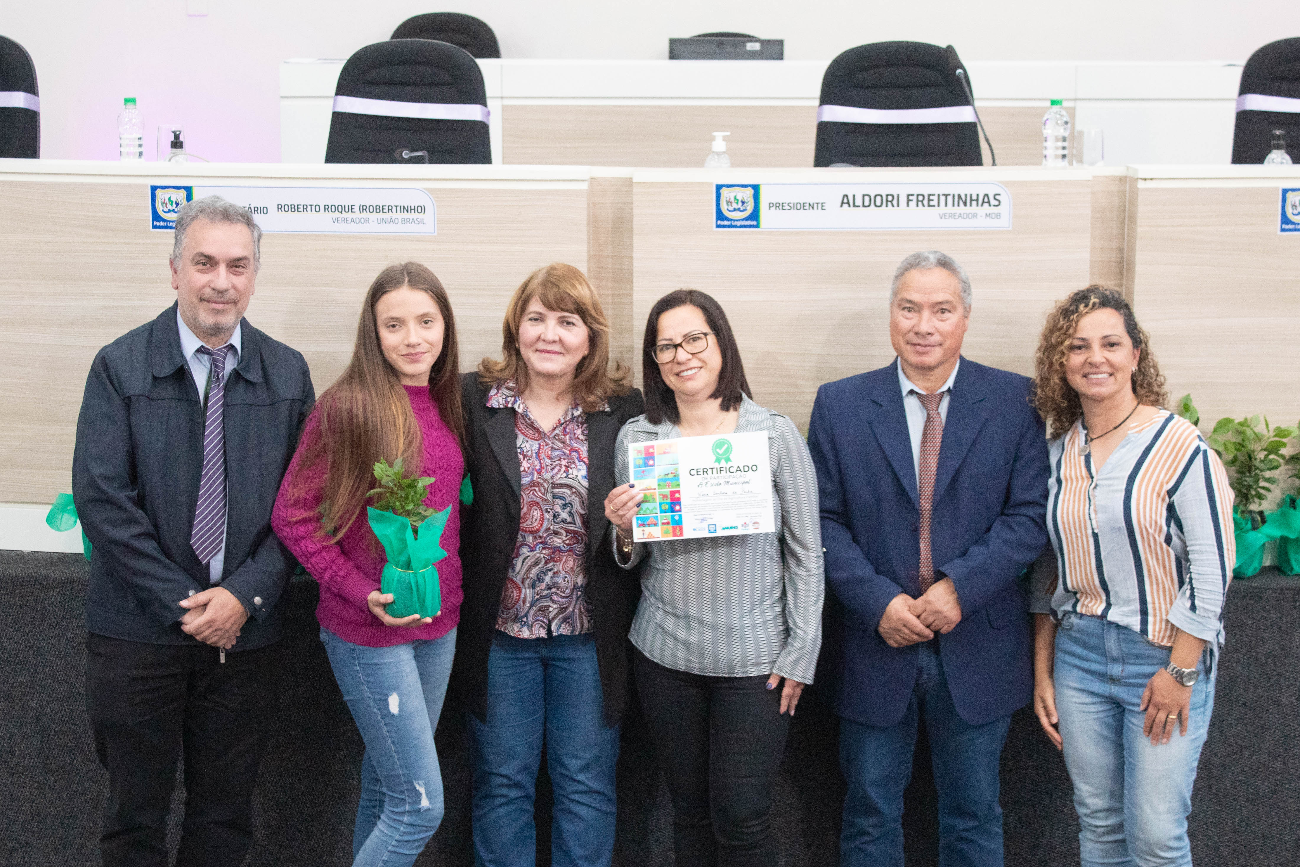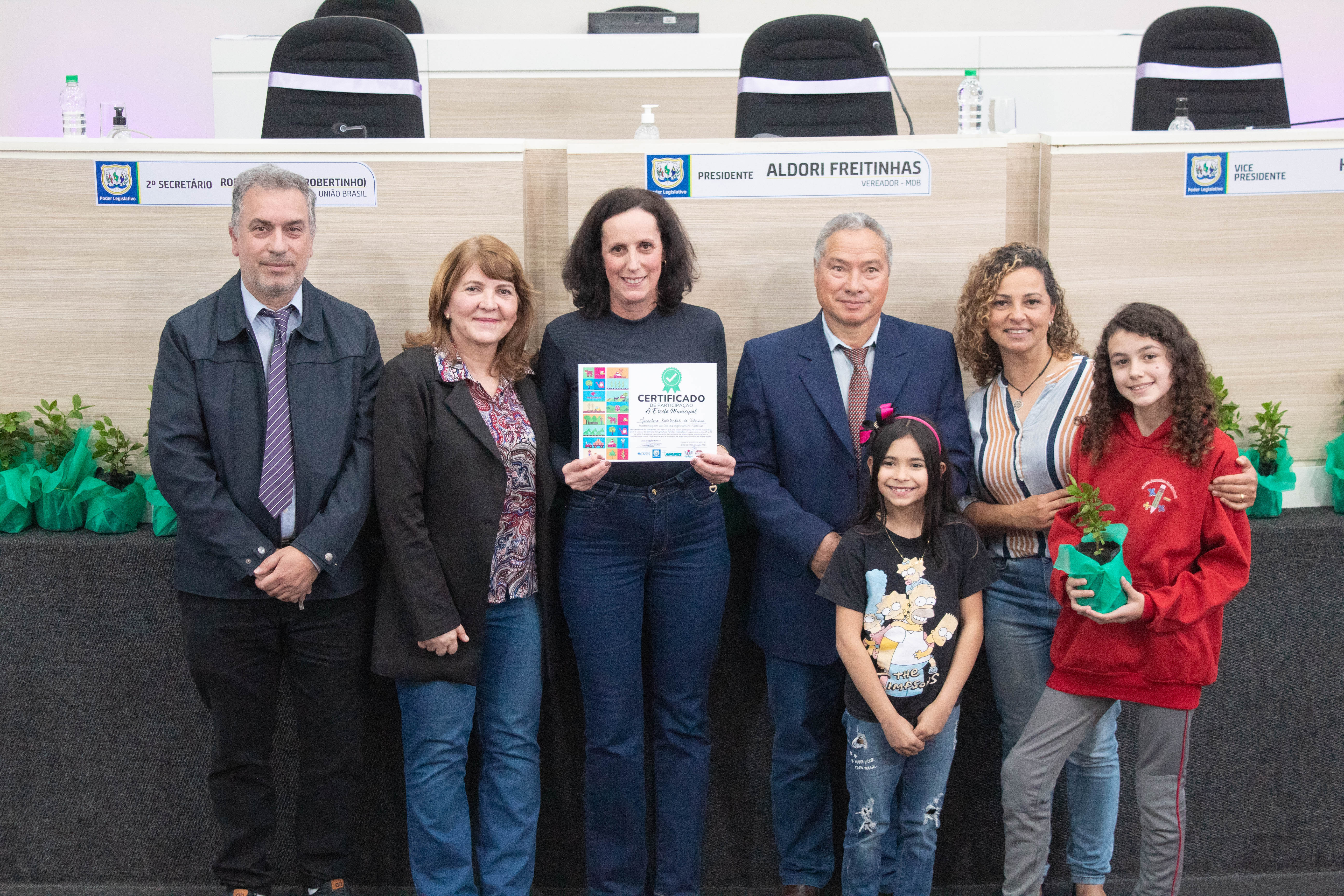 Em cerimônia que aconteceu na tarde de ontem da última quarta-feira (30), estudantes do Sistema Público Municipal de Educação que participaram de concurso referente à Semana da Agricultura Familiar, celebrada no mês de julho, foram homenageados na Câmara de Vereadores. A solenidade aconteceu no plenário do Legislativo Municipal e reuniu estudantes, diretoras, professores, vereadores e familiares. A homenagem foi uma iniciativa do vereador Enio do Vime, que presidiu o ato.