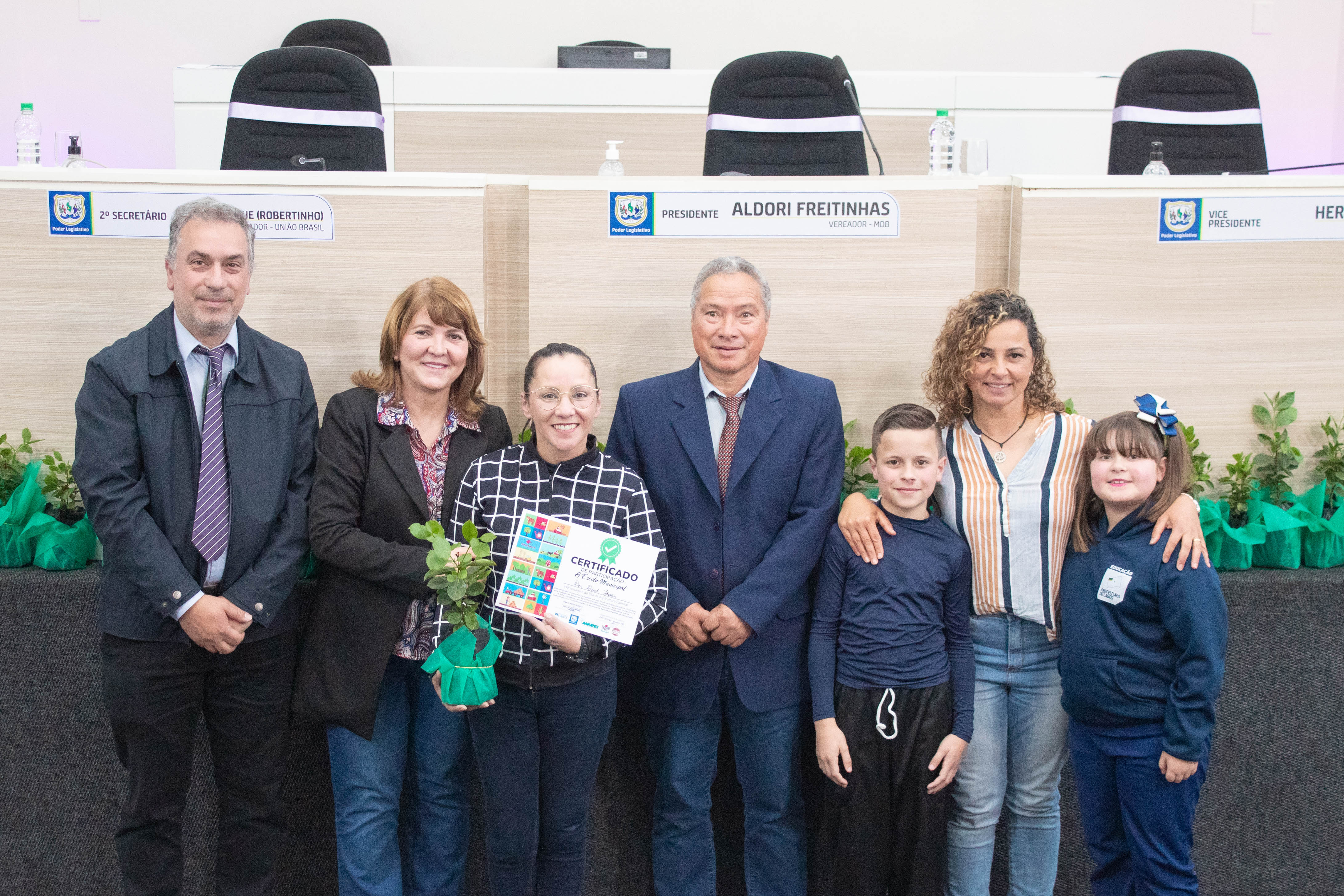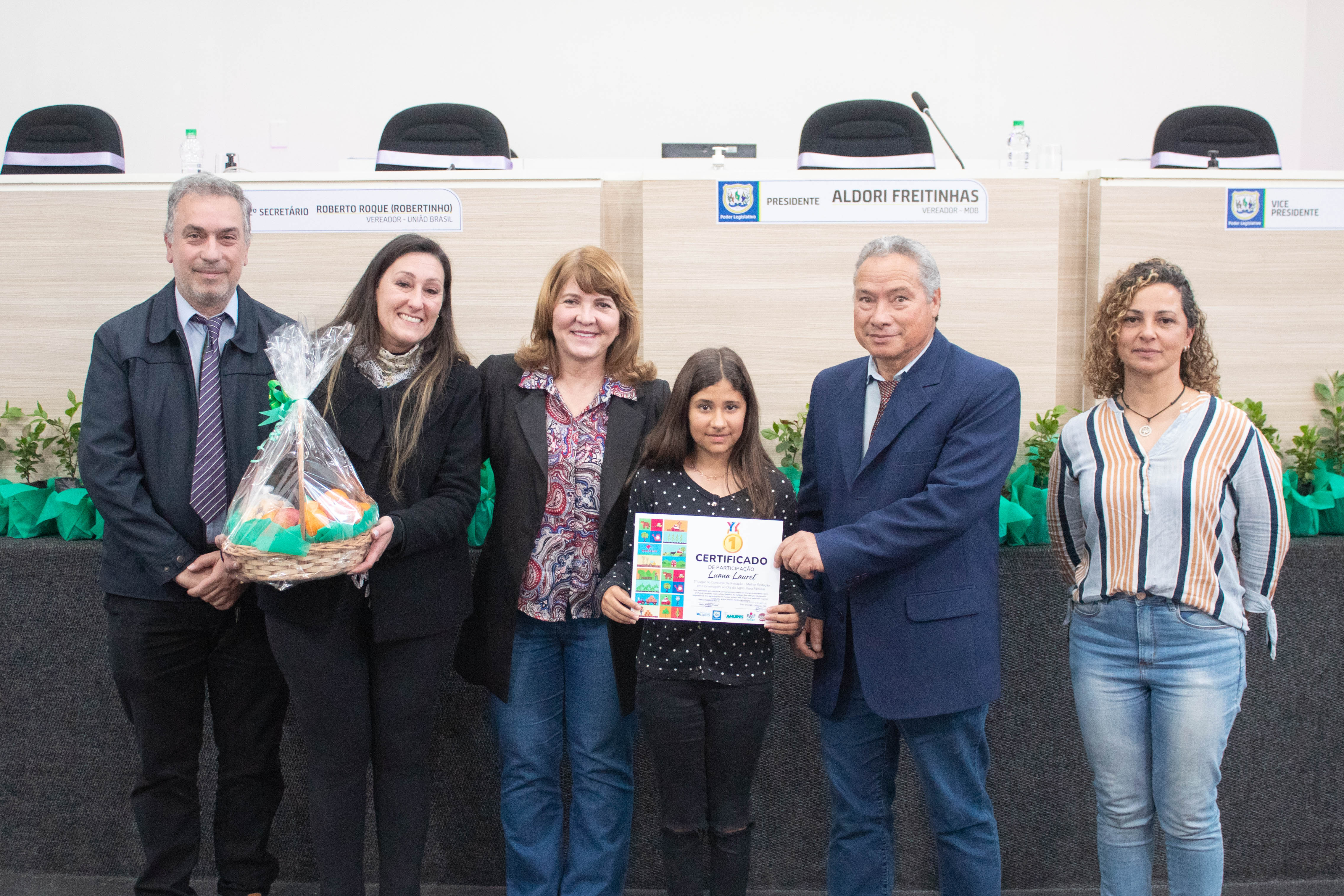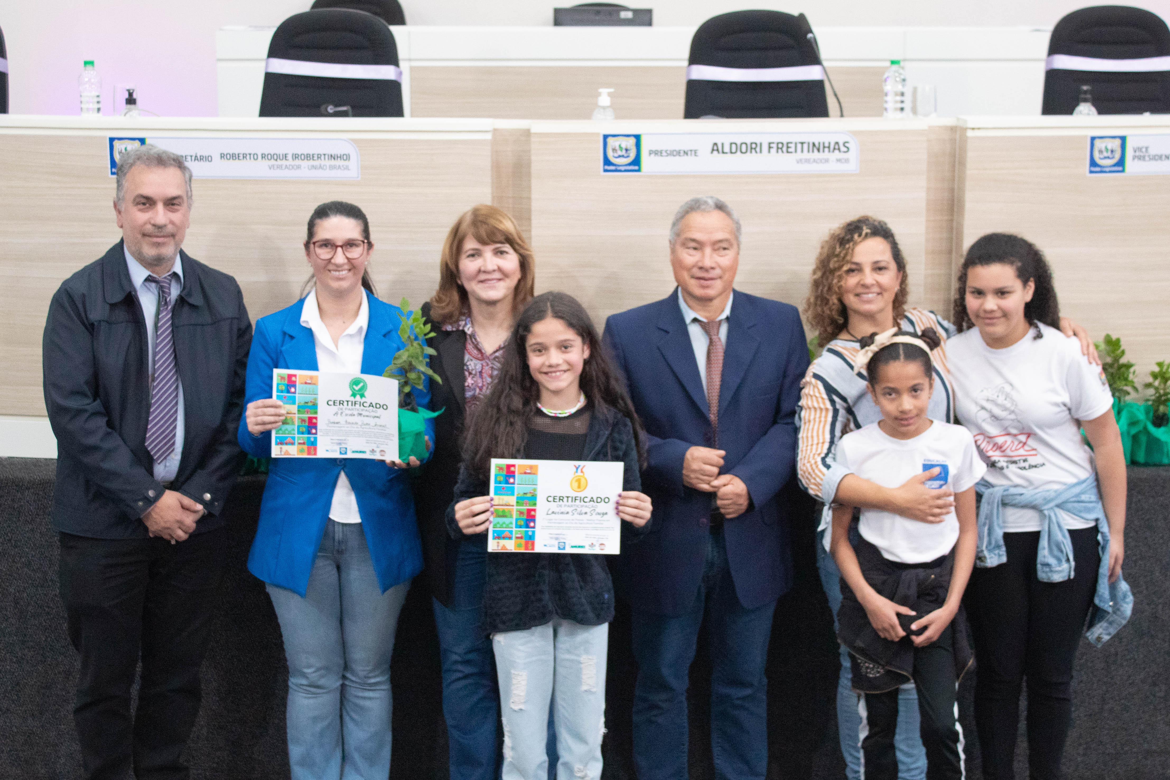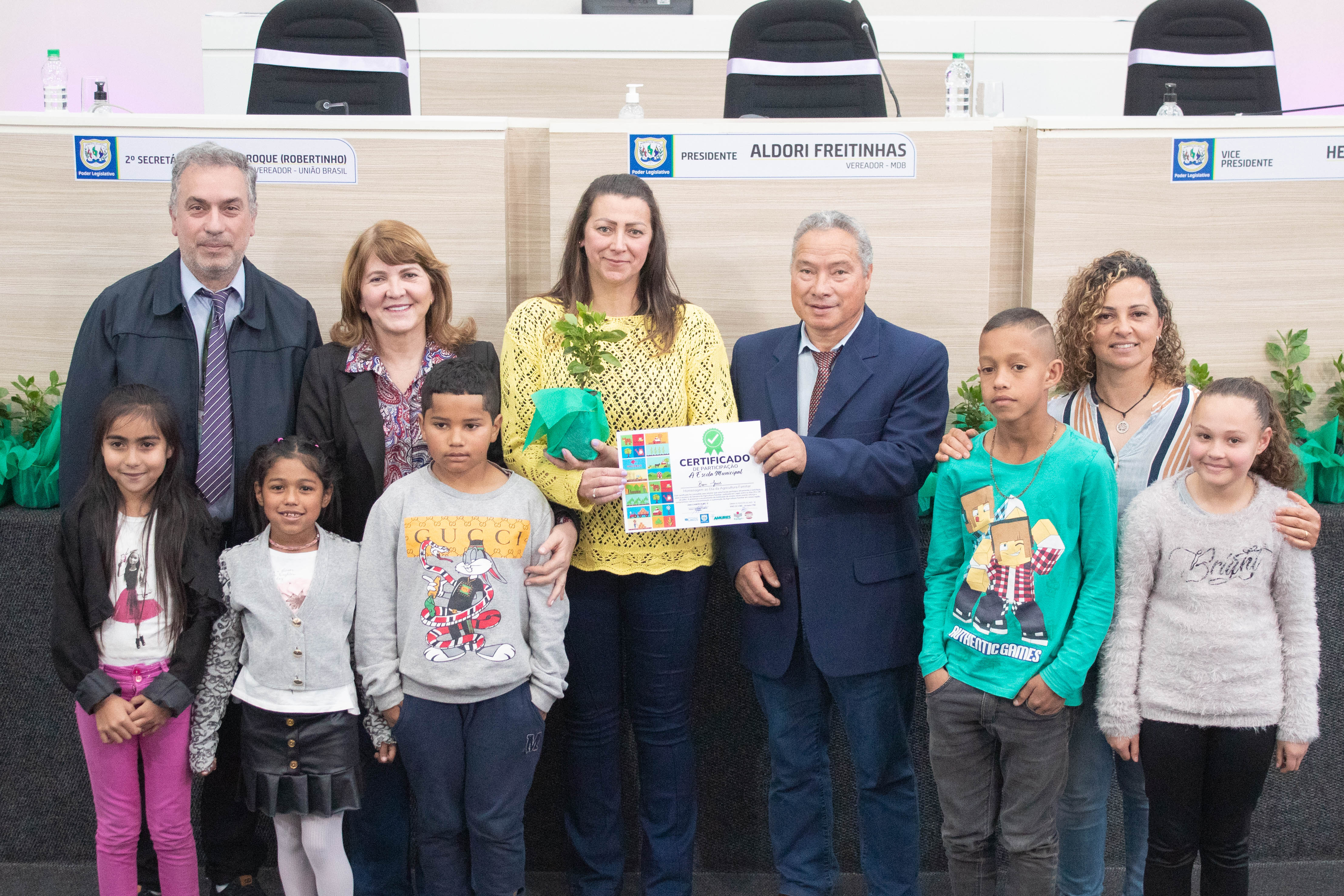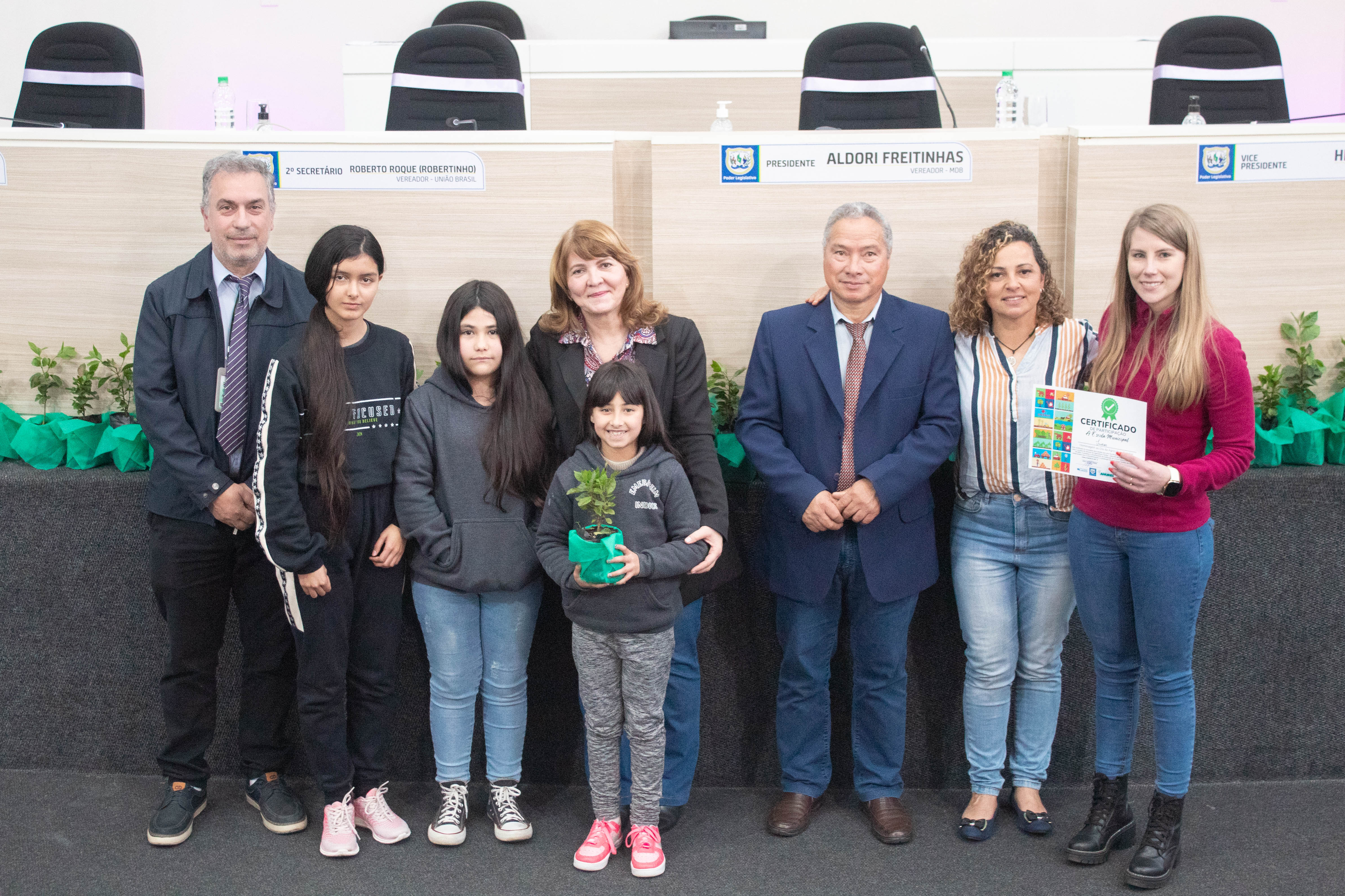 Em cerimônia que aconteceu na tarde de ontem da última quarta-feira (30), estudantes do Sistema Público Municipal de Educação que participaram de concurso referente à Semana da Agricultura Familiar, celebrada no mês de julho, foram homenageados na Câmara de Vereadores. A solenidade aconteceu no plenário do Legislativo Municipal e reuniu estudantes, diretoras, professores, vereadores e familiares. A homenagem foi uma iniciativa do vereador Enio do Vime, que presidiu o ato.