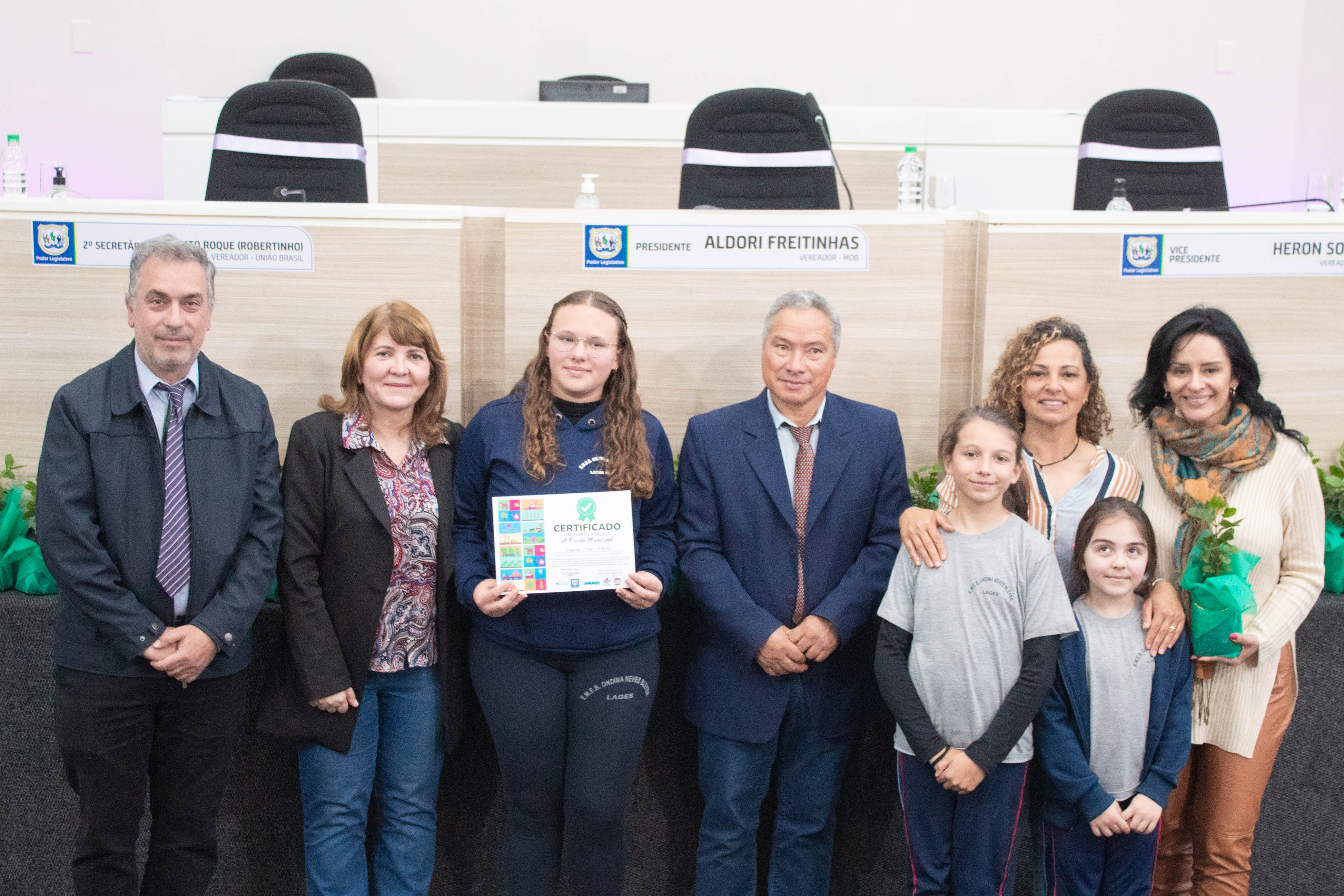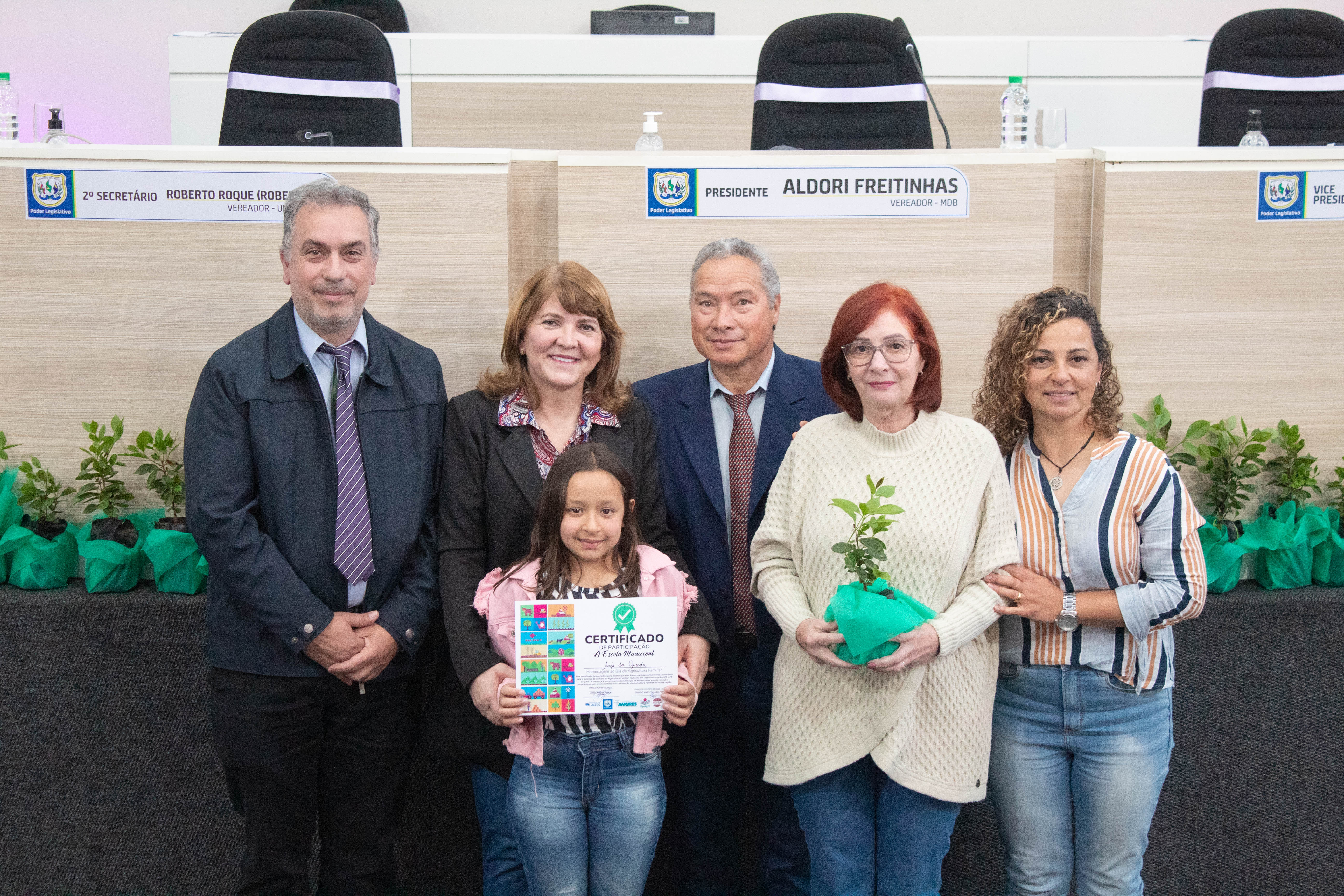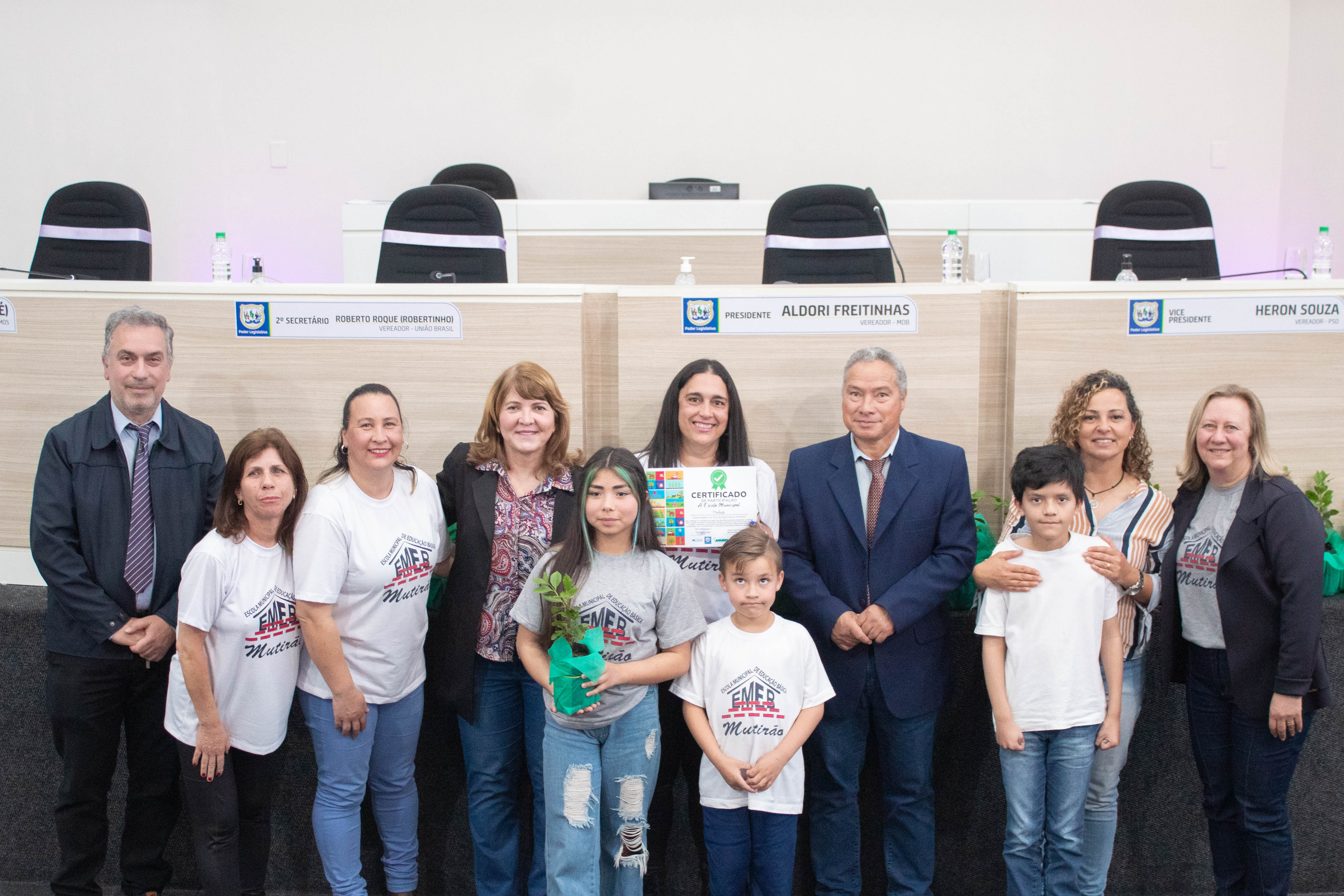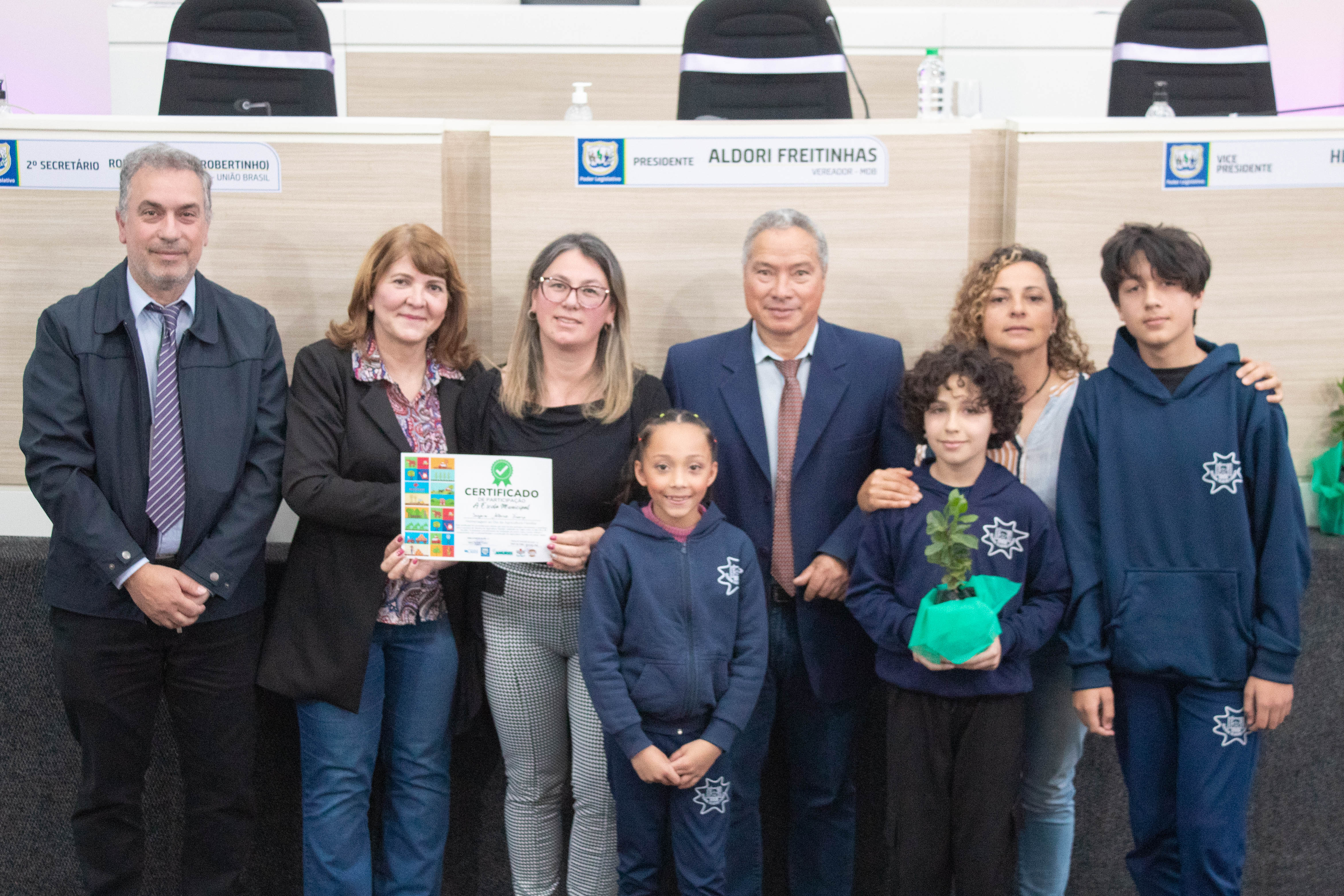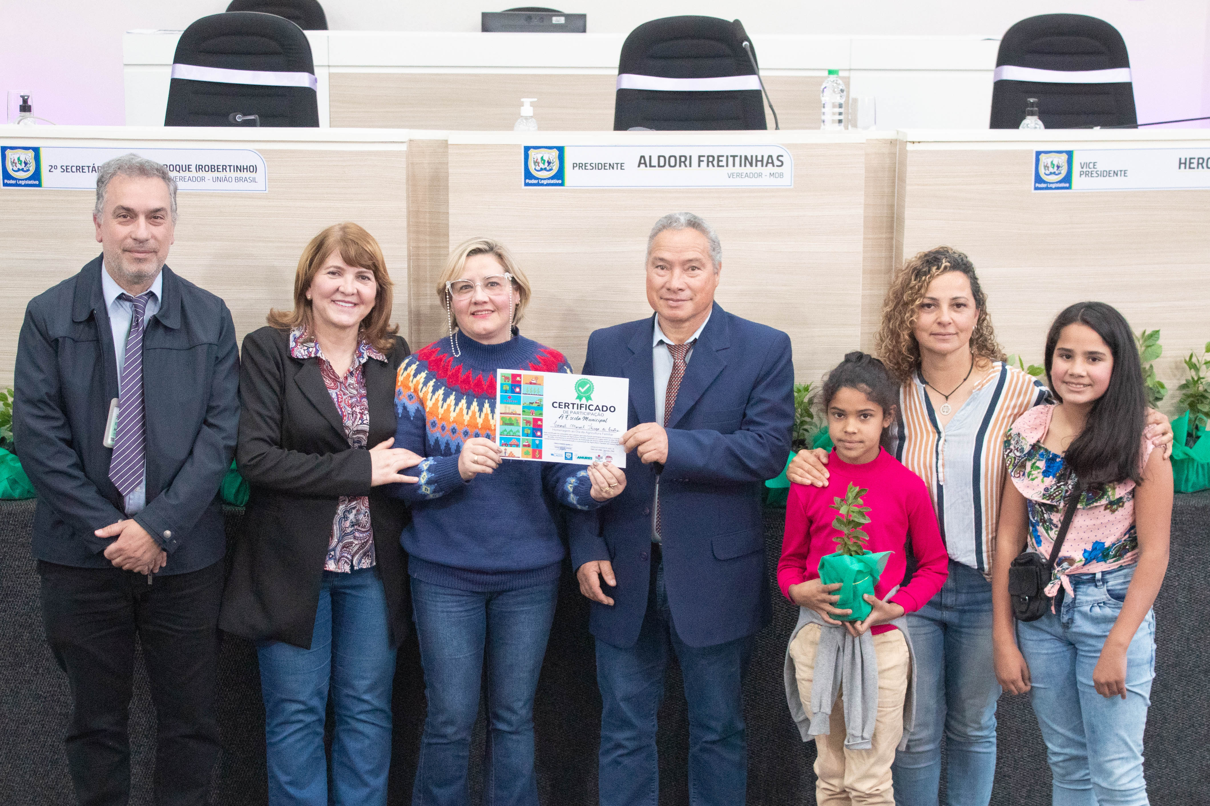 Em cerimônia que aconteceu na tarde de ontem da última quarta-feira (30), estudantes do Sistema Público Municipal de Educação que participaram de concurso referente à Semana da Agricultura Familiar, celebrada no mês de julho, foram homenageados na Câmara de Vereadores. A solenidade aconteceu no plenário do Legislativo Municipal e reuniu estudantes, diretoras, professores, vereadores e familiares. A homenagem foi uma iniciativa do vereador Enio do Vime, que presidiu o ato.