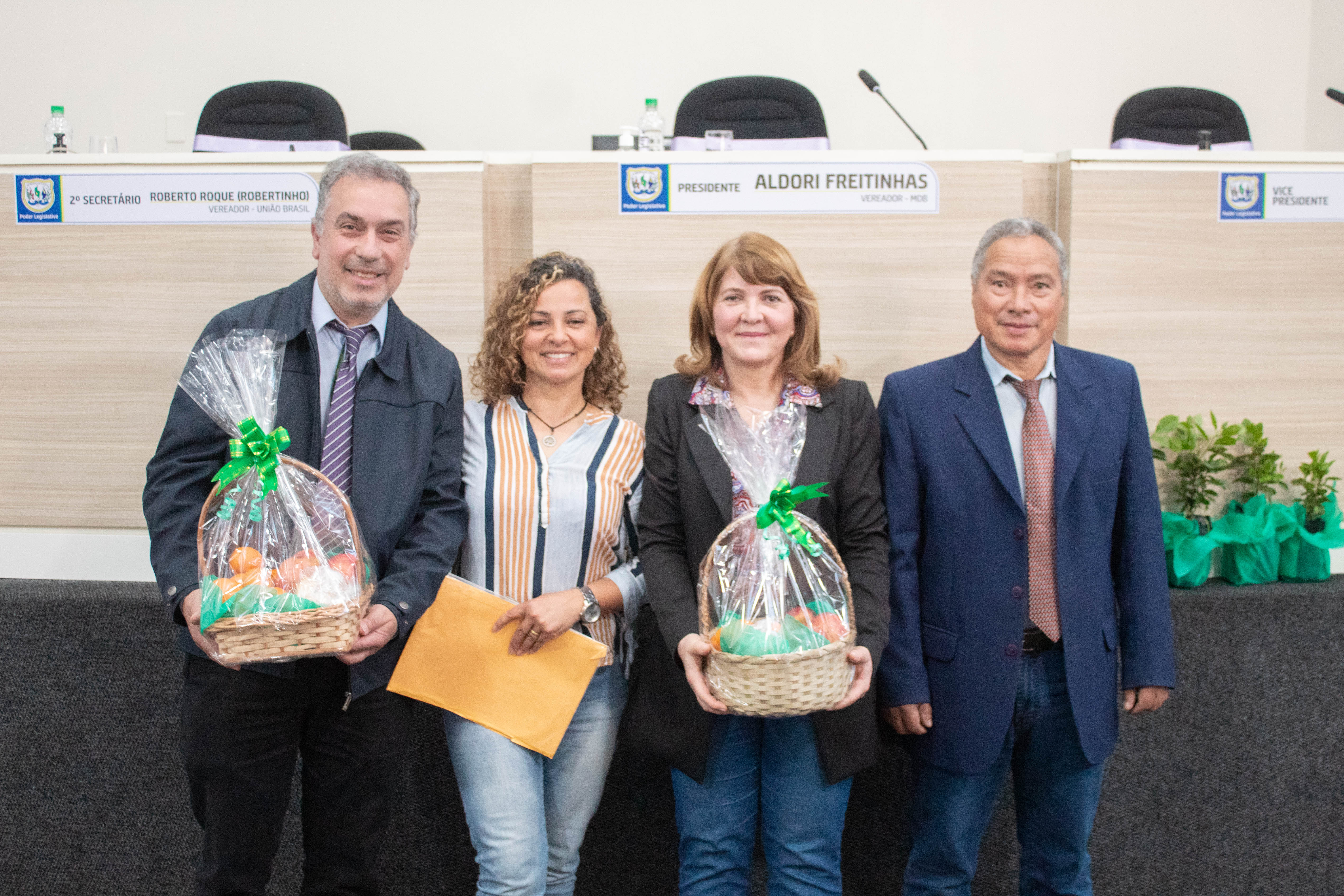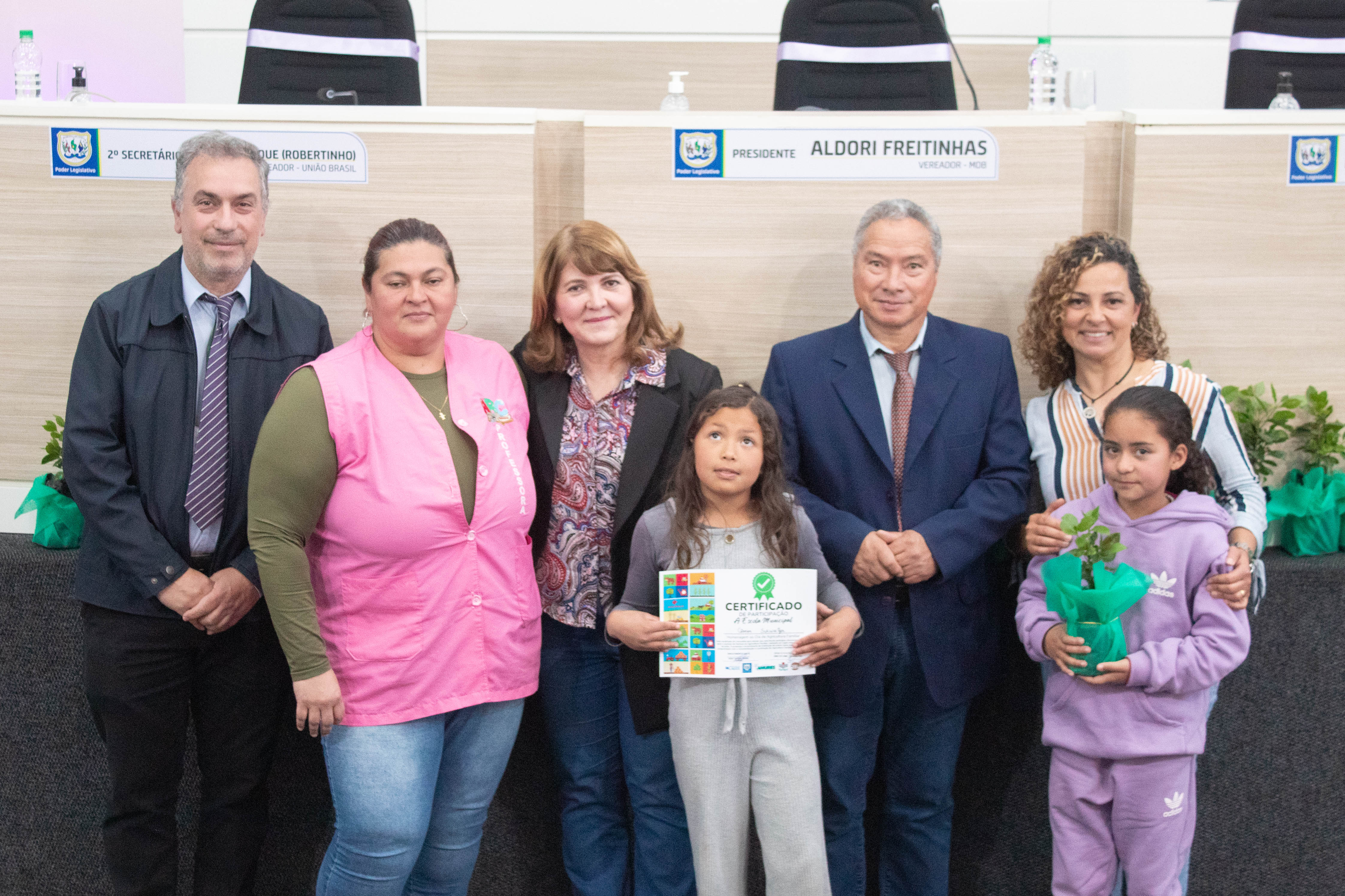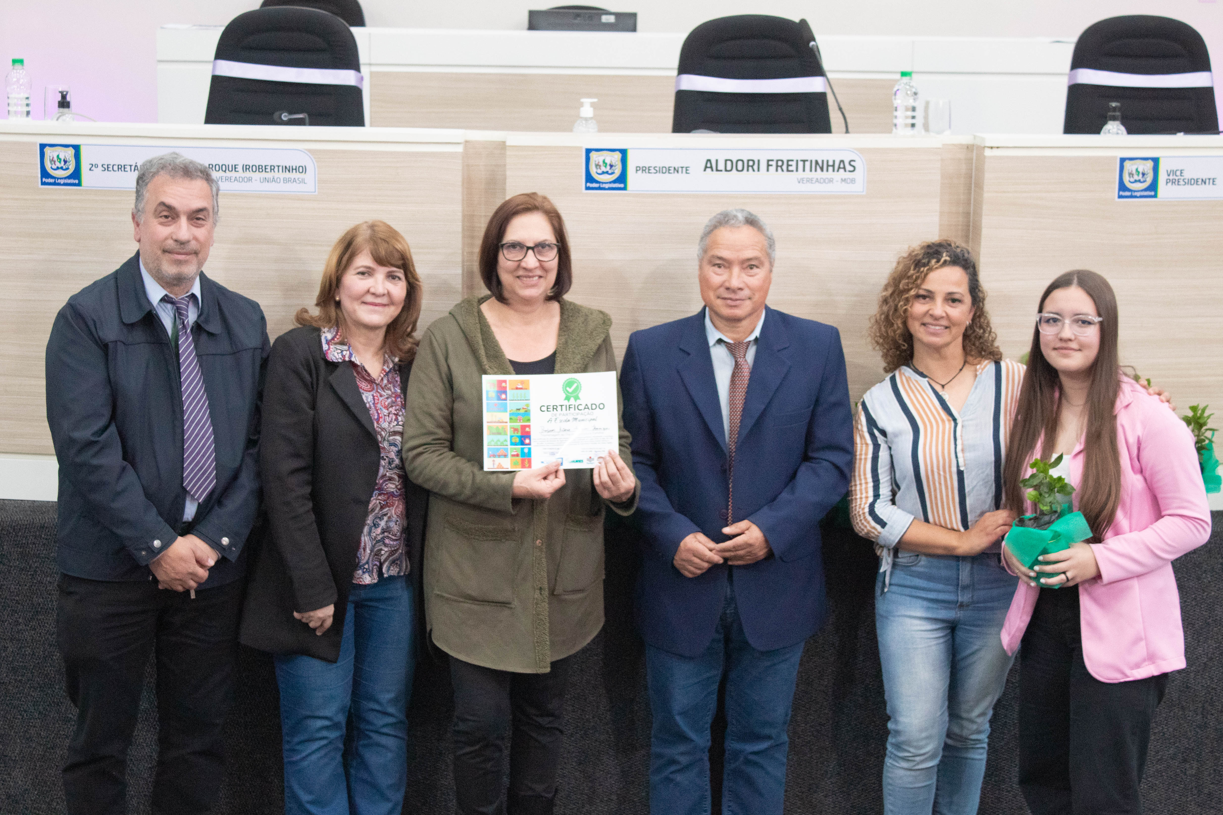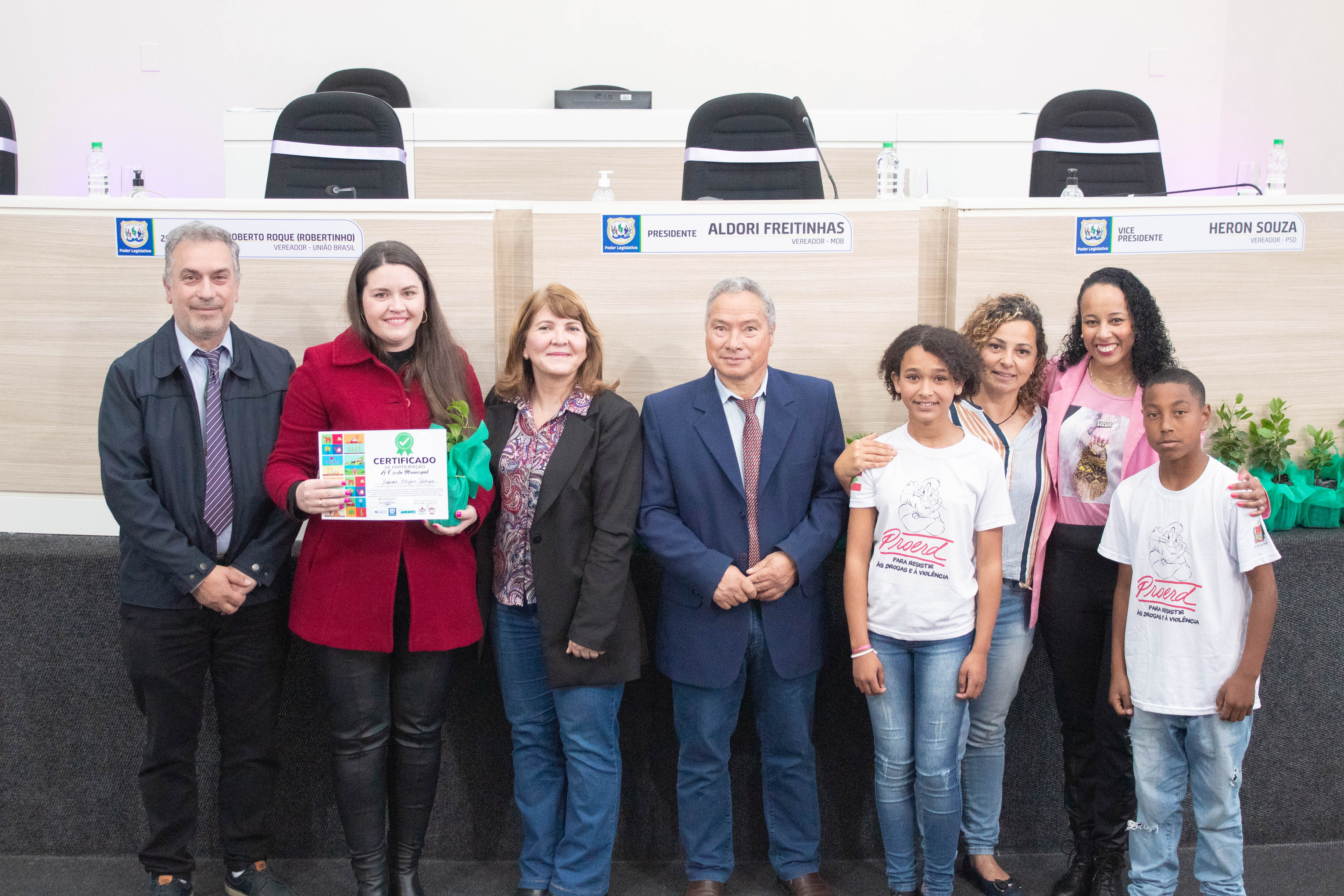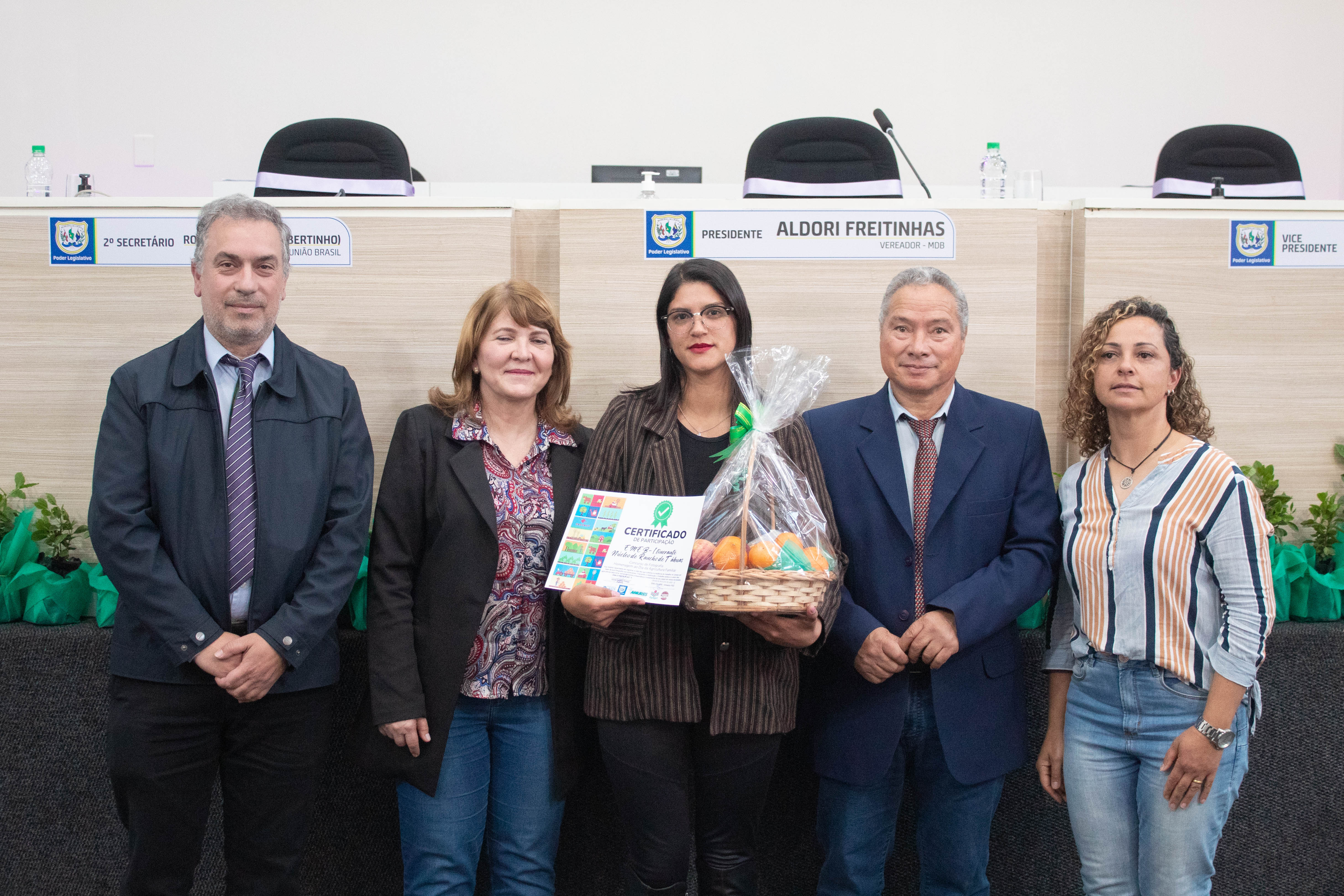 Em cerimônia que aconteceu na tarde de ontem da última quarta-feira (30), estudantes do Sistema Público Municipal de Educação que participaram de concurso referente à Semana da Agricultura Familiar, celebrada no mês de julho, foram homenageados na Câmara de Vereadores. A solenidade aconteceu no plenário do Legislativo Municipal e reuniu estudantes, diretoras, professores, vereadores e familiares. A homenagem foi uma iniciativa do vereador Enio do Vime, que presidiu o ato.