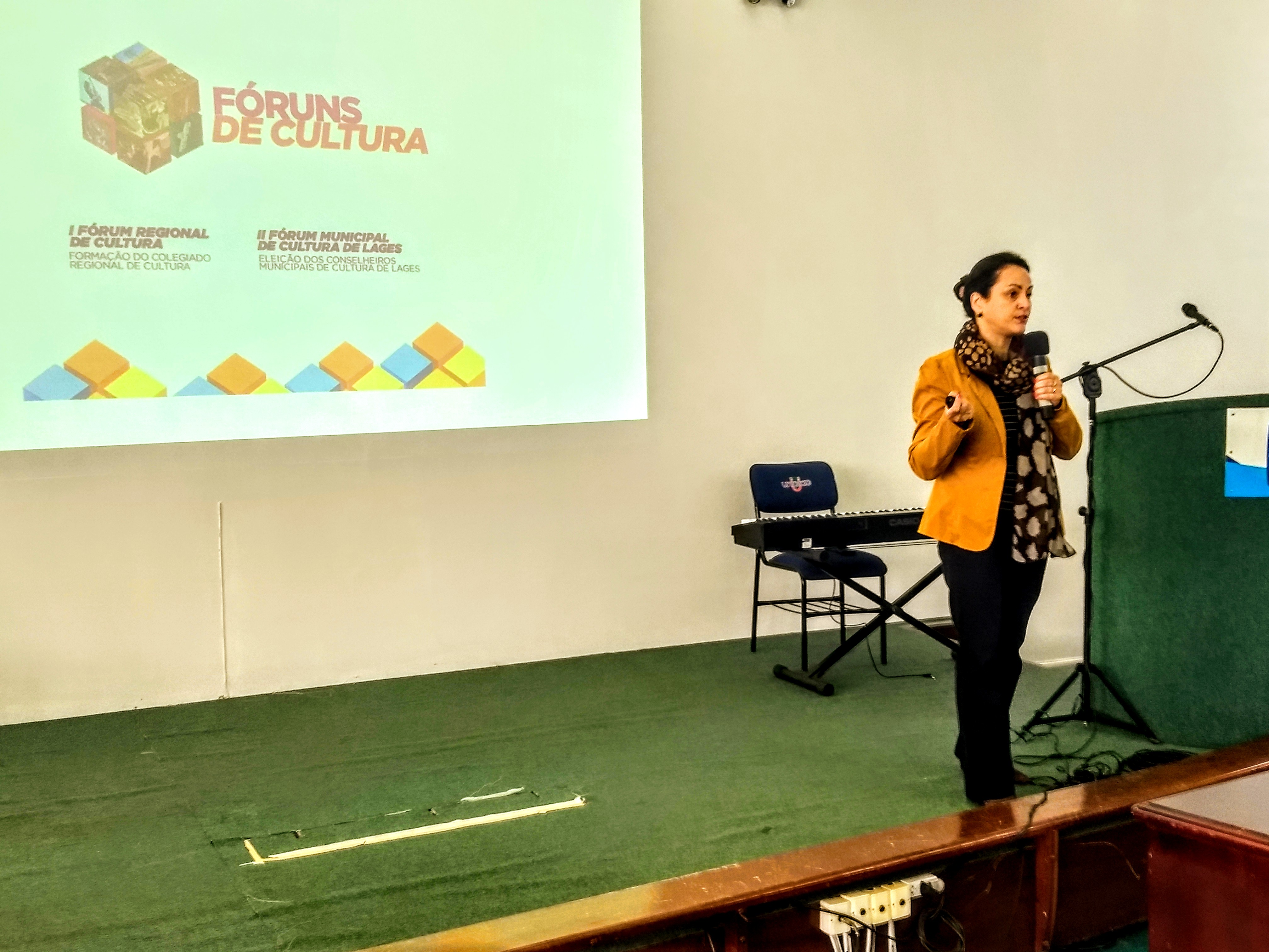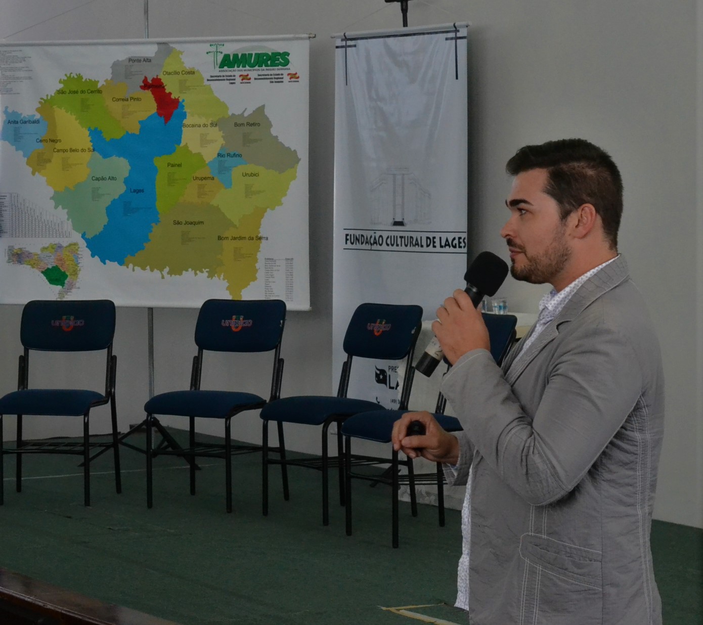 No período vespertino, Marcos Montagna, presidente do Conselho dos Gestores Municipais de Cultura de Santa Catarina (CONGESC), falou para os agentes culturais de Lages sobre a gestão de cultura da cidade de Navegantes onde é superintendente de cultura. Após, produtores e fomentadores de cultura reuniram-se em seus setores para as eleições dos novos conselheiros municipais de políticas culturais de Lages.
