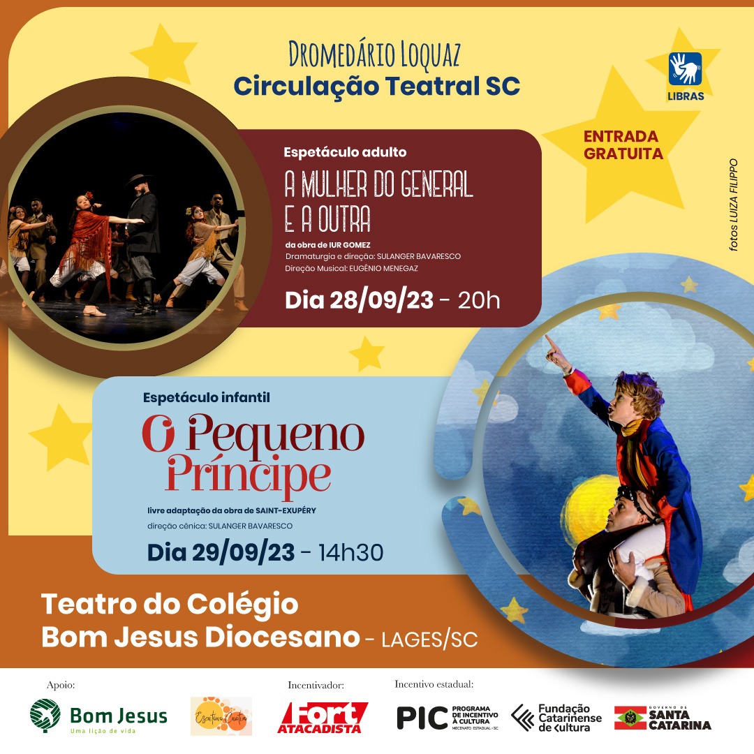 O quê? Espetáculos teatrais “A Mulher do General e a Outra” (tema adulto) e “O Pequeno Príncipe” (infanto-juvenil) com Grupo O Dromedário Loquaz;
