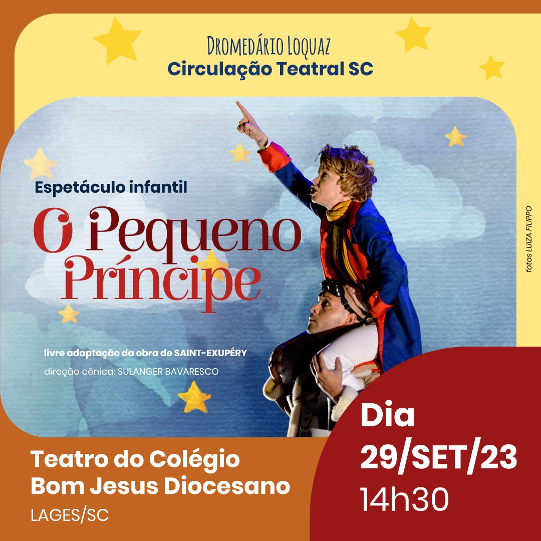Para o público infantil, o Dromedário traz o clássico e uma linda versão do grupo para “O Pequeno Príncipe”, peça infanto-juvenil, com uma linguagem poética e metafórica em uma jornada pelo autoconhecimento na tarde de sexta-feira (29) às 14h30. Segundo os organizadores, existem poucos ingressos para o espetáculo “O Pequeno Príncipe”, e devem ser retirados em até uma hora antes da apresentação no local.