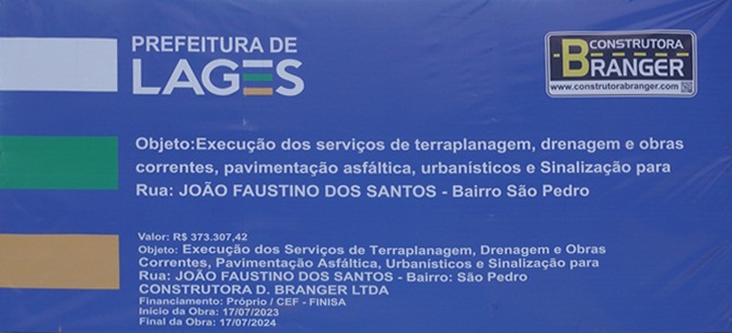A ordem de serviço foi assinada no dia 17 de julho e, conforme a licitação pública, a empresa Branger terá a partir desta data 90 dias para conclusão das obras, as quais compreendem drenagem pluvial (em toda a sua extensão) e obras recorrentes; terraplanagem; pavimentação em asfalto (pista de rolamento com oito metros de largura); base para passeios públicos, bem como implantação do sistema de sinalização de trânsito.