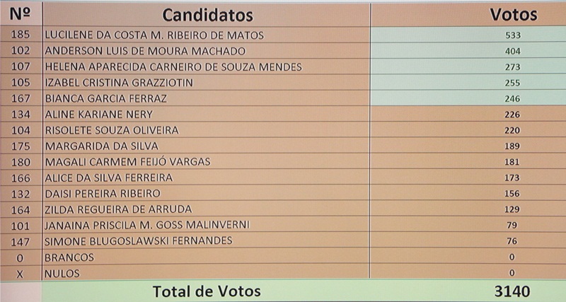 Confira a lista dos eleitos de acordo com o número de votos recebidos: