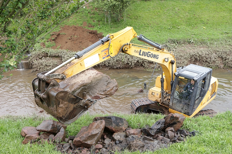 Esse serviço de desobstrução do canal e limpeza das barrancas consiste na retirada do acúmulo de terras e das pedras que ficaram no leito do rio Carahá, nos trechos onde foi feita detonação de rochas quando da abertura do canal na década de 2000.