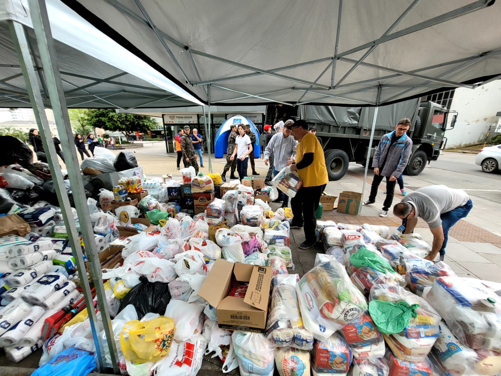 Em nível local, donativos foram imediatamente arrecadados diretamente pela Defesa Civil, Secretaria de Assistência Social e Secretaria de Desenvolvimento Econômico, e com colaboração de entidades e instituições, entre elas a ACIL, CDL e Uniplac. Esses donativos serão agora distribuídos às famílias cadastradas.