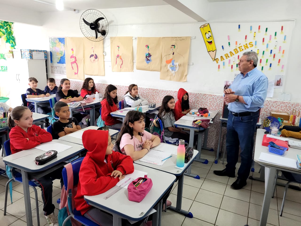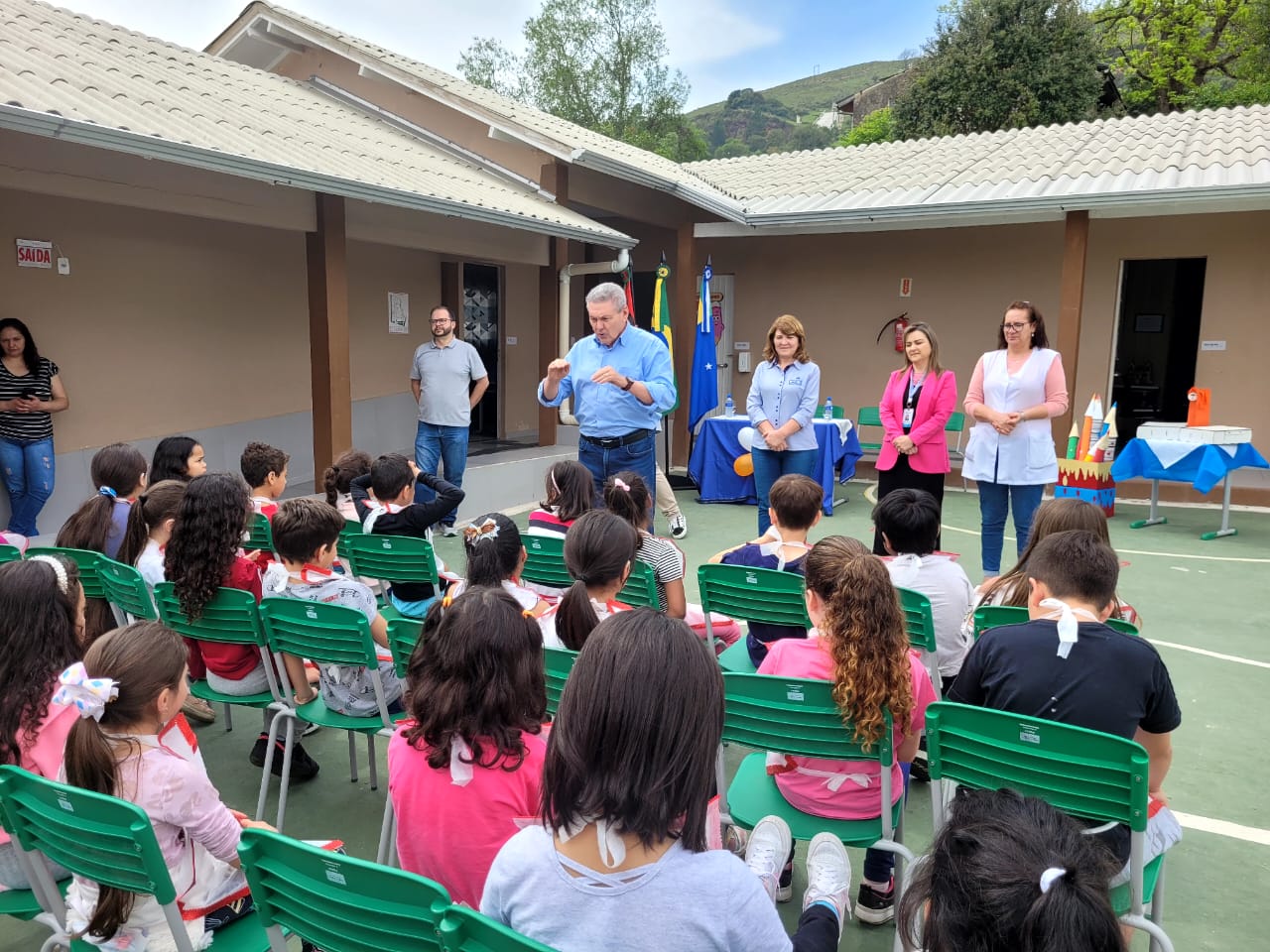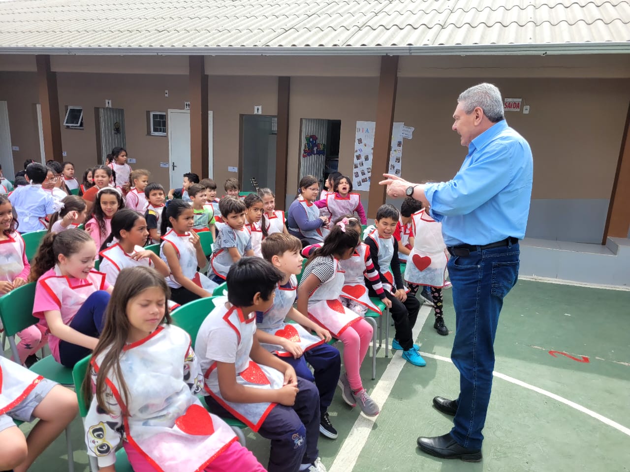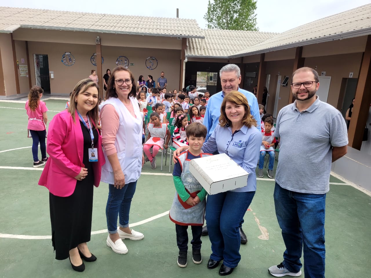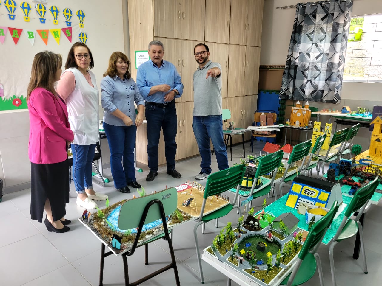 Em agradecimento, os alunos prepararam uma apresentação musical e entregaram lembranças ao prefeito e toda a equipe. Também mostraram maquetes produzidas como trabalhos sobre educação fiscal, representando patrimônios públicos e históricos de Lages.