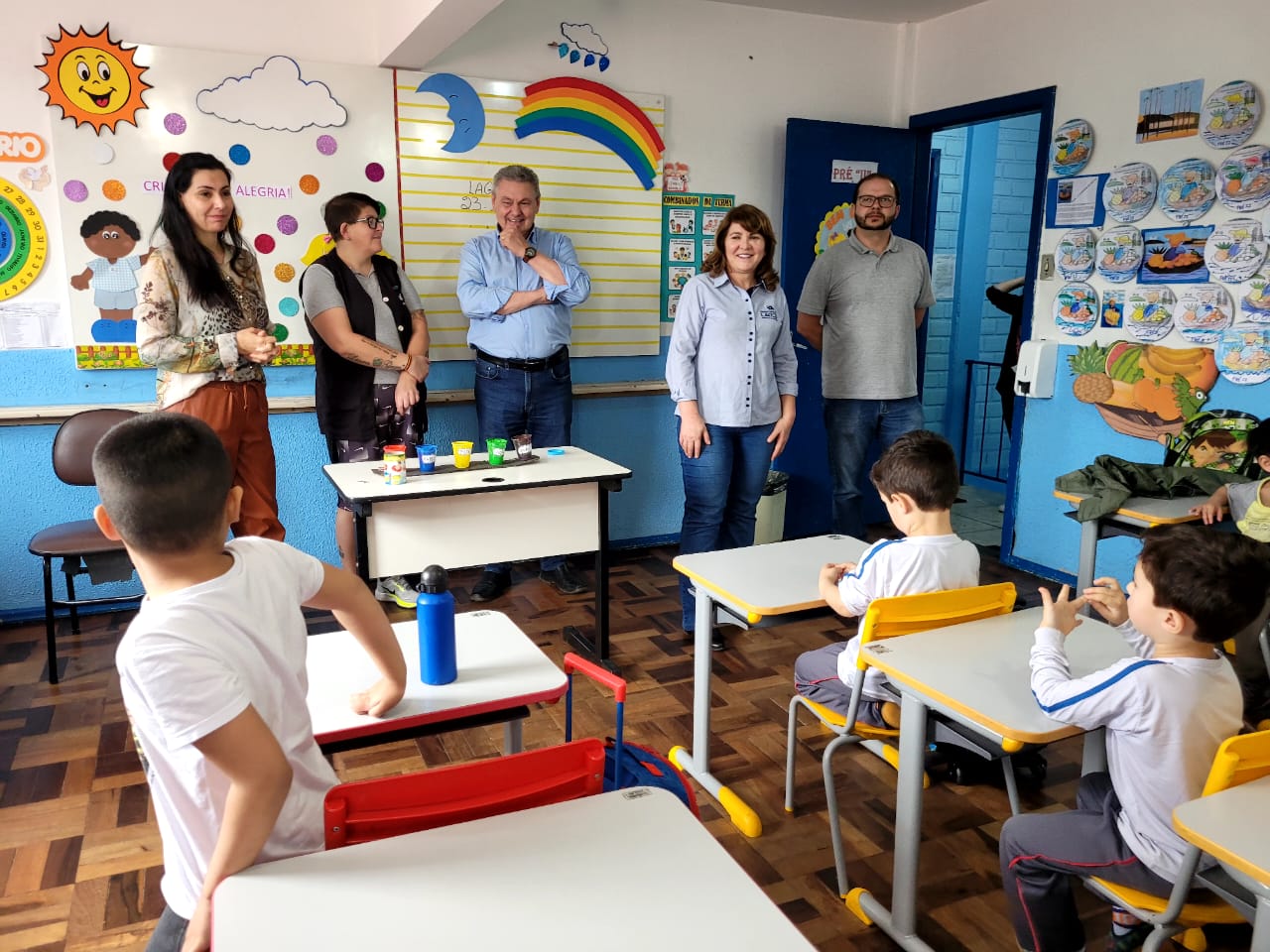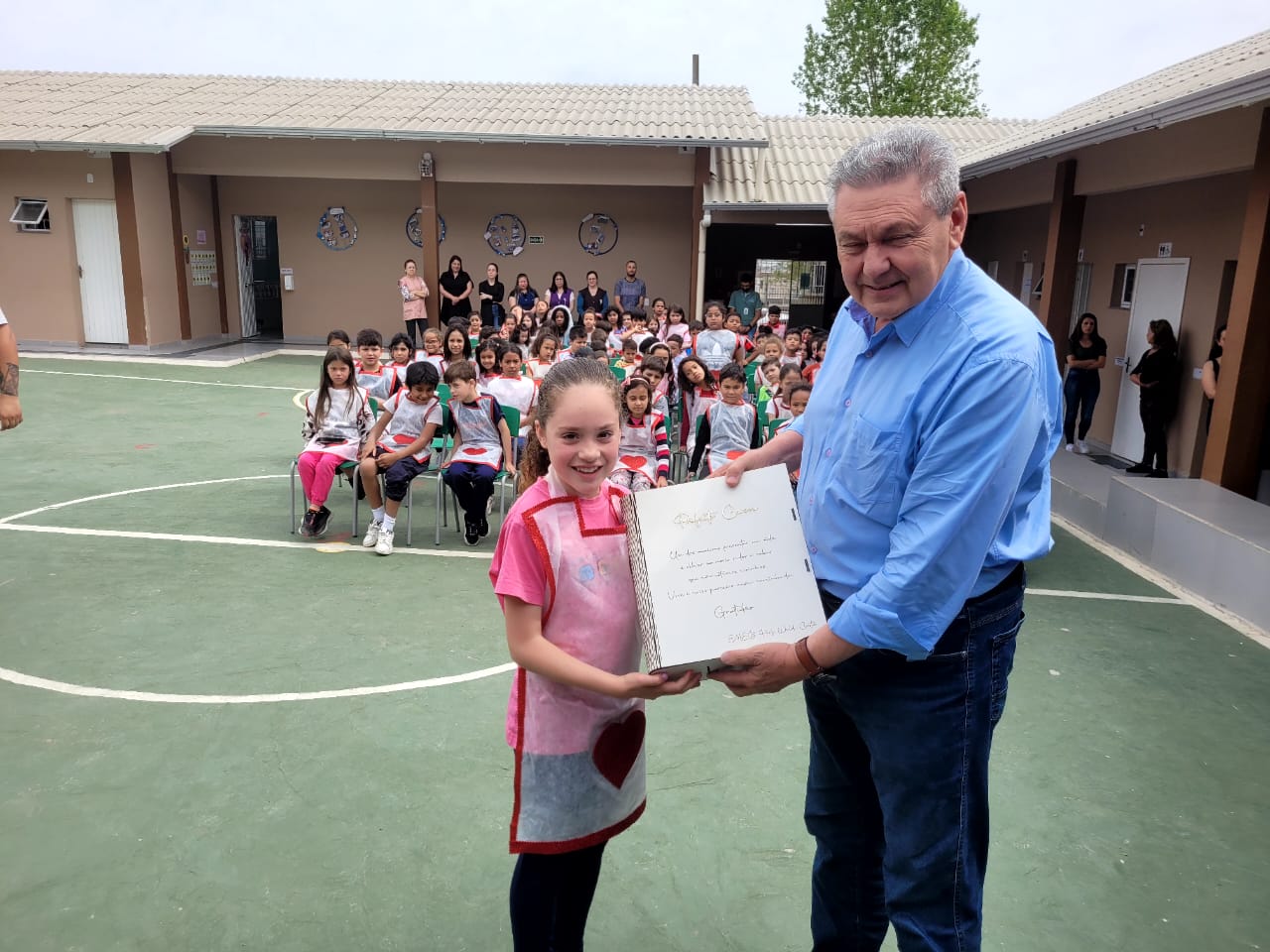 A primeira entrega foi para a comunidade escolar da Escola Municipal de Educação Básica Prefeito Waldo Costa, localizada na rua Irmã Erotides, no bairro Vila Nova. A escola atende crianças e estudantes na educação infantil e ensino fundamental e conta com 148 alunos matriculados em período integral. “Estamos muito felizes em poder entregar escolas renovadas, mais bonitas e aconchegantes para nossos alunos e professores. Que sejam ambientes de muito conhecimento e desenvolvimento”, comenta o prefeito Antonio Ceron.