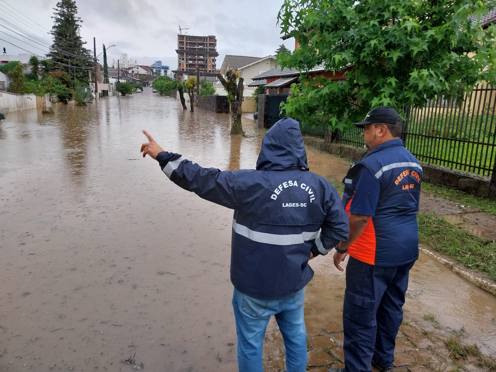Defesa Civil de Lages atende população atingida por alagamentos após forte chuva desta segunda-feira