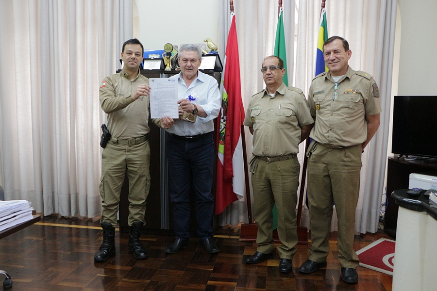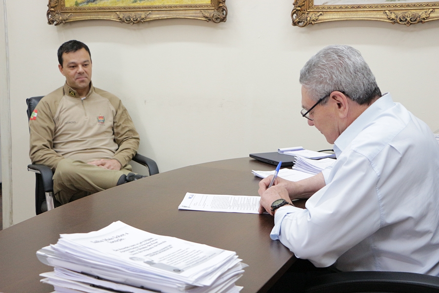 O prefeito Antonio Ceron assinou, na manhã desta quarta-feira (1°), documento referente à doação ao Estado de Santa Catarina de terreno localizado no bairro Morro do Posto, na rua Professor Simplício, anexo ao Colégio Policial Militar Feliciano Nunes Pires. A doação tem por finalidade a ampliação da área que recepcionará novas construções da unidade escolar.