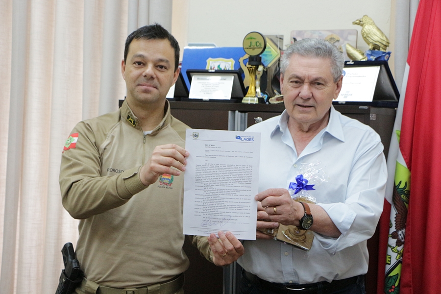 A Lei n° 4694, de 30 de outubro de 2023, foi aprovada pelo executivo e também passou pela Câmara de Vereadores de Lages. O documento foi entregue ao diretor do colégio, Major Pedroso, acompanhado pelos subtenentes Mota e Irineu. A próxima etapa da doação é passar pelo Governo do Estado e pela Assembleia Legislativa.