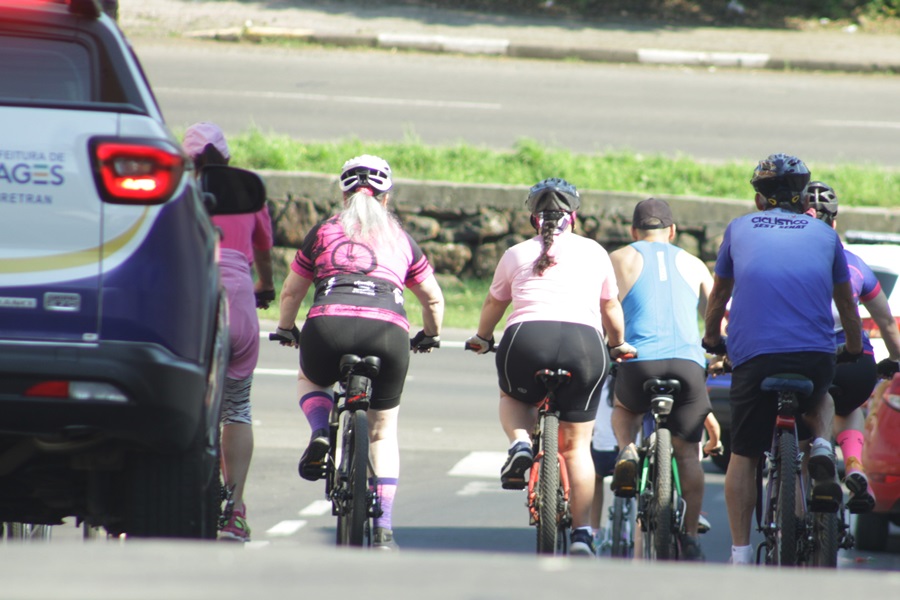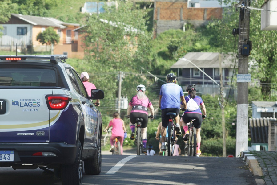 Com céu azul, Sol escaldante e temperaturas próximas a 30ºC, o domingo (12), foi receptivo ao passeio Pedal da Prevenção, o último episódio da agenda da campanha Outubro Rosa em Lages, promovido pela prefeitura, por intermédio da Secretaria do Desenvolvimento Econômico e Turismo e Diretoria de Trânsito (Diretran), e Mercado Público Municipal. O movimento mundial Outubro Rosa, de prevenção ao câncer de mama, foi transformado em diversificadas ações no município, desenvolvidas por instituições públicas e privadas, parceiras na causa pela vida.