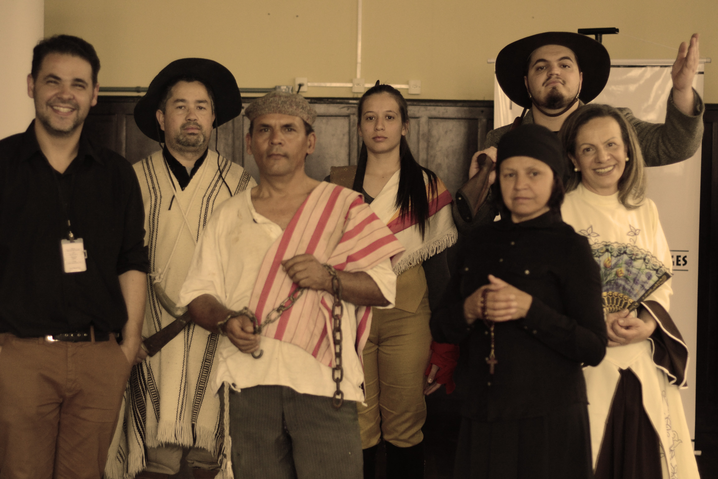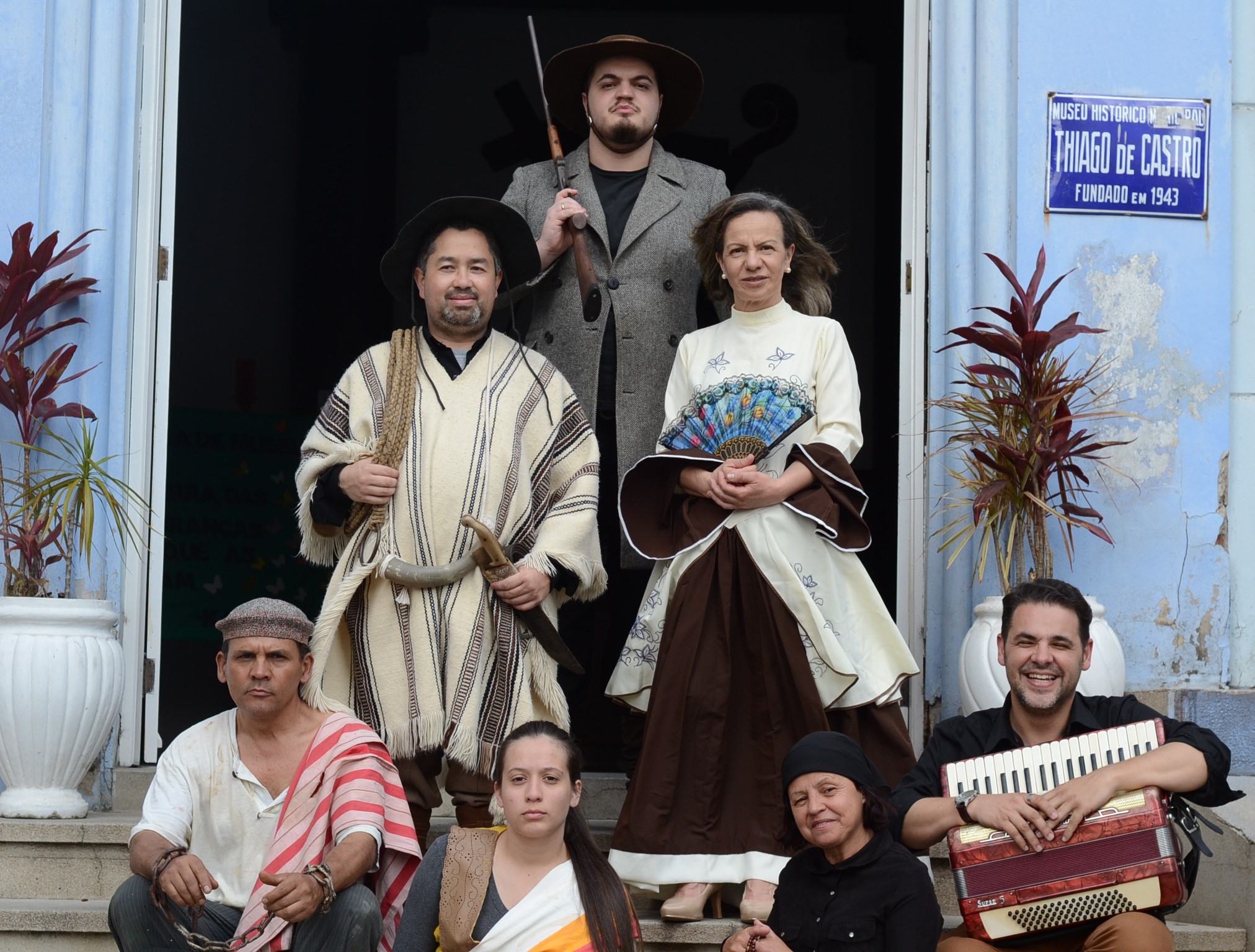 A ideia desse time surgiu no início do ano na elaboração de conteúdo para a Semana de Museus – que também é promovida pelo Ibram. A proposta era criar vida para personagens da história de Lages que estavam, até então, inanimados nos acervos bibliográficos e fotográficos dos museus da cidade. De forma simples, mas cheia de criatividade, a peça “Descobertas no Museu”, através de seus servidores e pesquisadores voluntários mostra para o público Antonio Correia Pinto de Macedo e o seu capataz, Baselissa Alves de Brito (a doadora de um dos sinos da catedral), Anita Garibaldi, e os escravizados e benzedores Tio Banga (Pai João) e Dona Euzébia, a mulher centenária que trazia a pé de São José do Cerrito para Lages, um cesto na cabeça cheio de frutas e verduras.
