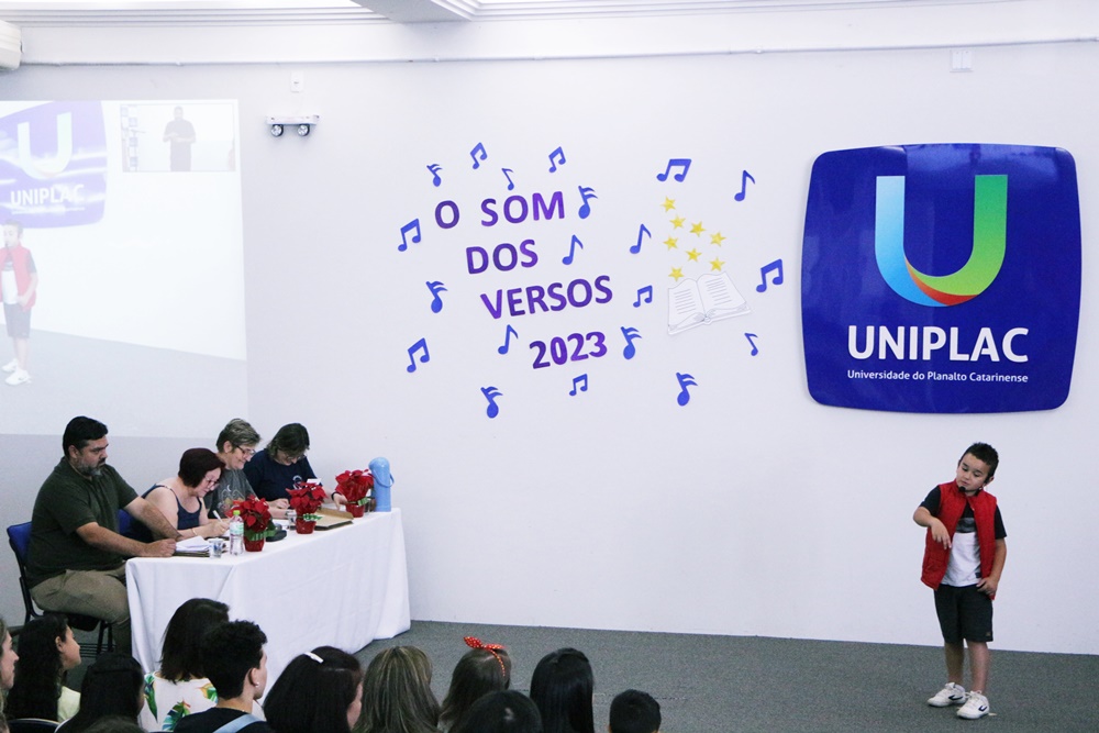Com o objetivo de promover o contato com o gênero textual poema, incentivar a prática da leitura e escrita, ampliar o vocabulário, oportunizar a confiança na oralidade e auxiliar na autoestima, a Prefeitura de Lages, por meio da Secretaria Municipal da Educação, realizou o concurso de Declamação de Poemas - O Som dos Versos. Esta é a terceira edição do concurso e a etapa final aconteceu na tarde desta sexta-feira (1°), no auditório do Centro de Ciências Jurídicas (CCJ) da Universidade do Planalto Catarinense (Uniplac).