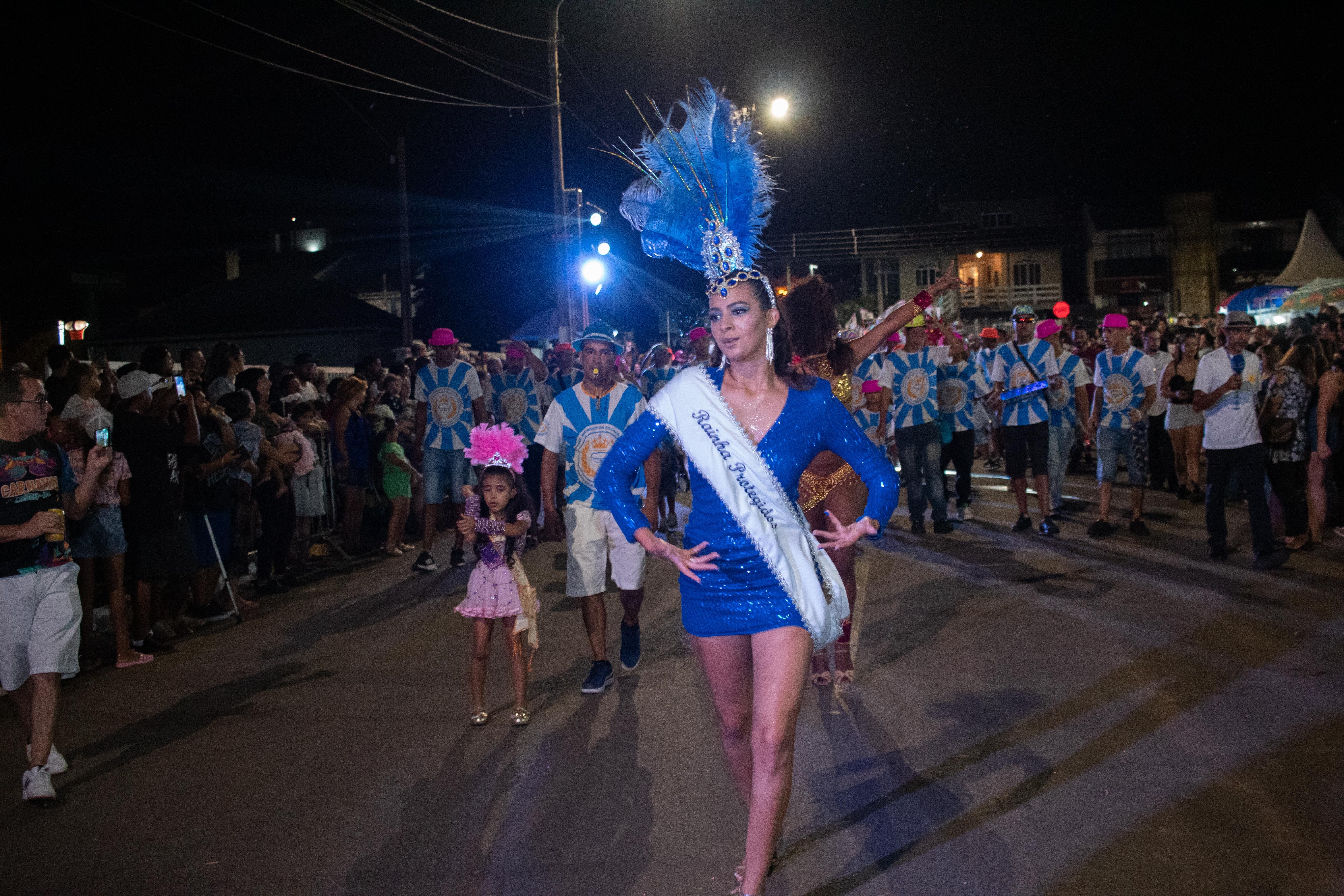 A Escola de Samba Protegidos de São Carlos, que completa 40 anos de história, conta atualmente com 800 pessoas filiadas. No desfile, participou com 150 integrantes, a maioria moradores do bairro Habitação, um dos bairros mais tradicionais no carnaval de Lages.