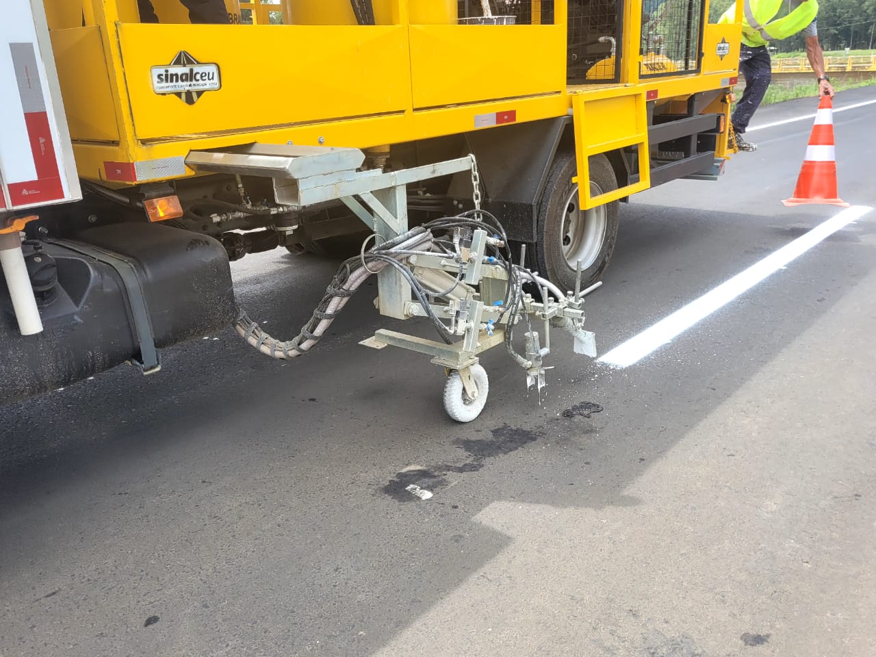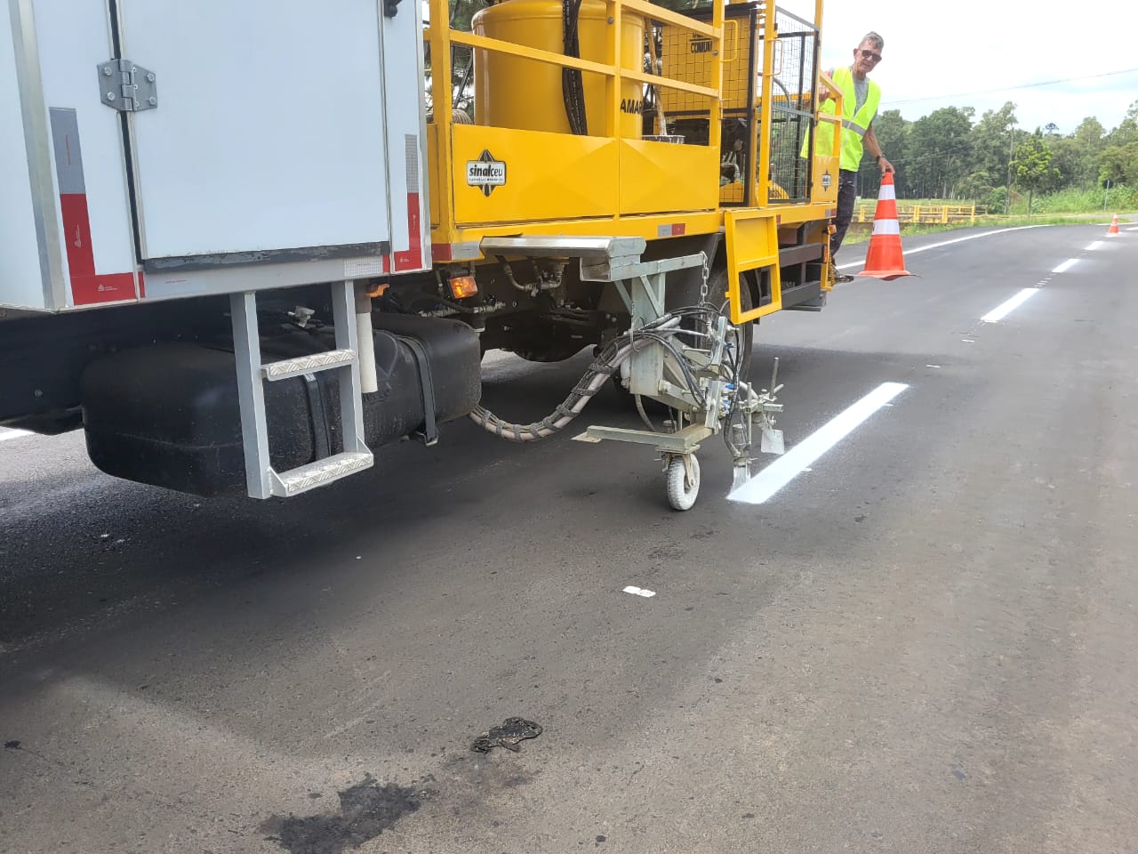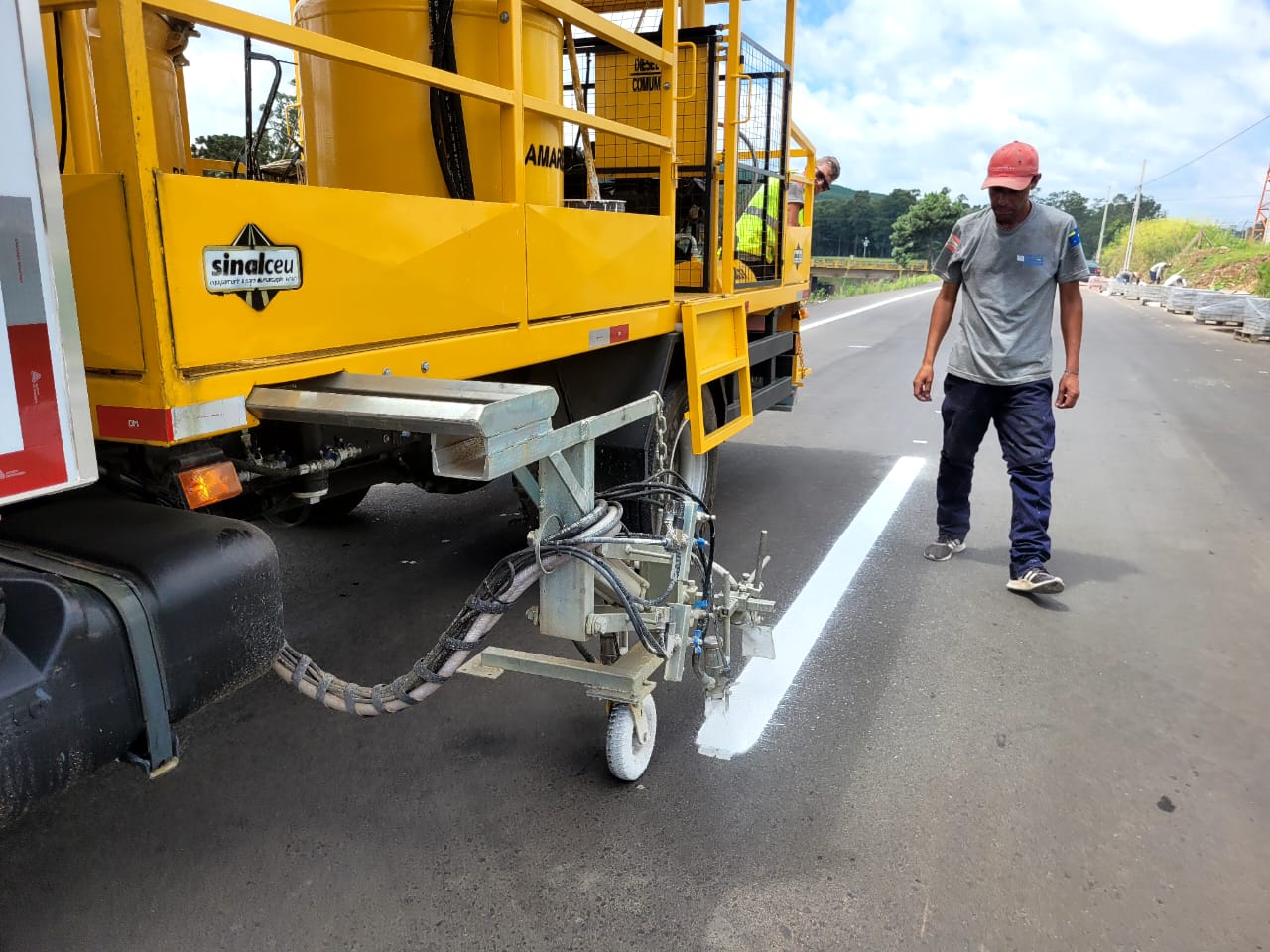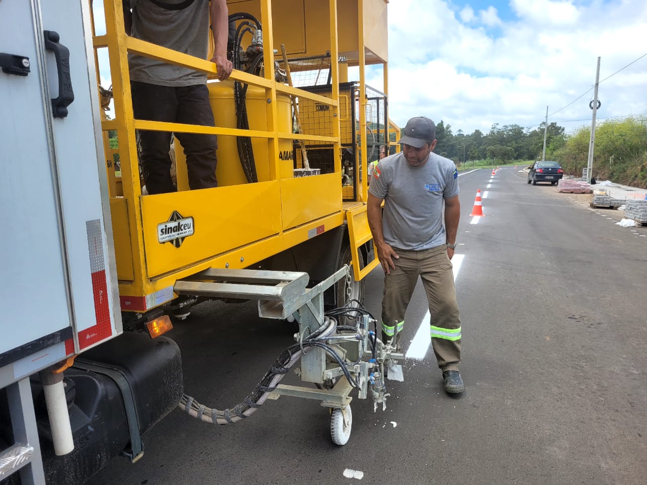 Os trabalhos devem ser prolongados até a próxima semana. Pinturas executadas com caminhão de pintura locado/Consórcio Intermunicipal Serra Catarinense (Cisama), pertencente à empresa Sinalceu Sinalização Viária, de Pinhais (PR).