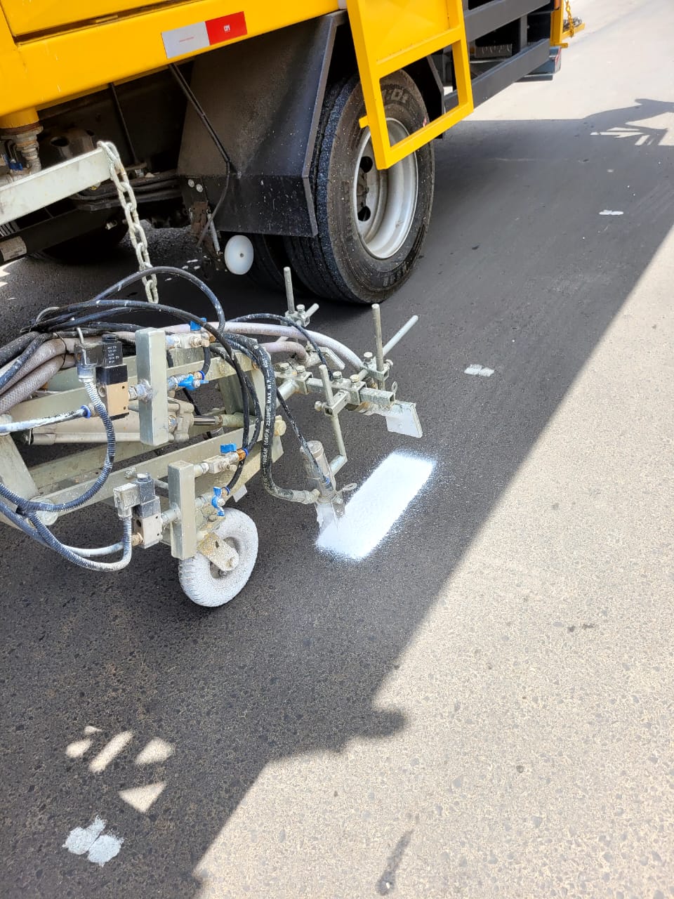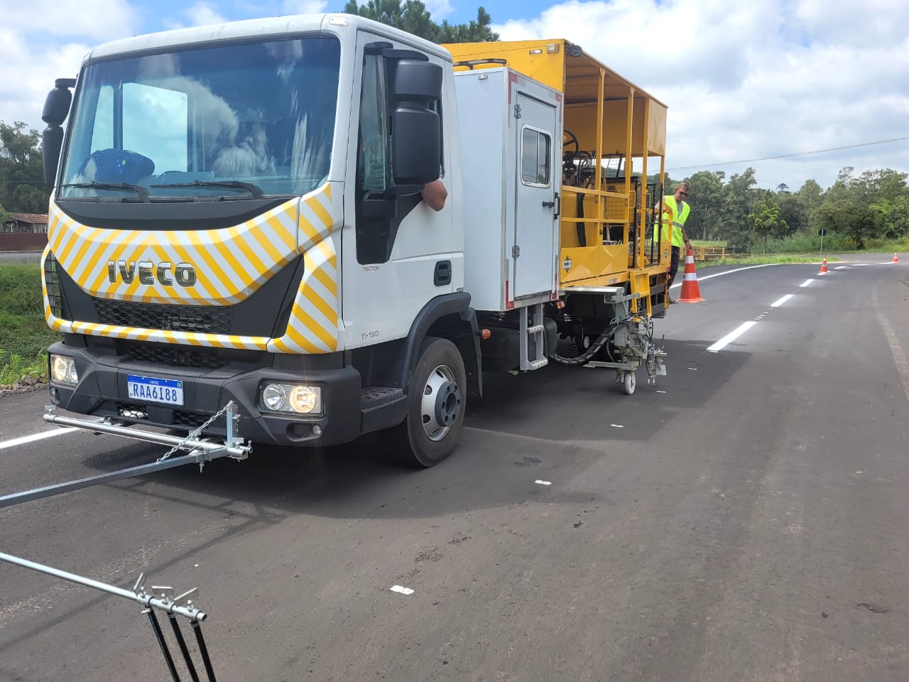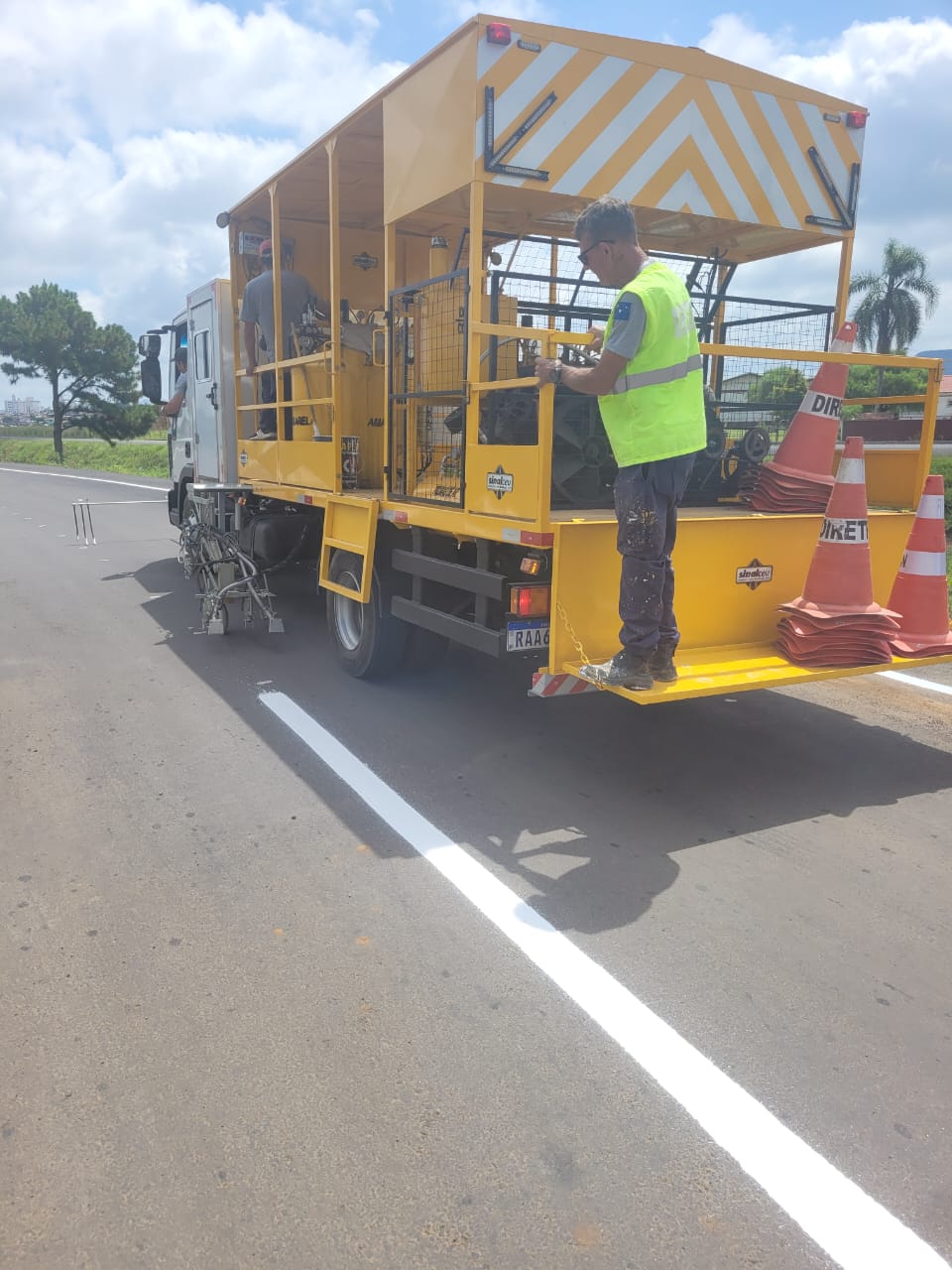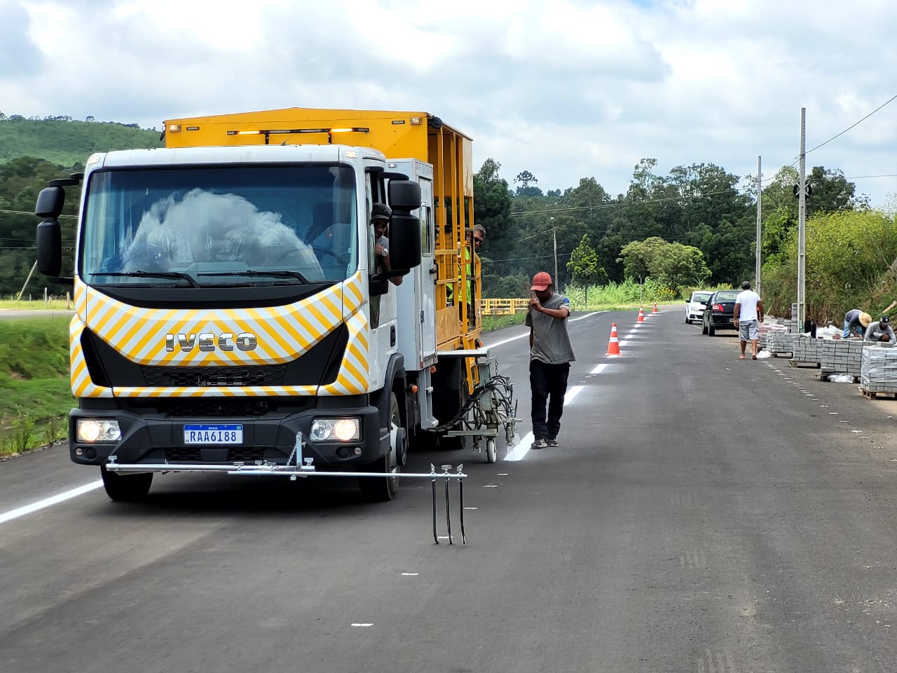 Os trabalhos devem ser prolongados até a próxima semana. Pinturas executadas com caminhão de pintura locado/Consórcio Intermunicipal Serra Catarinense (Cisama), pertencente à empresa Sinalceu Sinalização Viária, de Pinhais (PR).