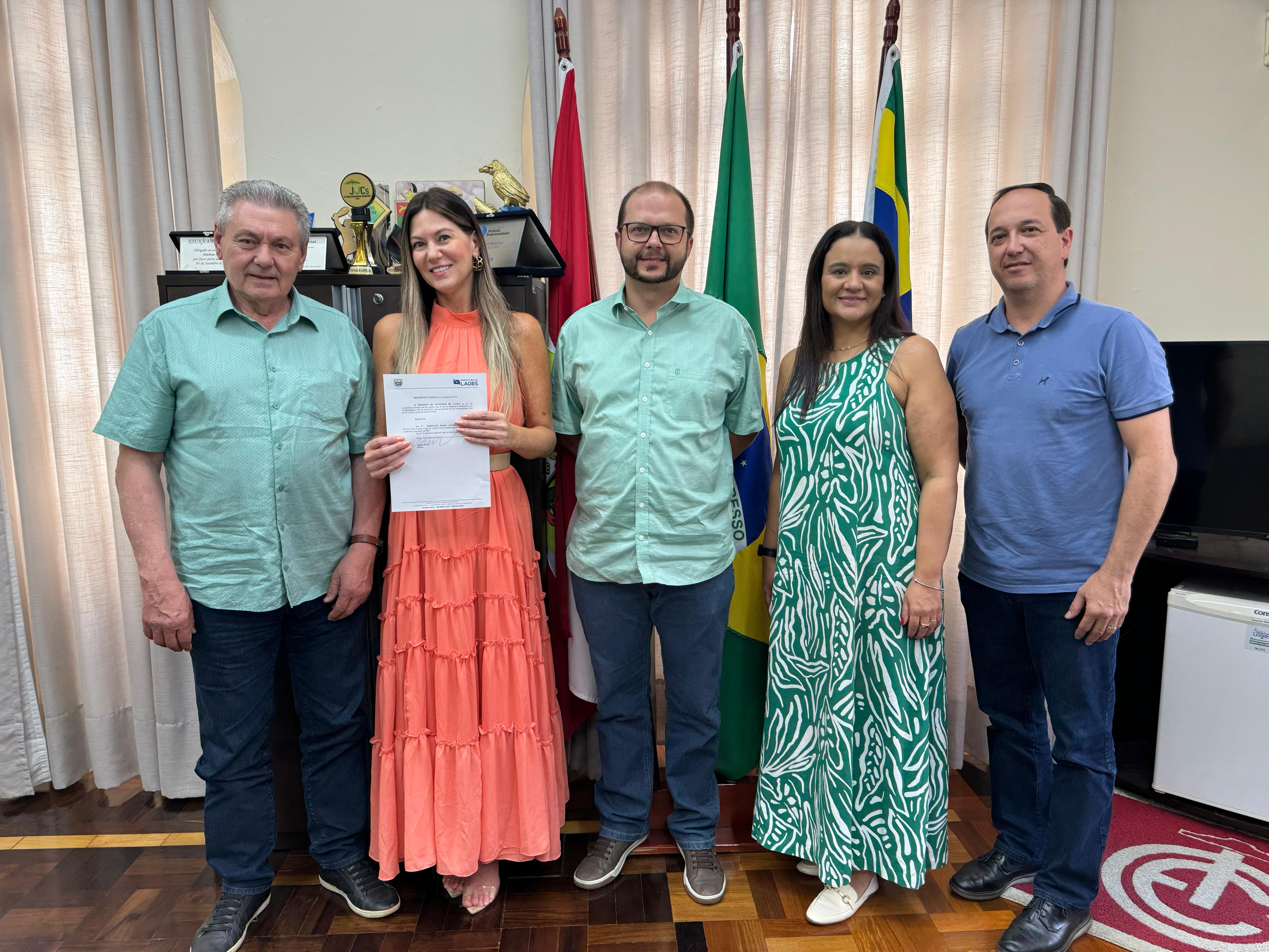 A cerimônia em gabinete foi prestigiada pelo vice-prefeito de Lages, Juliano Polese; o secretário da Administração e Fazenda, Alexandre Martins, e pela procuradora-geral do Município (Progem), Larissa Sandri Wojcik.