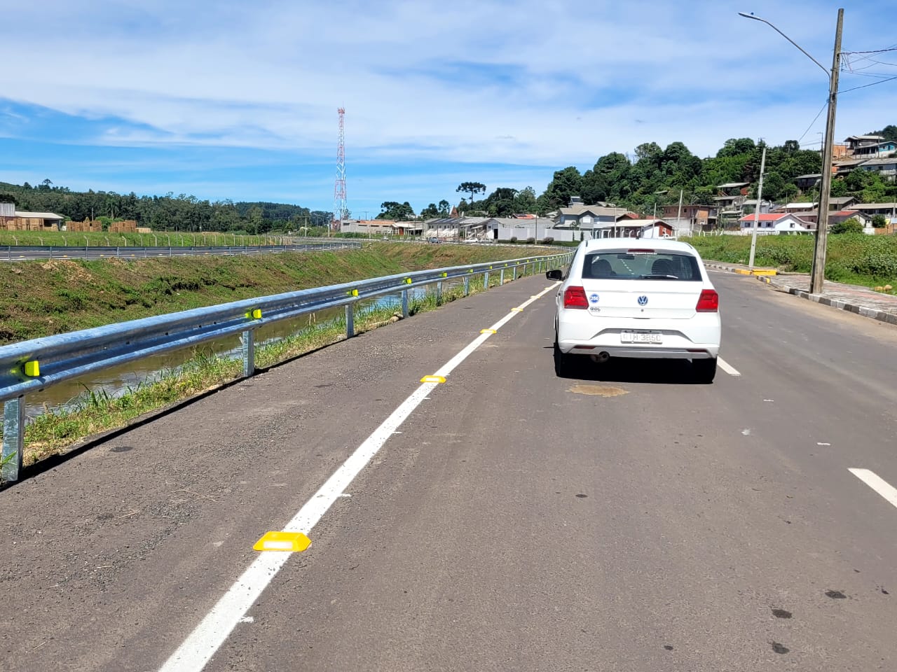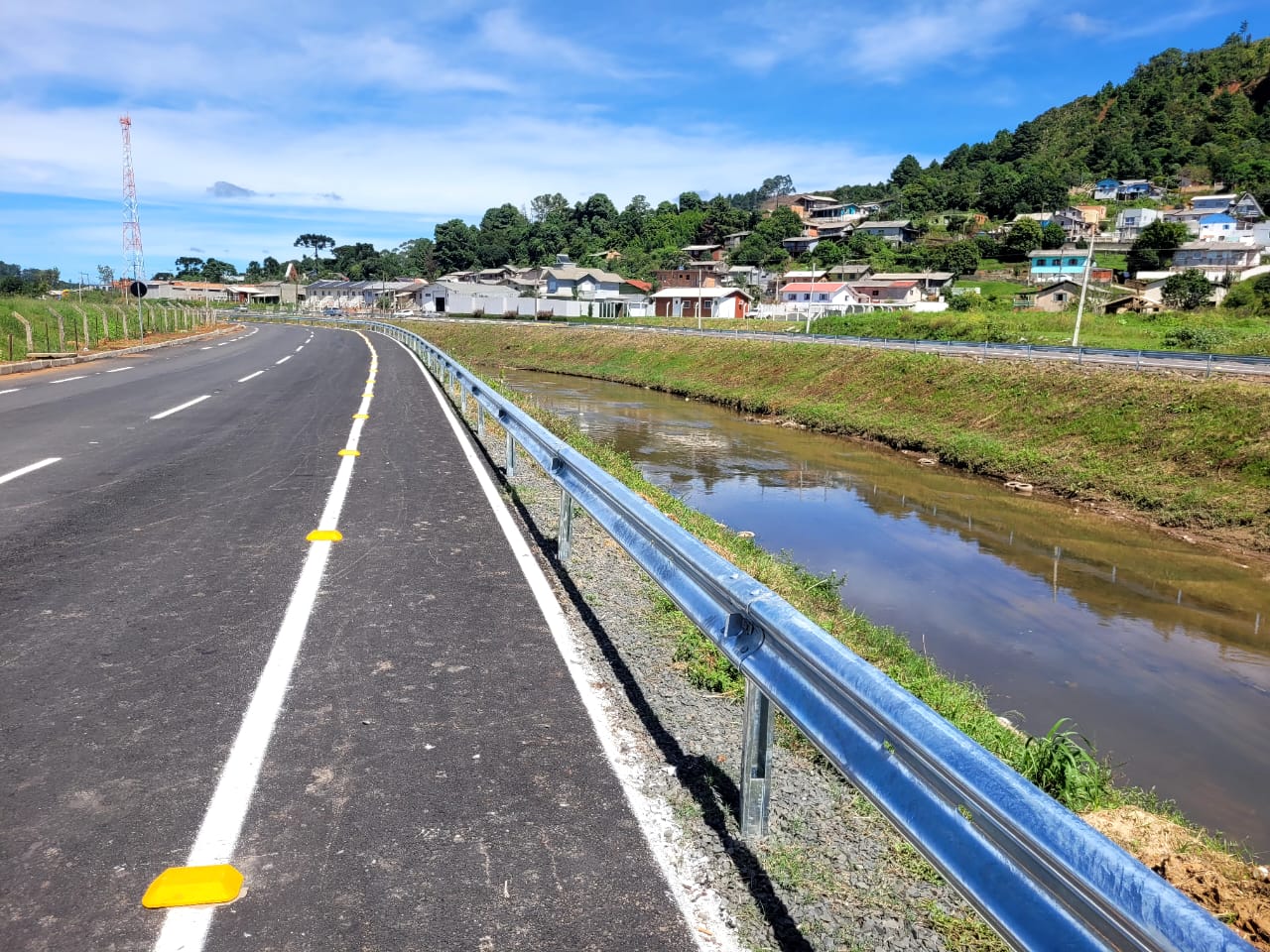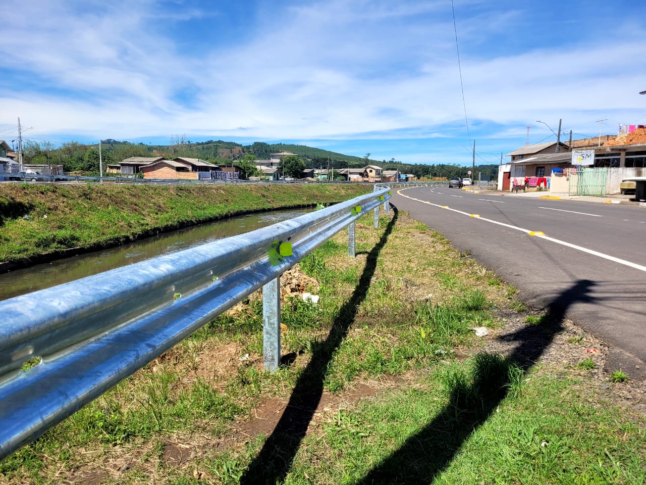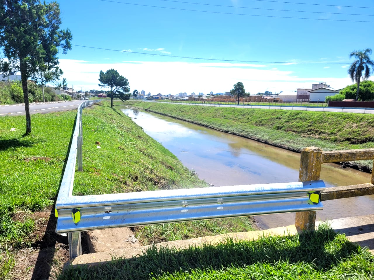Estão finalizados os trabalhos de instalação de defensas metálicas (guard-rails) com faixas sinalizadoras refletivas noturnas às margens do rio Carahá, no trecho da avenida Belizário Ramos entre as pontes de acesso à rua Cirilo Vieira Ramos, situada no bairro Caça e Tiro, e rua Álvaro Neri dos Santos - bairro Habitação, portanto, em uma extensão total de 1.208 metros, assinalados os dois sentidos (ida e volta). O trecho compreende a parte final do rio Carahá, local de desemboque no rio Caveiras, e recebeu as defensas metálicas a partir da aplicação de investimentos de recursos financeiros públicos da própria prefeitura de Lages.