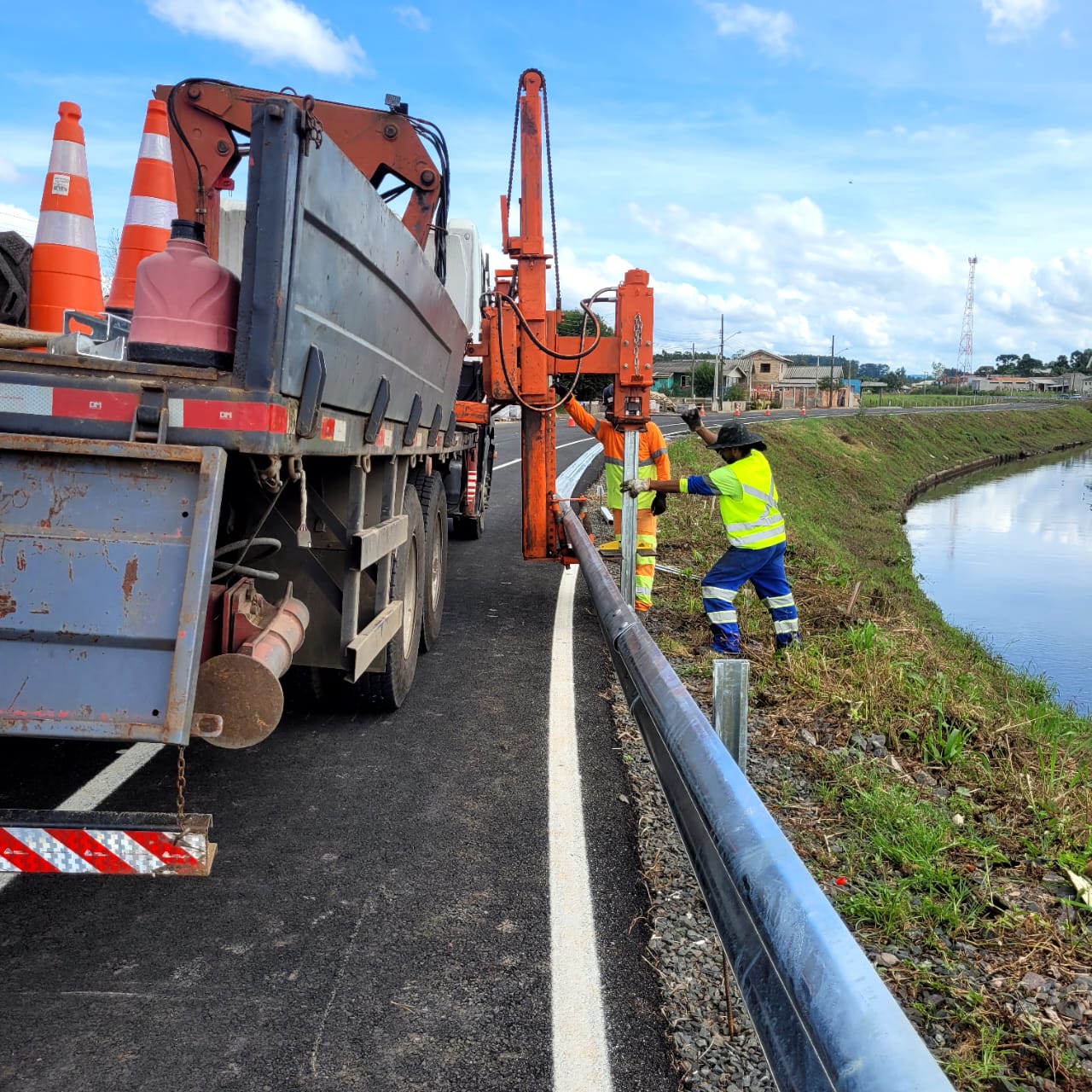As atividades começaram na segunda-feira (11), e terminaram nesta quinta-feira (21). Serviços executados pela empresa vencedora do certame licitatório, a lageana JC Sinalização Ltda. Nesta sexta-feira (22), operários desenvolveram ajustes, a exemplo da concretagem das bases de defensas.