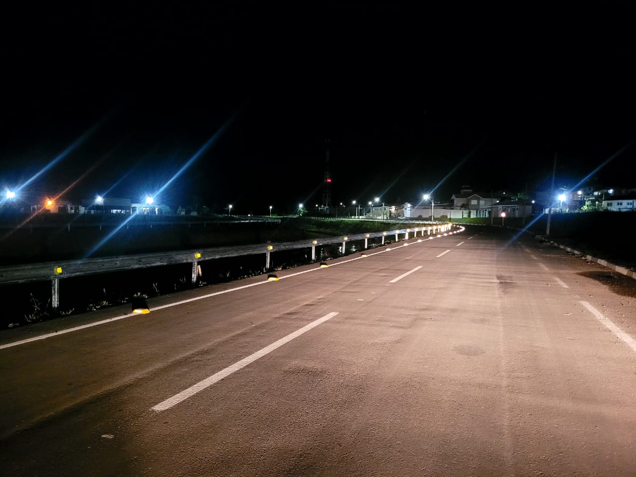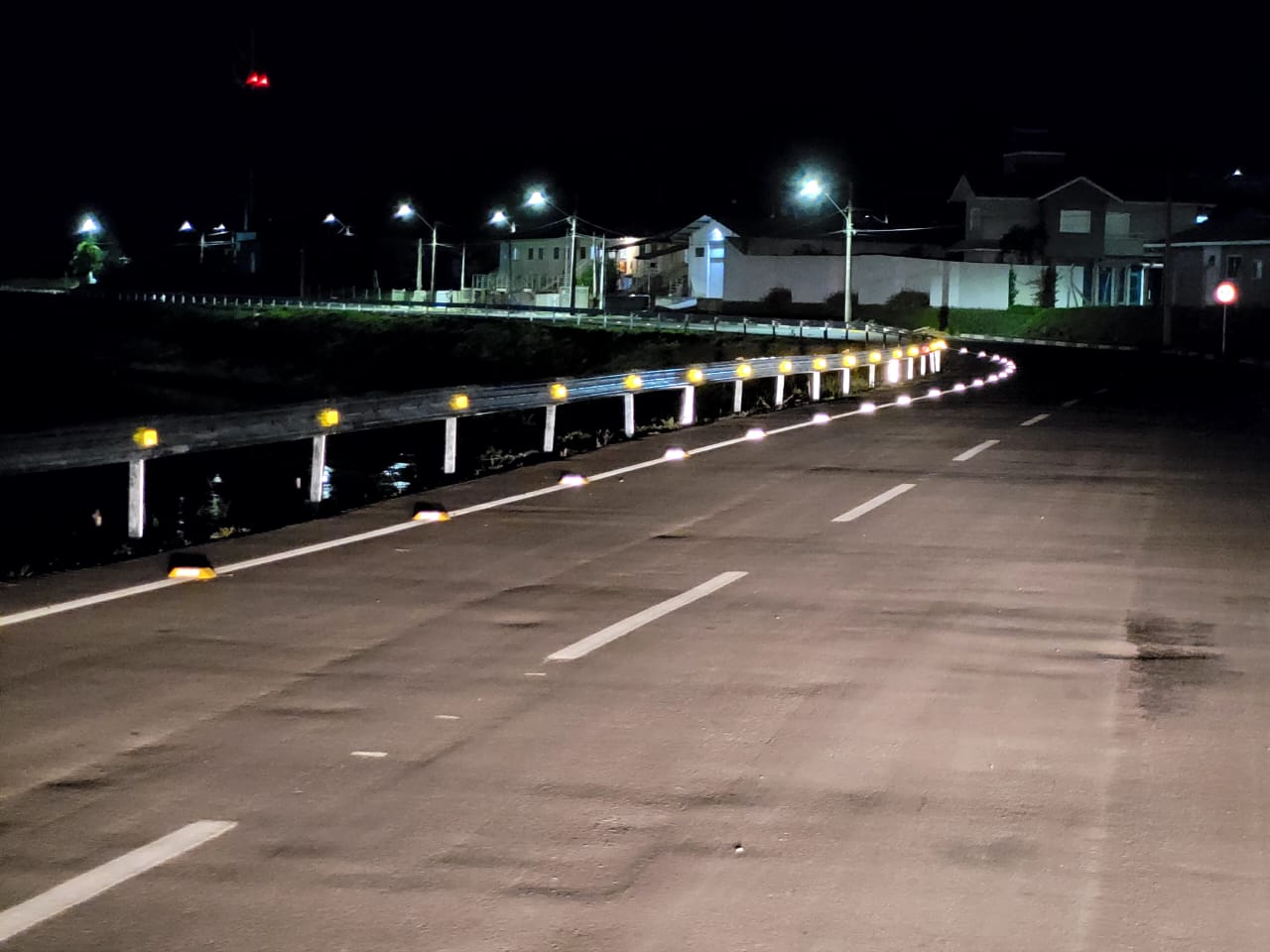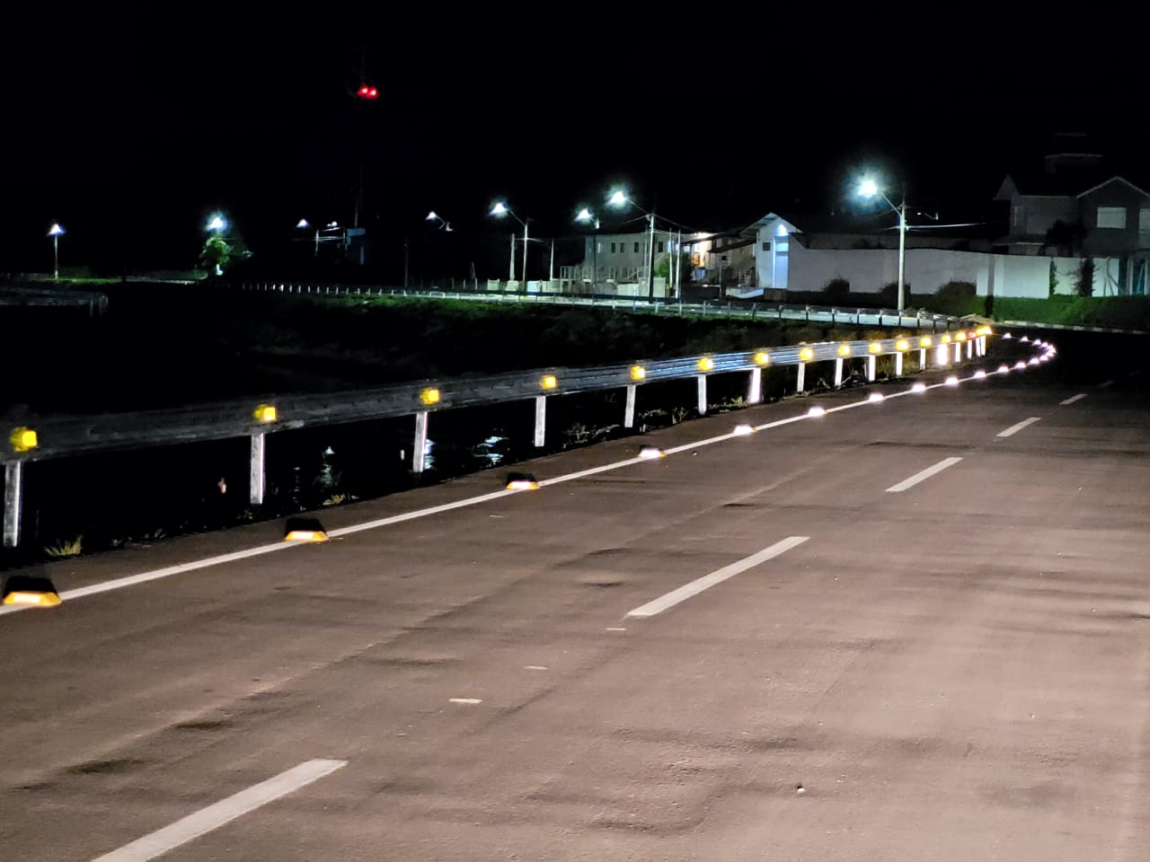 Defensas metálicas contam com faixas refletivas luminosas noturnas como dispositivo de segurança a motoristas neste período de visibilidade fragilizada