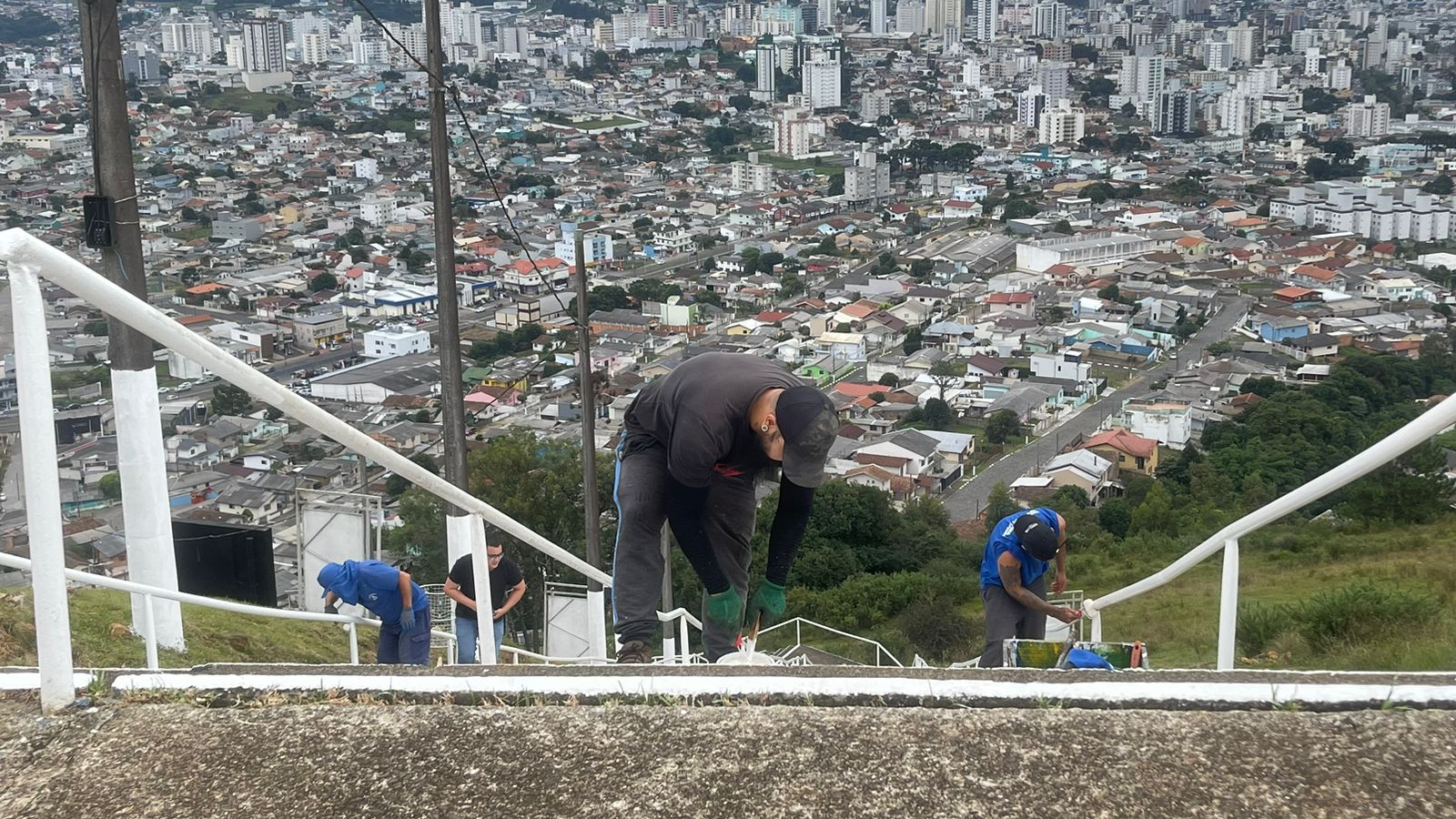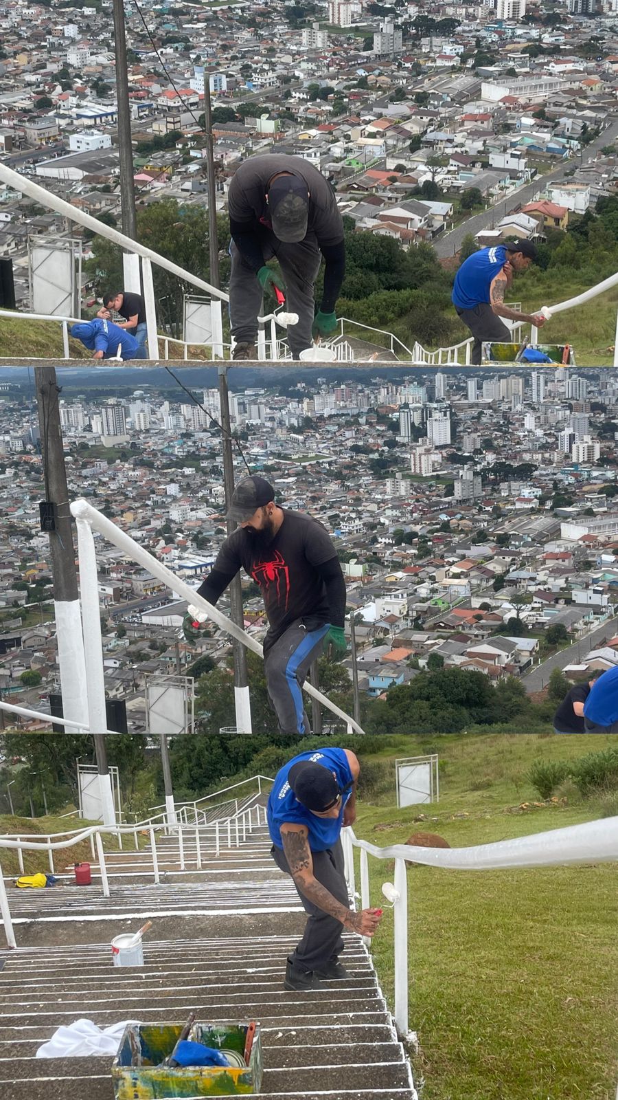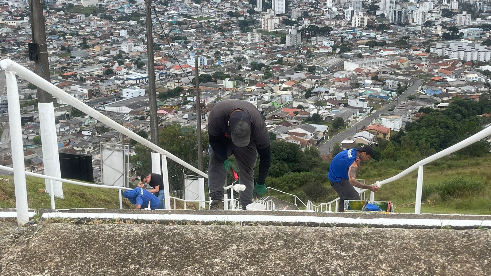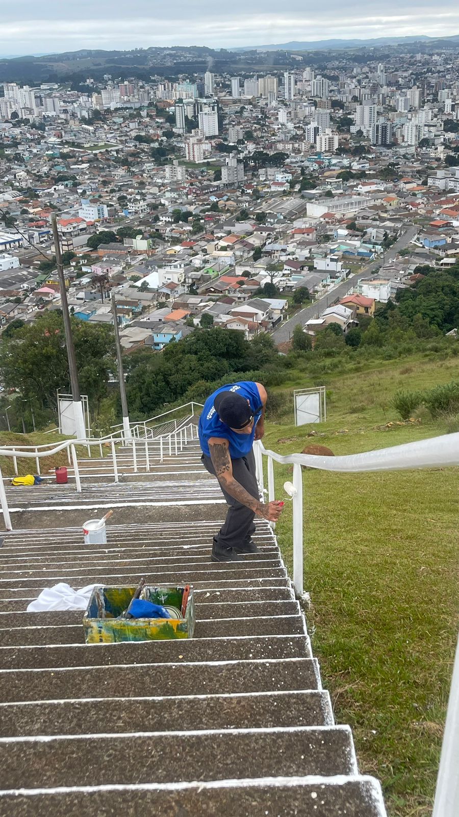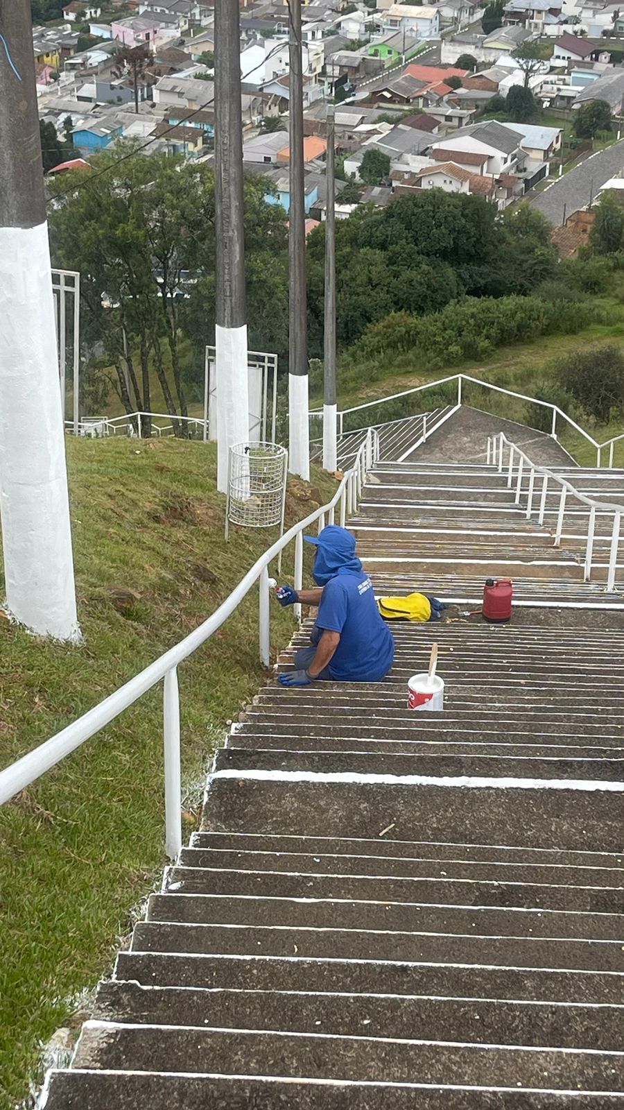 Desde esta segunda-feira (25, até o fim da semana, operários servidores da Secretaria de Serviços Públicos e Meio Ambiente estão empenhados nas seguintes tarefas (as pinturas de corrimãos e Escadaria deverão ser concluídas nesta quarta-feira (27), incluindo a pintura da Santa Cruz):